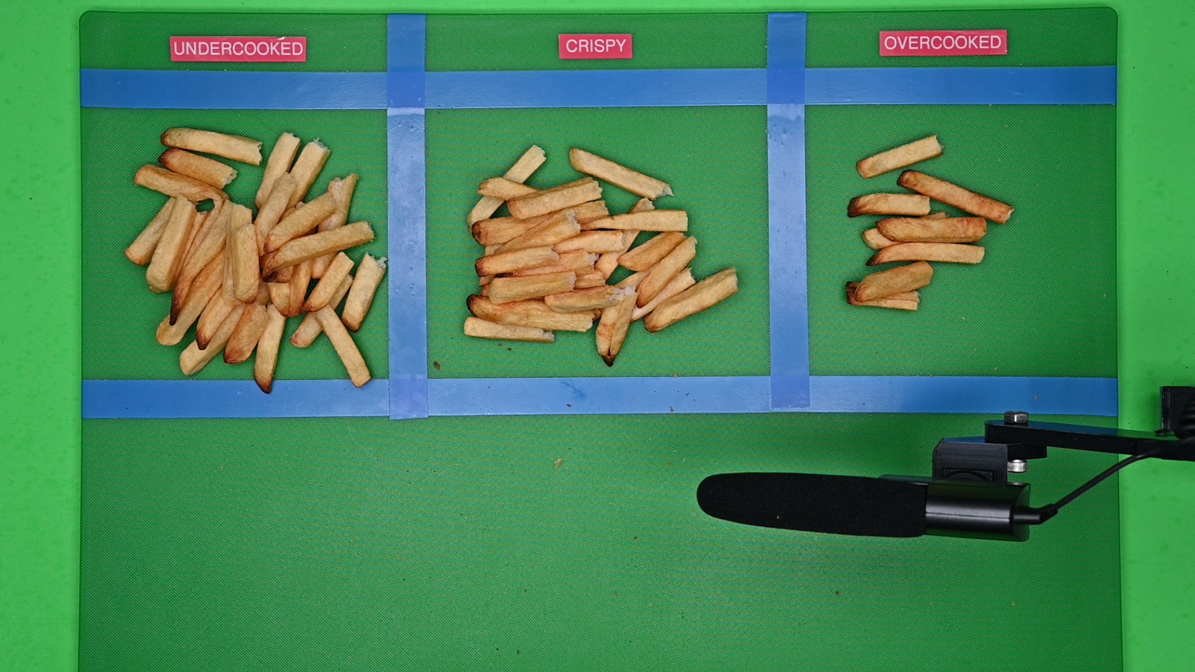 You can see a video of the fries being sorted or a photo of the sorted fries.