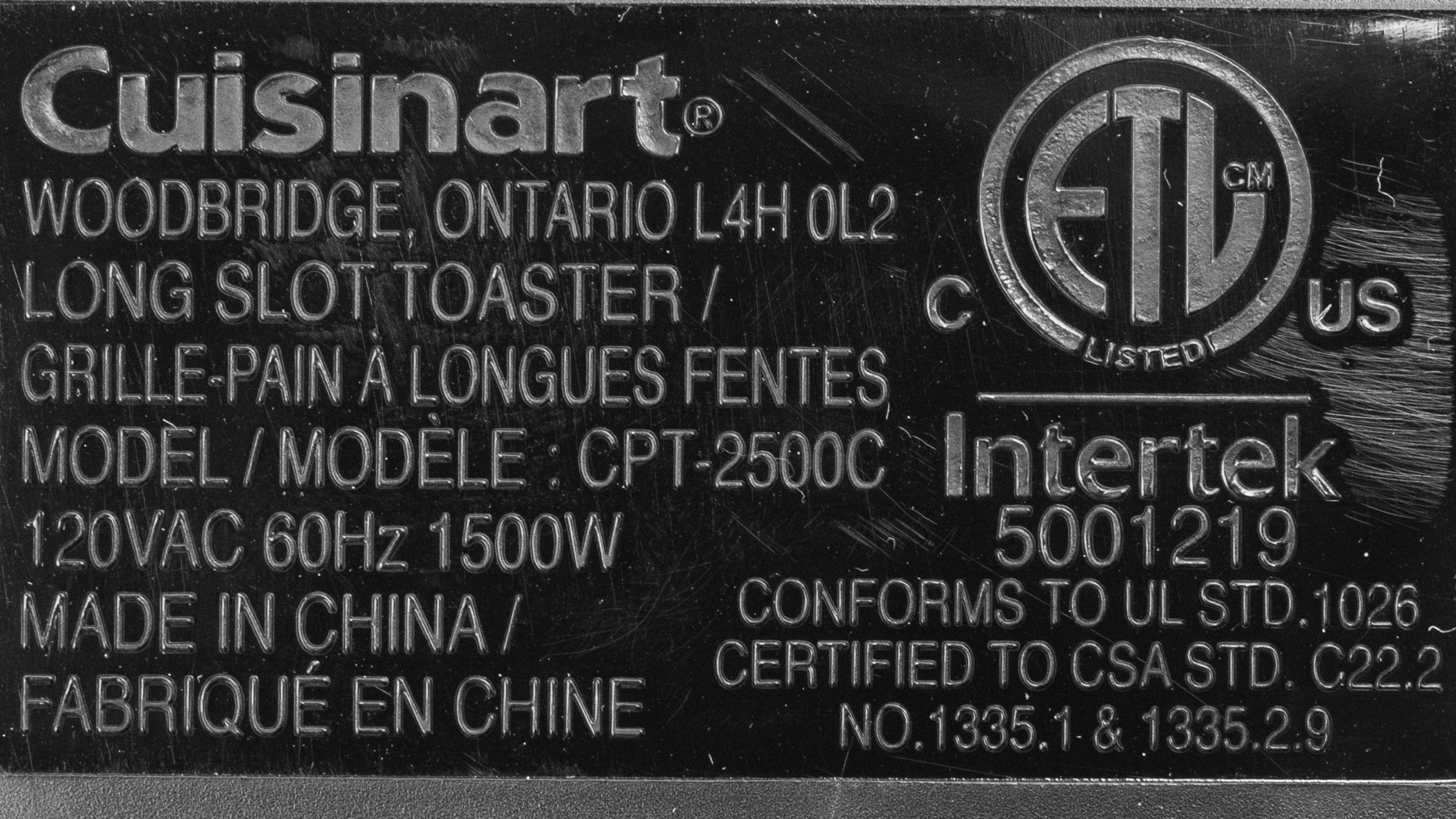 The Cuisinart Long Slot Toaster comes in one stainless steel variant. You can see the label for the unit we tested here.