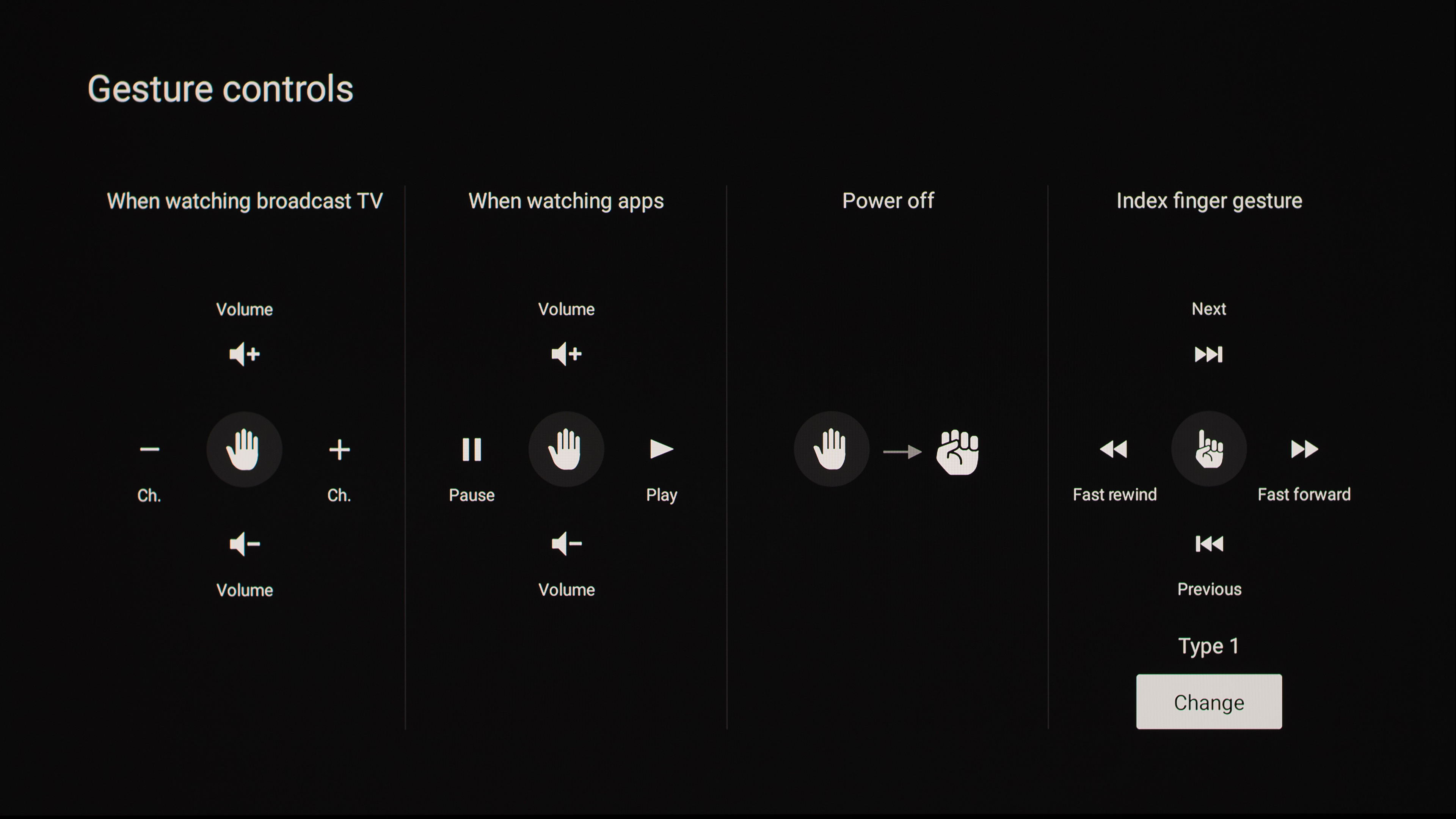 Similarly, other brands may include custom apps, shortcuts, or integrations that enhance the Google TV experience while keeping the core interface familiar. An example of this is Sony's gesture control support when using their optional Bravia webcam. This feature allows you to navigate menus, adjust volume, or control playback with simple hand movements, providing a hands-free way to interact with your TV.