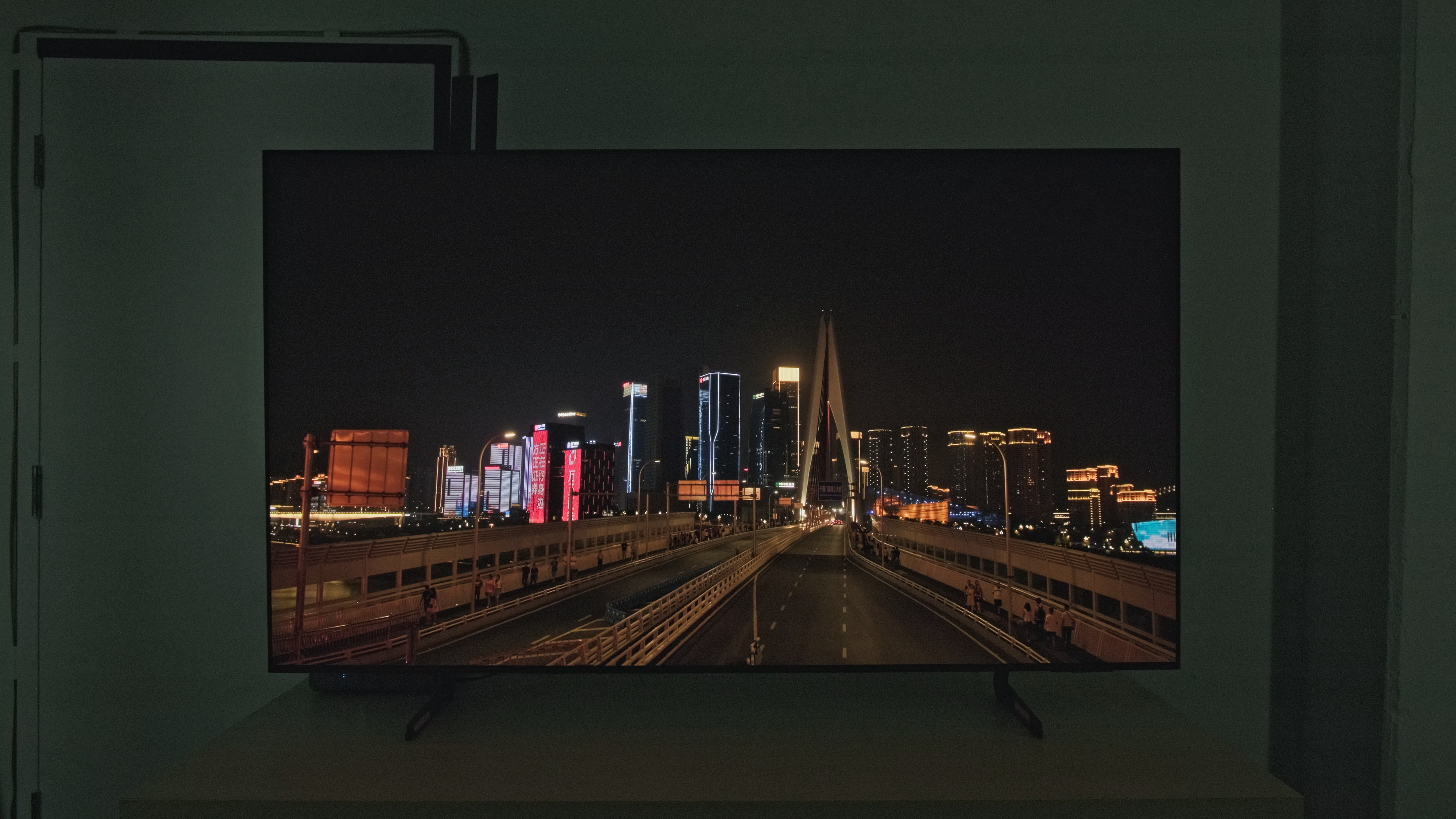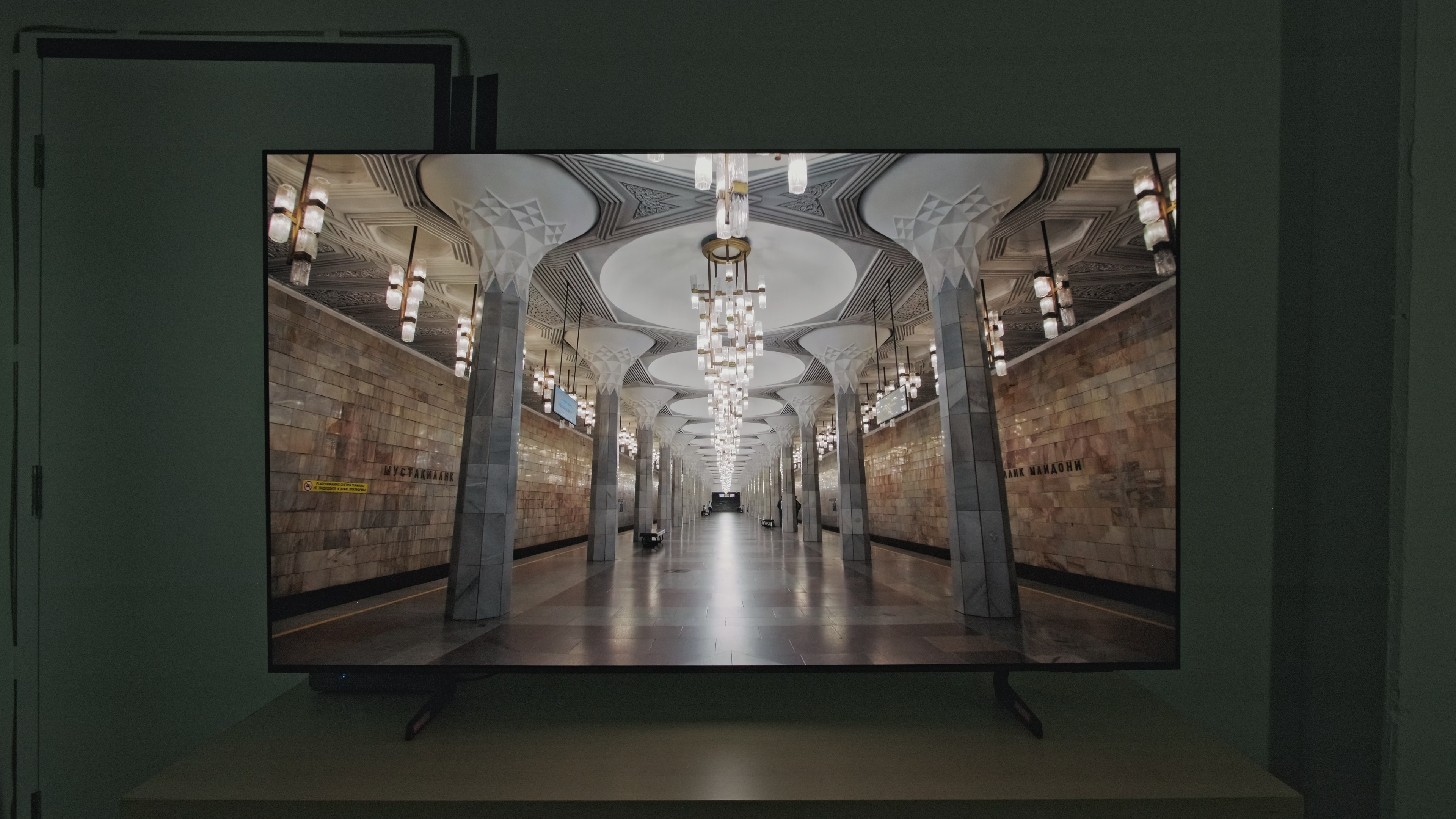 Unfortunately, all QD-OLEDs have the same flaw that may or may not be a deal-breaker for you. In a bright room, their black levels rise considerably, significantly reducing contrast. This is true of all QD-OLEDs on the market, as they all lack a polarizing layer, so there's nothing you can do about it. The above test image shows the impact of this issue in a moderately lit room. Believe it or not, that's a pure black slide on the Sony BRAVIA 8 II OLED. TVs with WOLED panels also show raised blacks in a bright room; in fact, almost all TVs do to some extent, but it's not nearly as bad.