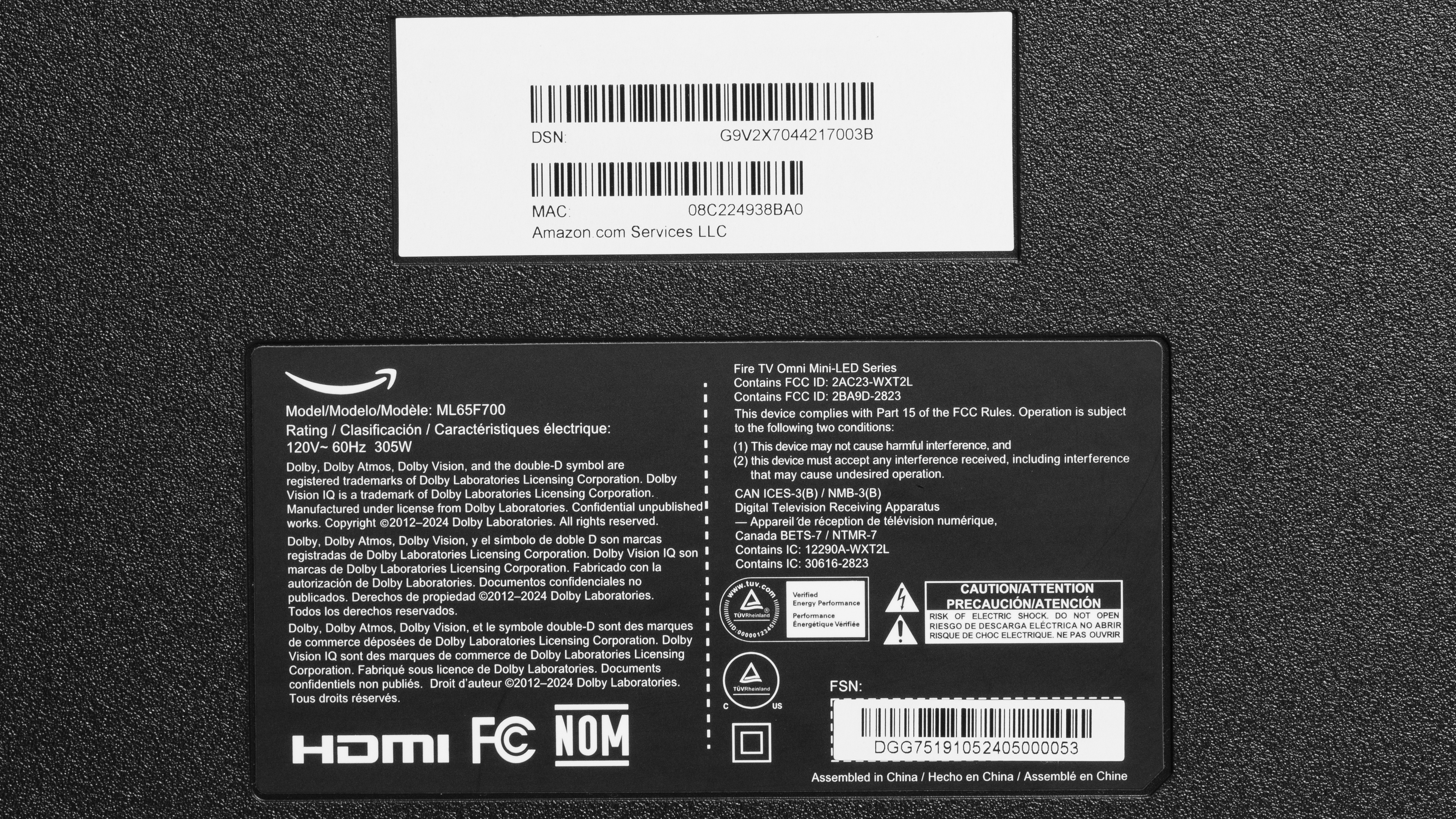 The Amazon Fire TV Omni Mini-LED Series is a mid-range 4k TV in Amazon's 2024 lineup. It sits above the Amazon Fire TV Omni QLED Series, the Amazon Fire TV Omni Series, and the Amazon Fire TV 4-Series. This new model has a Mini LED panel with far more dimming zones than the preceding Omni QLED Series, giving it deeper blacks. It still has a quantum dot color filter, allowing for rich, vibrant colors, and now supports up to 4k @ 144Hz on its two HDMI 2.1 ports. It's VRR compatible, has Wi-Fi 6E connectivity, and supports advanced Dolby audio formats through eARC. It runs Amazon's Fire TV smart interface, and it supports both Dolby Vision and HDR10+. We bought and tested the 65-inch model, but it also comes in 55, 75, and 85-inch sizes.