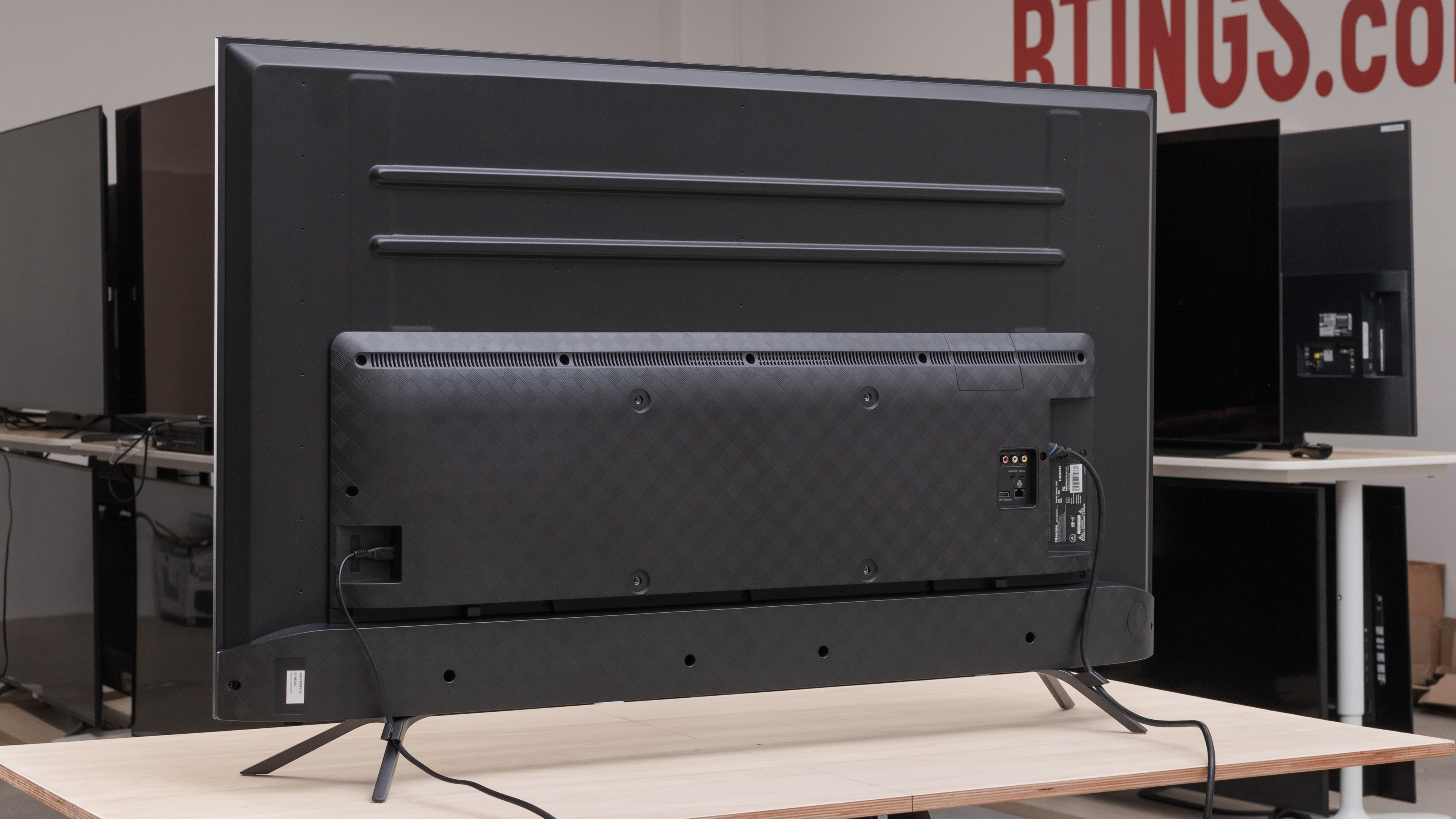 The top half of the back is metal, while the bottom half where the inputs are housed is made out of textured plastic. There are hooks for cable management which is something 2019's Hisense H9F doesn't have.