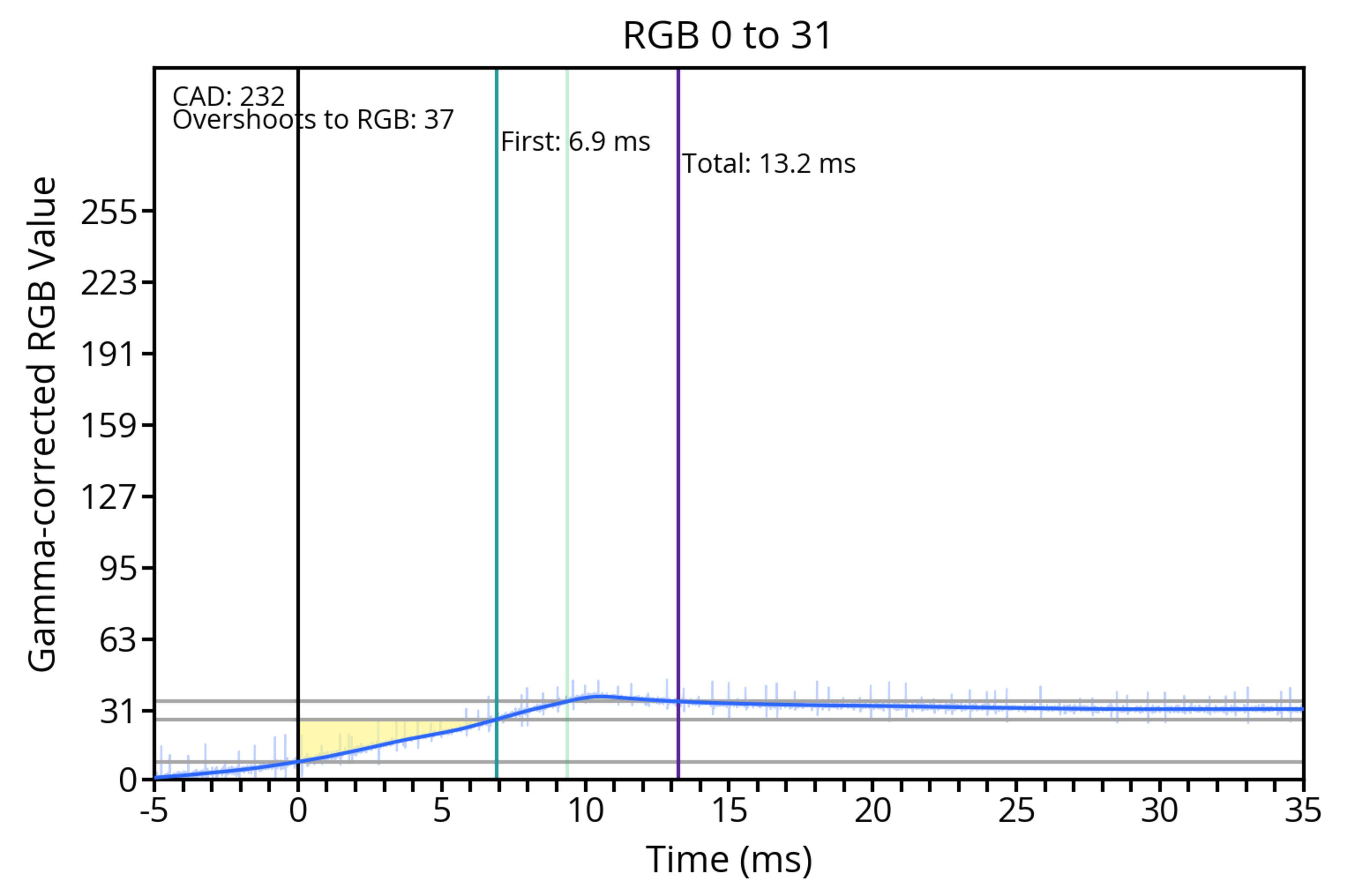 Unfortunately, the Hisense QD7QF has disappointing pixel response times at the max refresh rate of 60Hz. There's very little overshoot, but transitions are slow, resulting in blurry motion overall. It's worse in near-blacks, resulting in more blur in dark scenes.