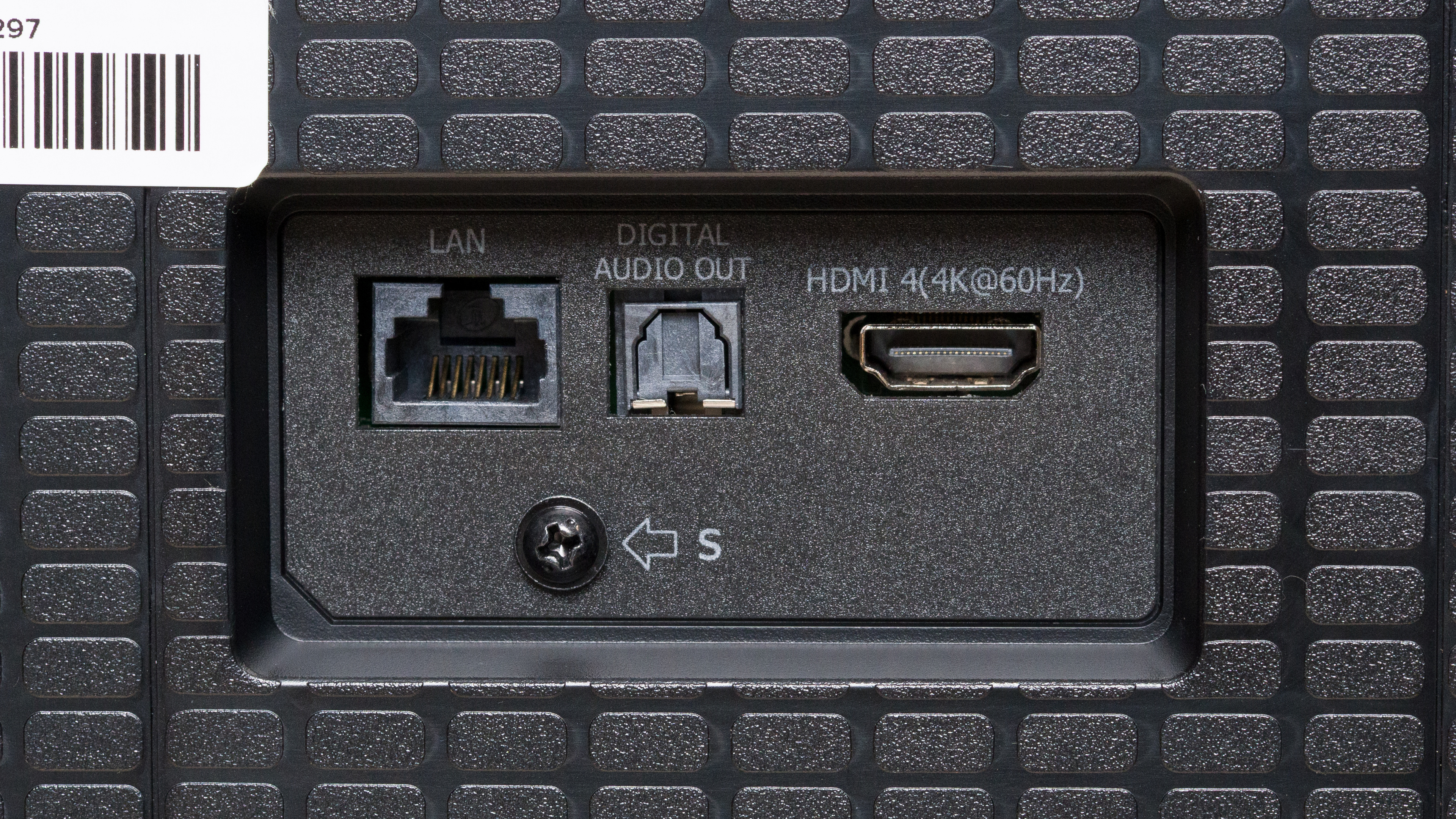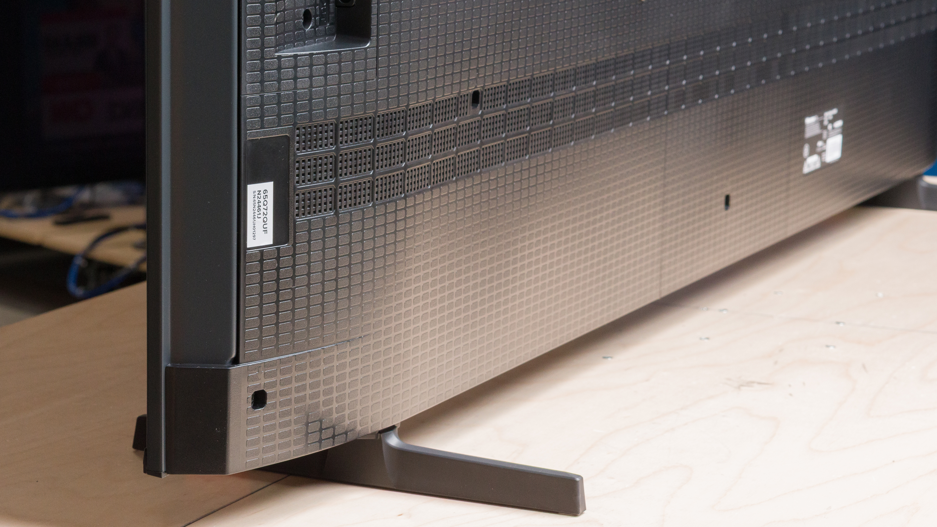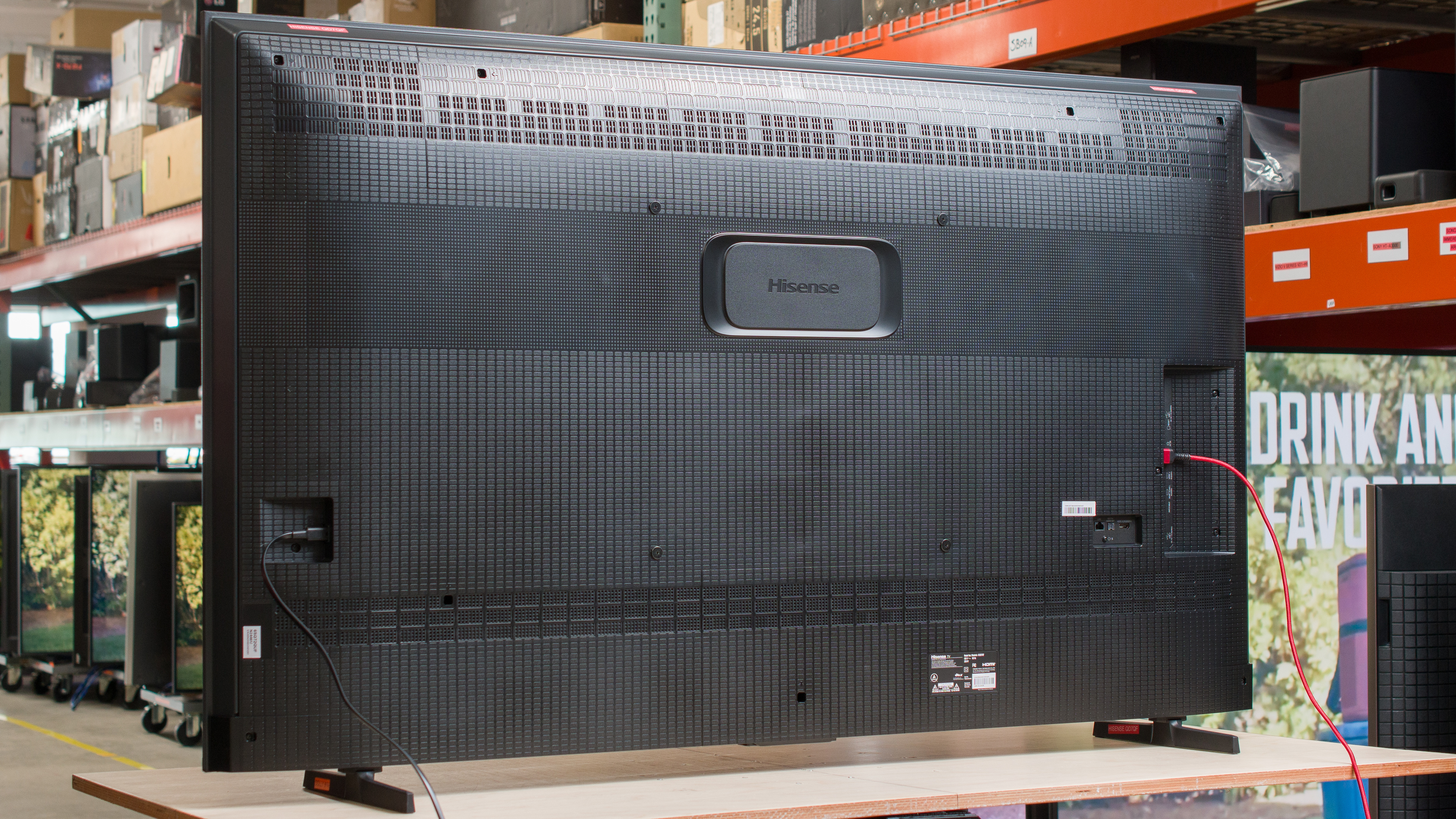 The back of the TV has a textured pattern similar to the Hisense U65QF. All of the inputs are side-facing, but they're in a recessed cutout that makes them a bit hard to access if you have it mounted to a wall. Unfortunately, there's no clips or grooves to help with cable management.