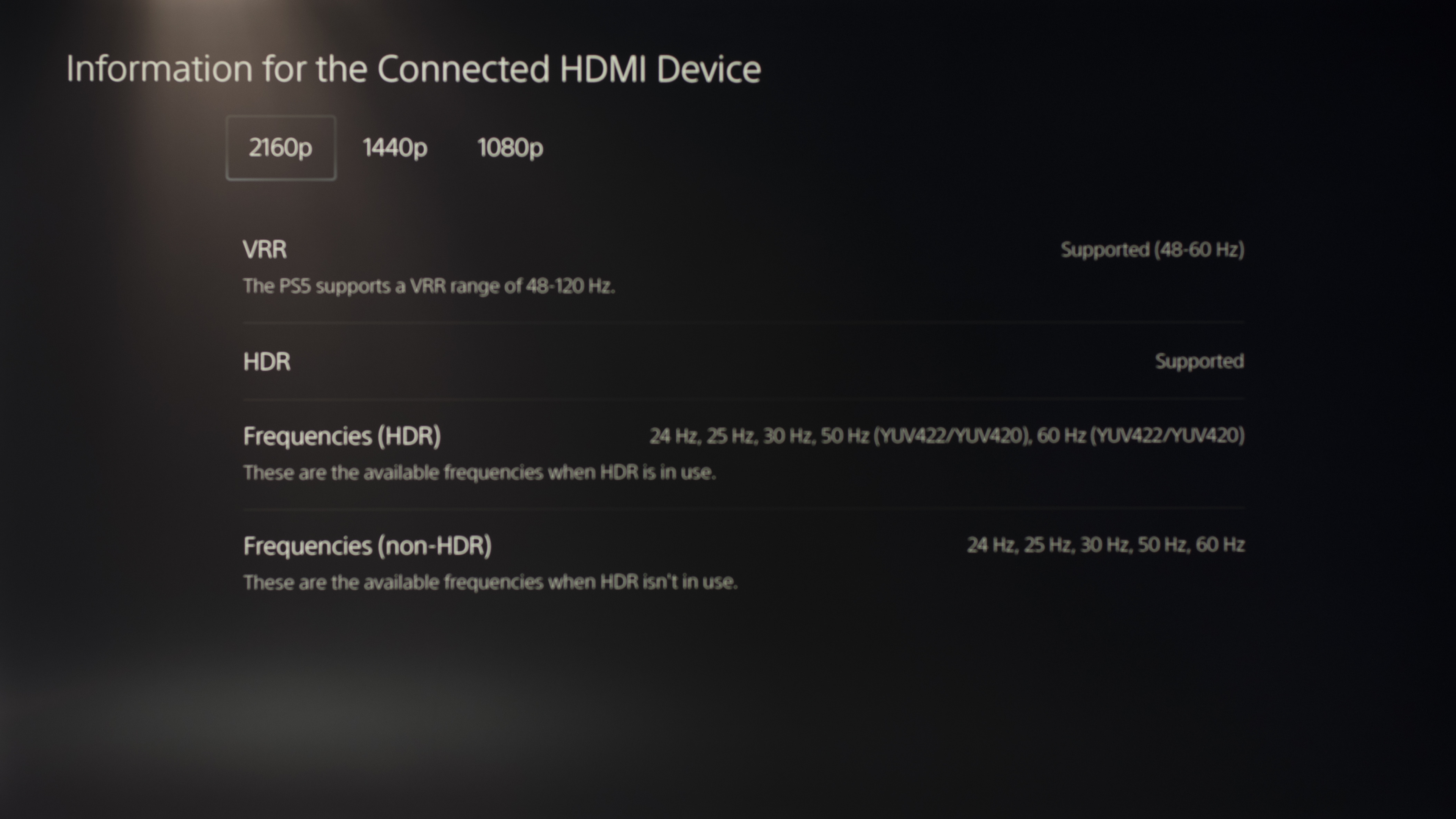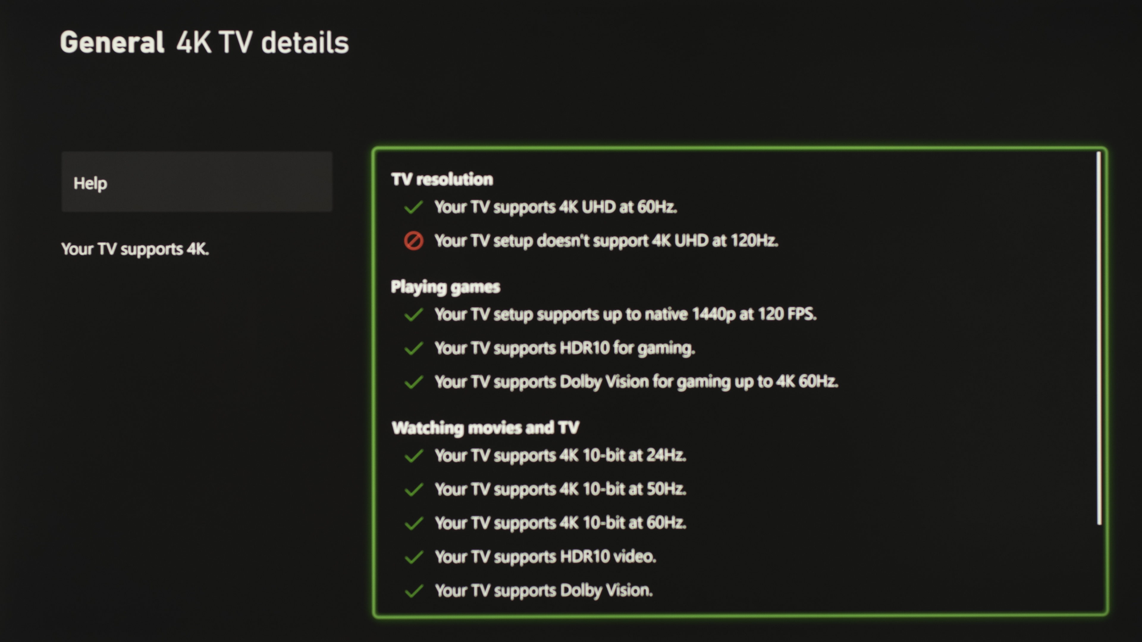 Unfortunately, this TV has limited format support. At its native 4k resolution, it supports a maximum refresh rate of 60Hz. It doesn't support 1080p @ 120Hz, but 1440p @ 120Hz is supported, which is incredibly odd and likely a bug. Note that the 75-inch and up models of this TV support up to 144Hz.