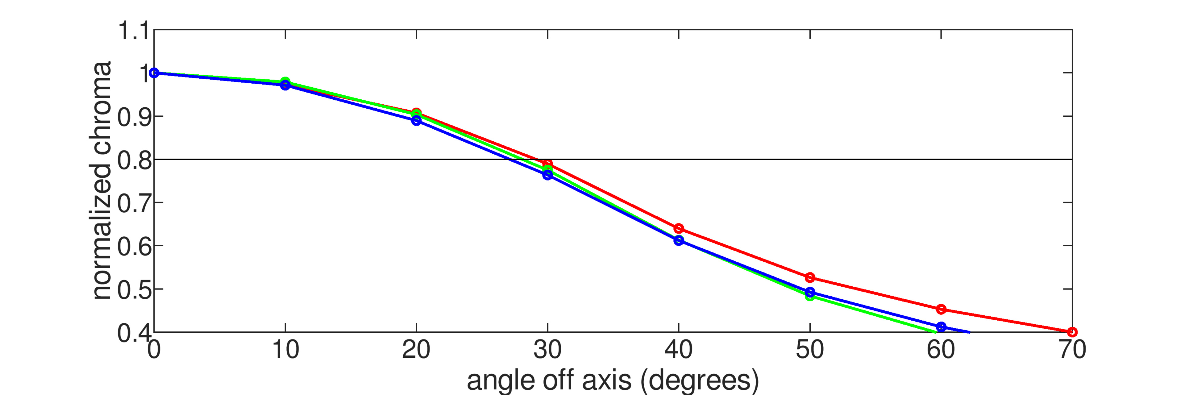 The TV's perceived color volume in a bright room is decent. Ambient light has little impact on the total color volume, but it's low to begin with.