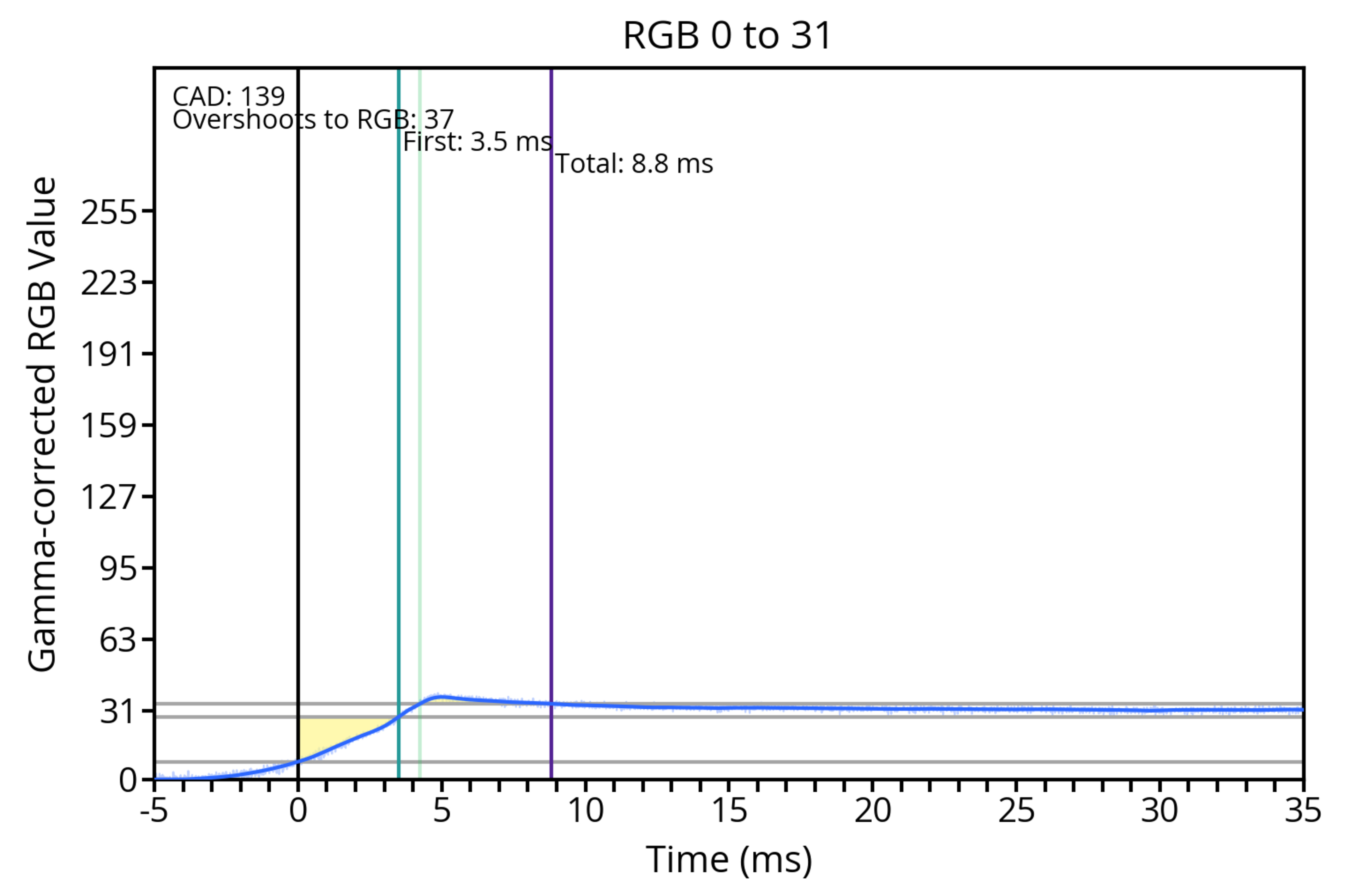 The TV has okay pixel transitions at 120Hz. It's better than at 144Hz, but transitions are still somewhat slow across the board, which leads to fast motion looking blurry, although it's usable. You still see black smearing when transitioning from black states.