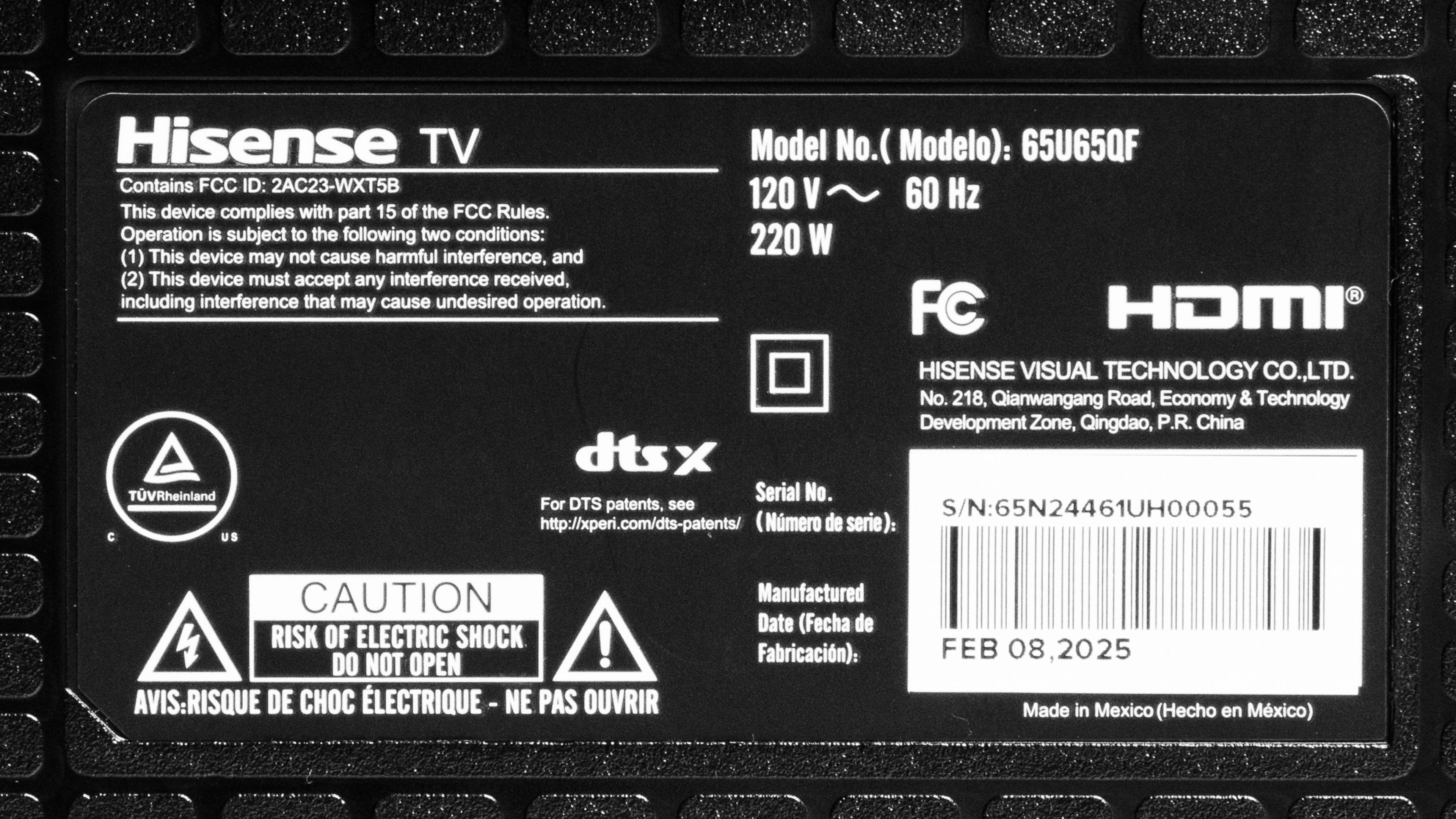 The Hisense U65QF is a budget model in Hisense's ULED lineup and sits below the Hisense U75QG and Hisense U8QG. Like the Hisense U6N from 2024, it's one of the most affordable Mini LED TVs with local dimming. This 2025 model brings some improvements over its predecessor, such as the inclusion of HDMI 2.1 bandwidth on two ports for up to 4k @ 144Hz with VRR. It also supports Dolby Vision, HDR10+, and DTS audio passthrough, so it's packed with a ton of features. Unlike the higher-end models in the Hisense ULED lineup, which utilize the Google TV OS, this model runs the less popular Fire TV. It's still loaded with popular streaming applications and has smart features like voice control. We bought and tested the 65-inch model, but it's also available in 55, 75, 85, and 100-inch options.