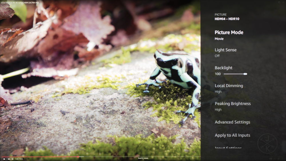 HDR is automatically enabled for native apps. When you start playing HDR content, a small HDR icon appears in the picture settings menu. Once you start playing HDR content, some of the settings change automatically. Below are the settings we used for HDR10. All other settings were either disabled or left off.