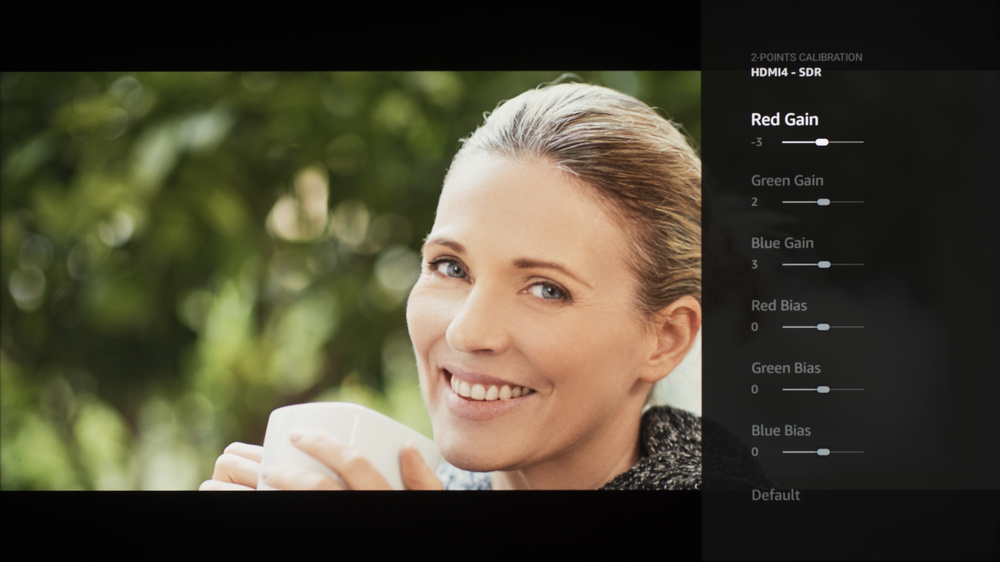 The following are the results of the white balance and colorspace calibration on our unit. They are provided for reference and should not be copied as the calibration values vary per individual unit, even for the same model and size as the TV we reviewed, due to manufacturing tolerances. If you want to try them, you will need to enter all values shown, as all of them are active at the same time. If you end up with worse picture quality, simply reset them to the default values.