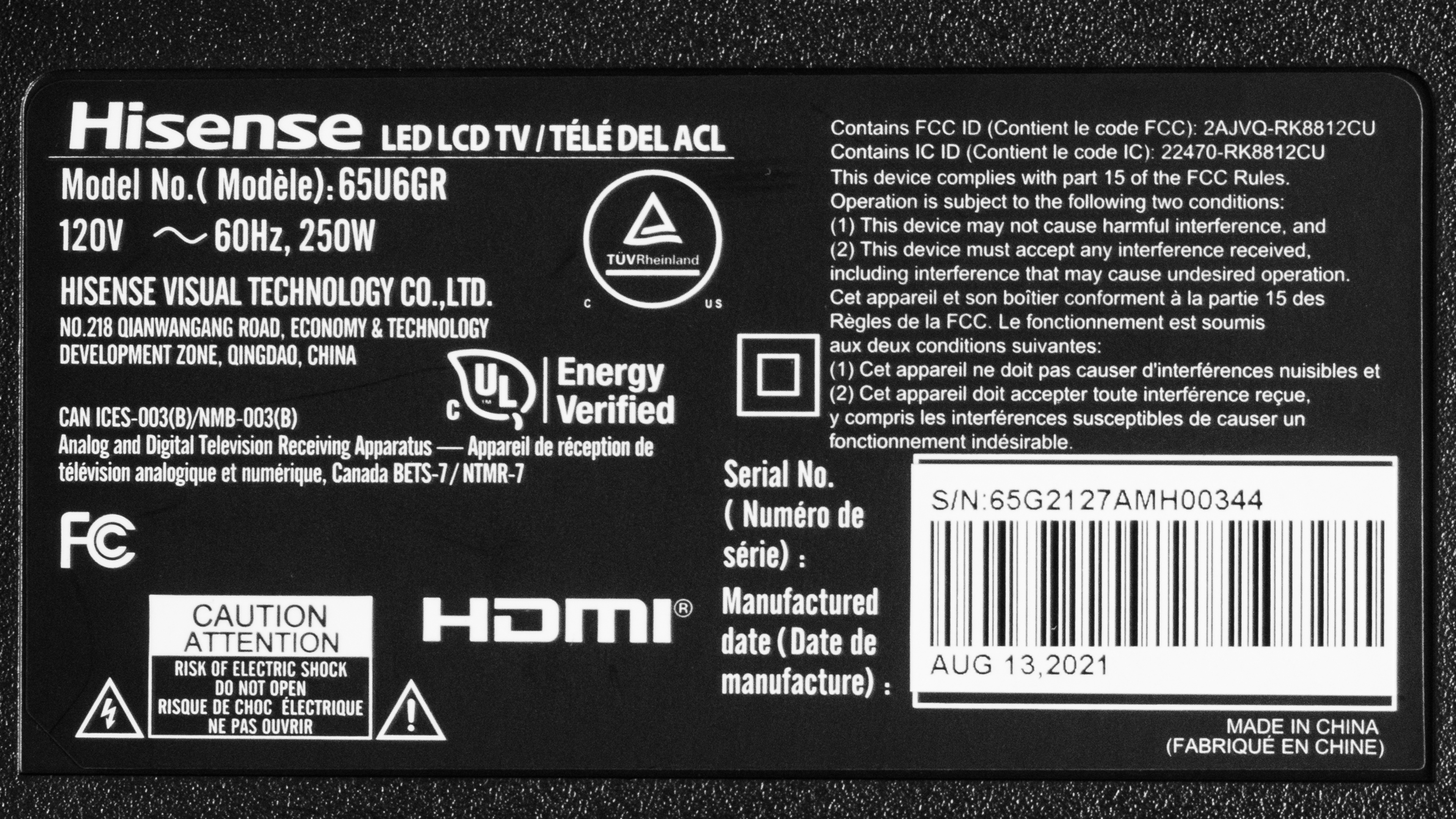 If someone comes across a different type of panel or their Hisense U6GR doesn't correspond to our review, let us know, and we'll update the review. Note that some tests, like the gray uniformity, may vary between individual units.