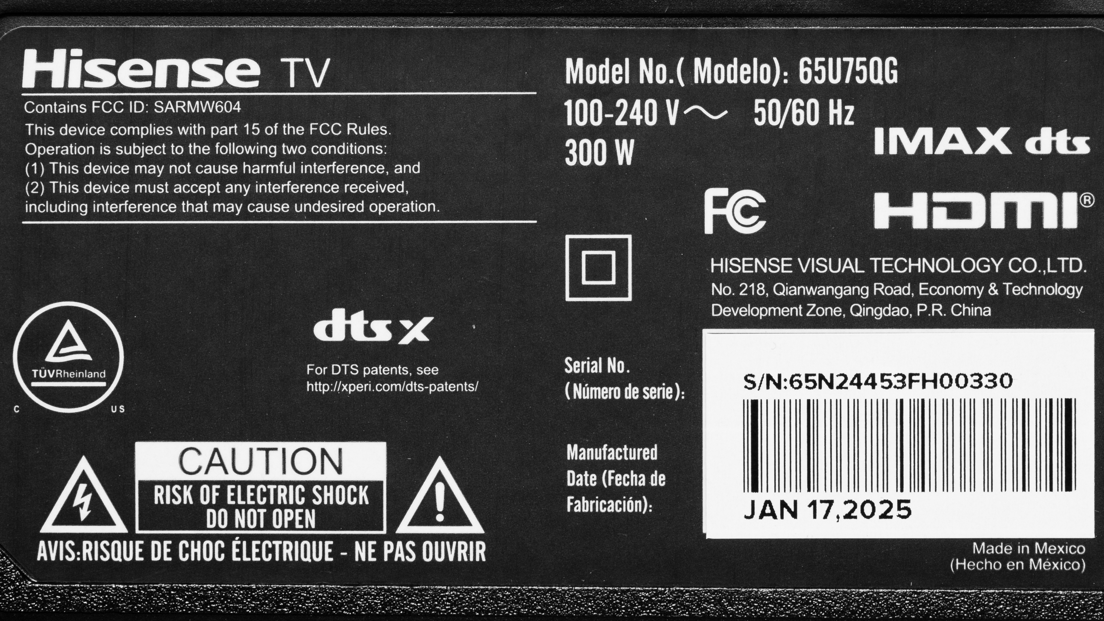 | 75" | Hisense 75U75QG | Unconfirmed | 2340 |