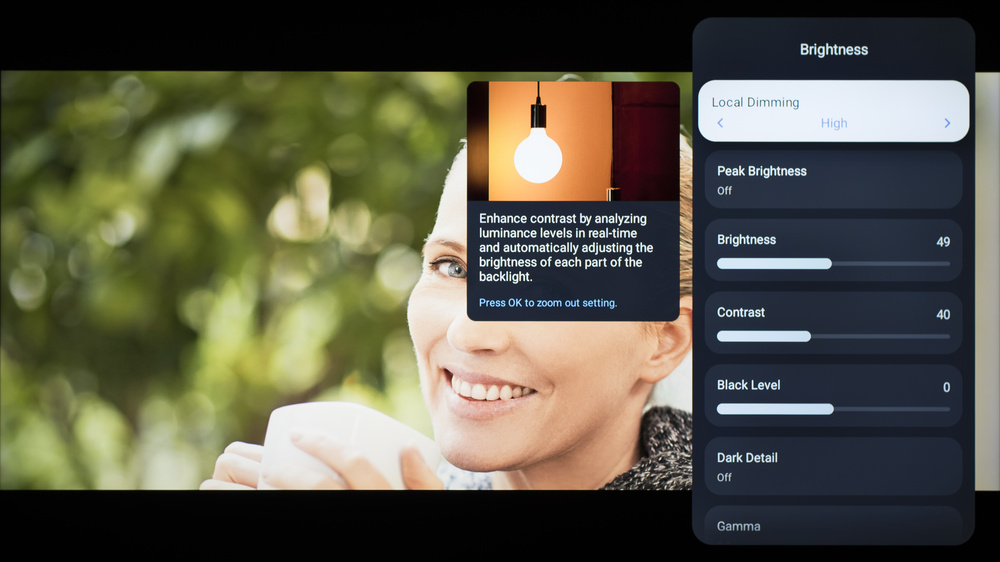 If you prefer a brighter image, enable Dynamic Tone Mapping. This doesn't change the absolute peak brightness of the TV, but it changes the way the TV processes some scenes, resulting in a brighter image overall.