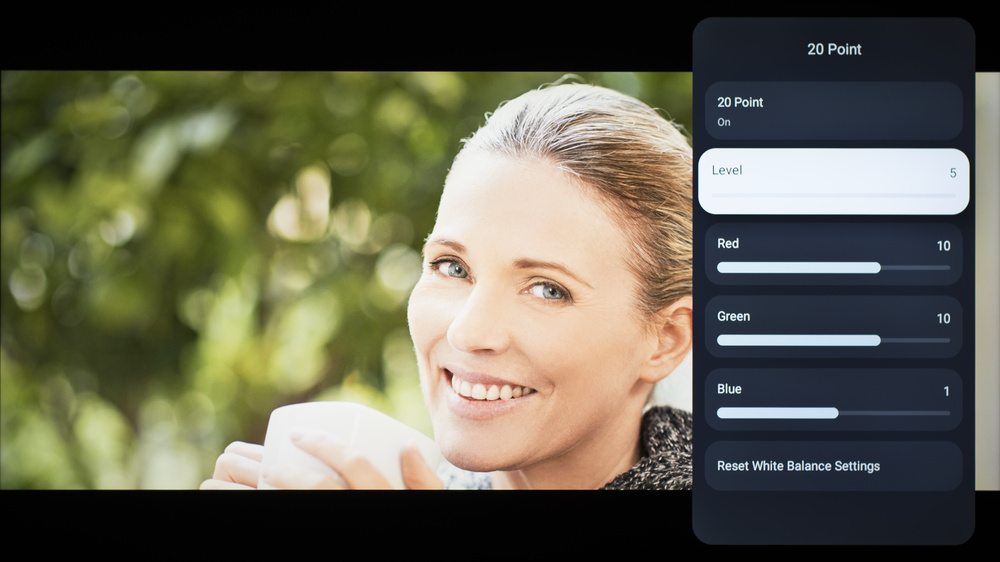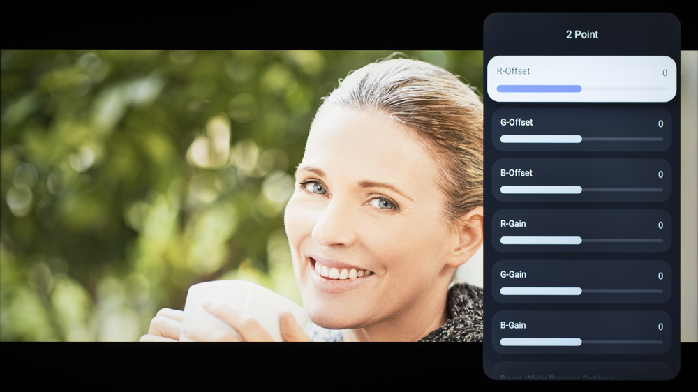 The following are the results of calibrating the white balance of our unit to 6500K in HDR using the 2-point method. These settings are provided for reference only and shouldn't be copied as the calibration values vary per individual unit. If you want to try them, you'll need to enter all values shown, as all of them are active at the same time. If you have worse picture quality, simply reset them to the default values.
