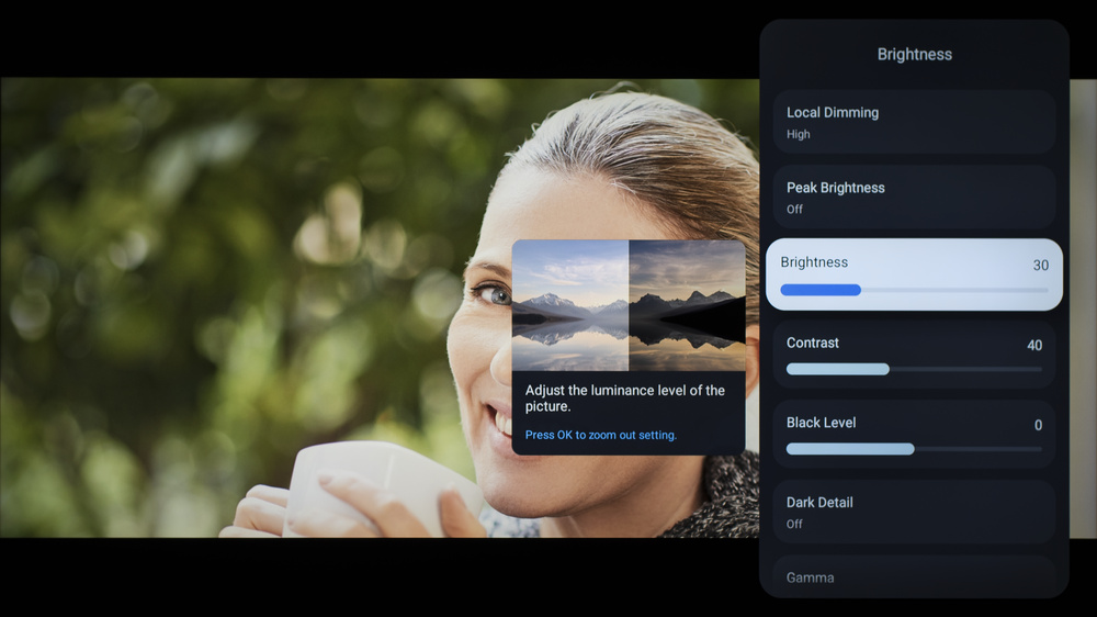 If you prefer a brighter image, set Peak Brightness to 'High,' and adjust the Brightness setting as needed.