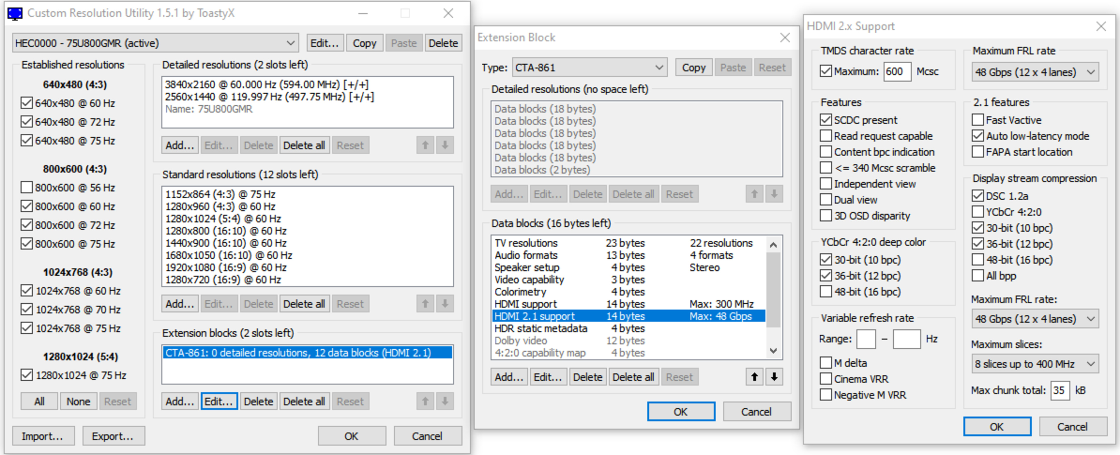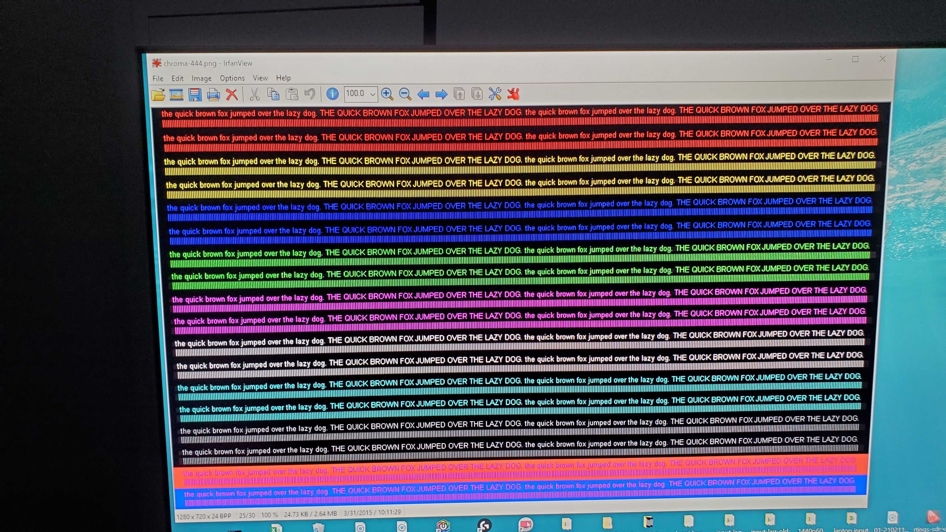 The Hisense U800GR displays most common resolutions up to 8k @ 60Hz. It also displays proper chroma 4:4:4 with any signal except for 1440p, as text looks fuzzy with 1440p @ 60Hz and 1440p @ 120Hz signals.
