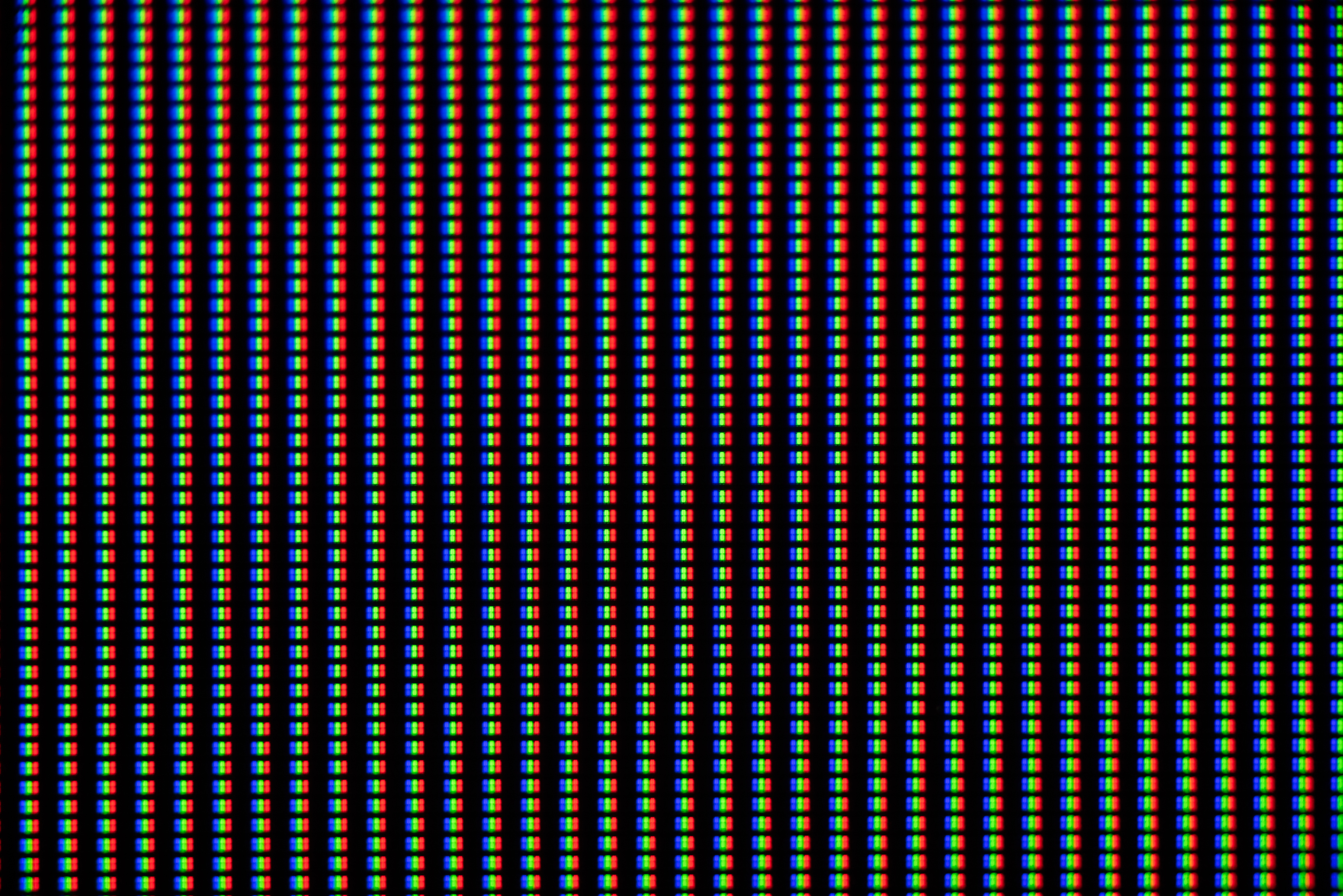 The Hisense U800GR has a BGR subpixel layout, which doesn't affect picture quality but can affect how text is displayed when using the TV as a PC monitor. You can read about it here. You can also see the pixel dithering in the blue pixels.