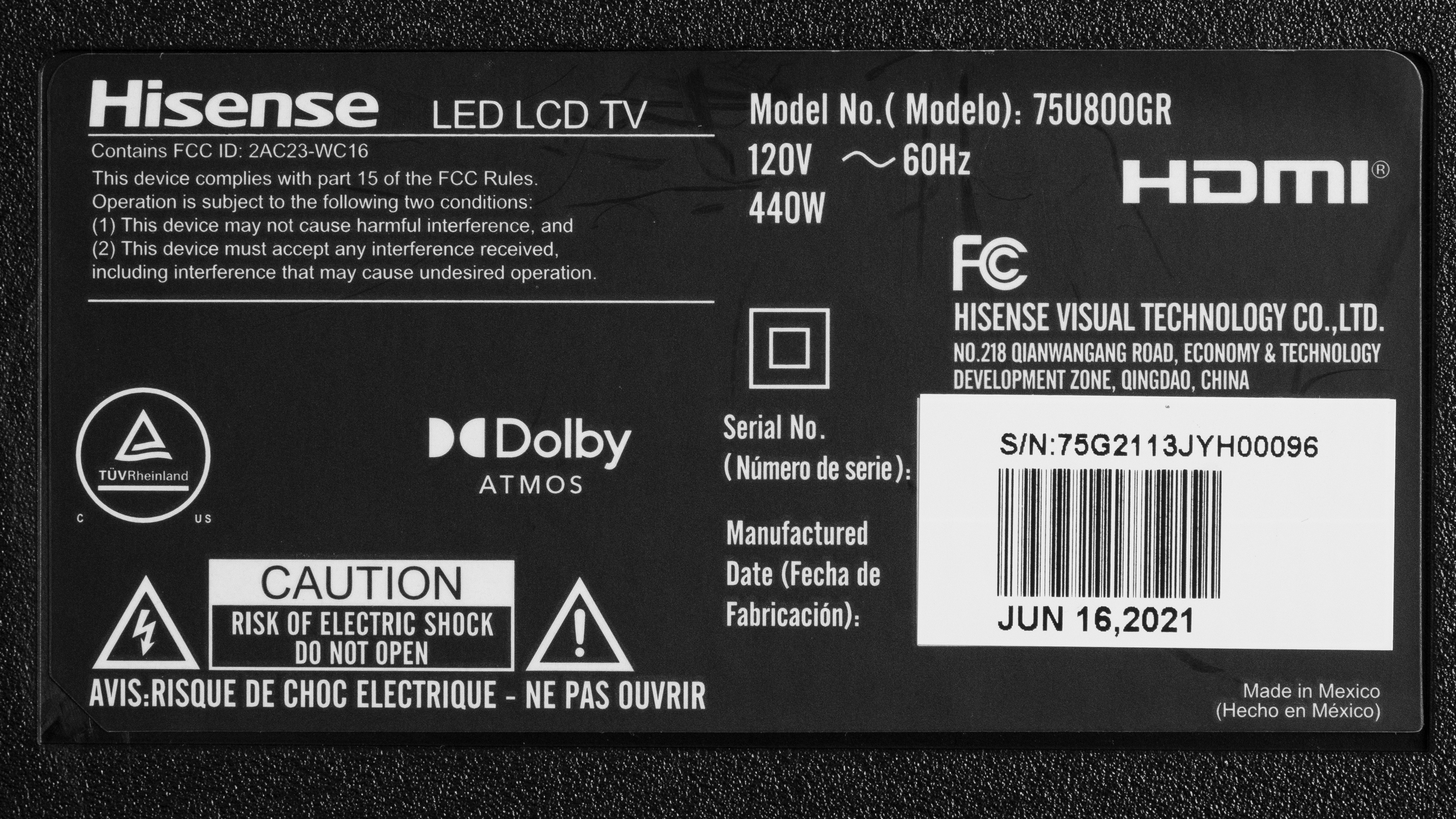 The Hisense U800GR is Hisense's only 8k LED TV, and it's only available in a 75 inch size. This model is sold in the United States, and there's a similar model available in Australia, known as the Hisense U80G, but that has Android TV and not Roku TV. Because Hisense releases different models outside North America, our review isn't valid for any similar model.