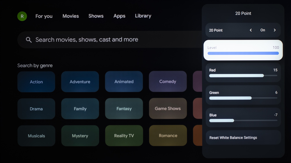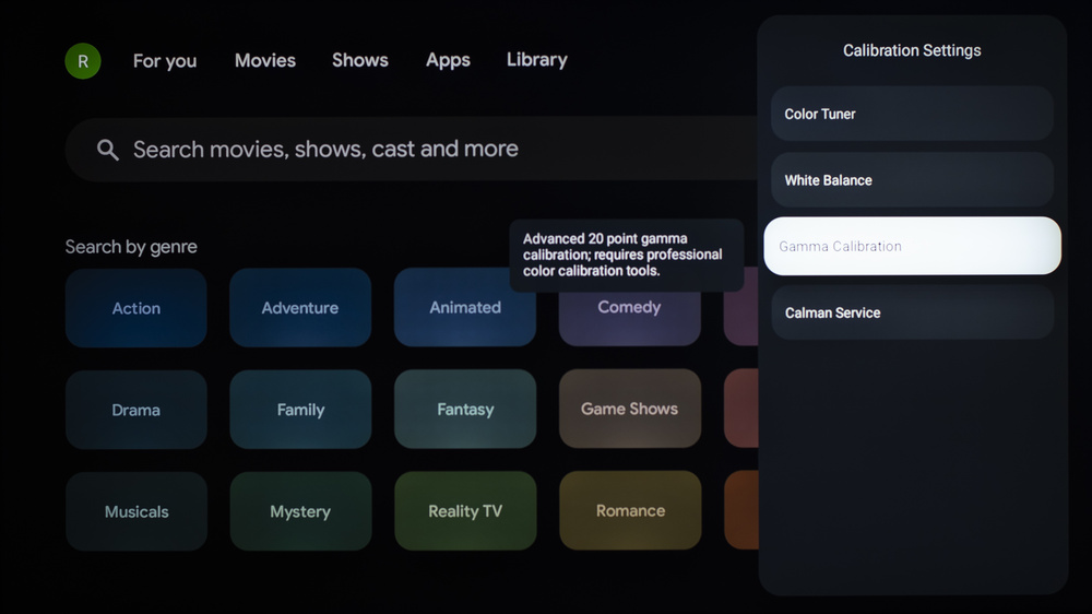 The unit we bought and tested was calibrated on Android TV version 14, build UKN2.241117.001.026
