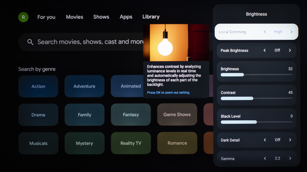 The TV supports Dolby Vision and HDR10+ from native apps and external devices. As with normal HDR content, when you start playing Dolby Vision or HDR10+ content, some settings change automatically. Since we don't specifically test Dolby Vision or HDR10+, we don't have exact settings for them, but they should be the same as our HDR10 settings.