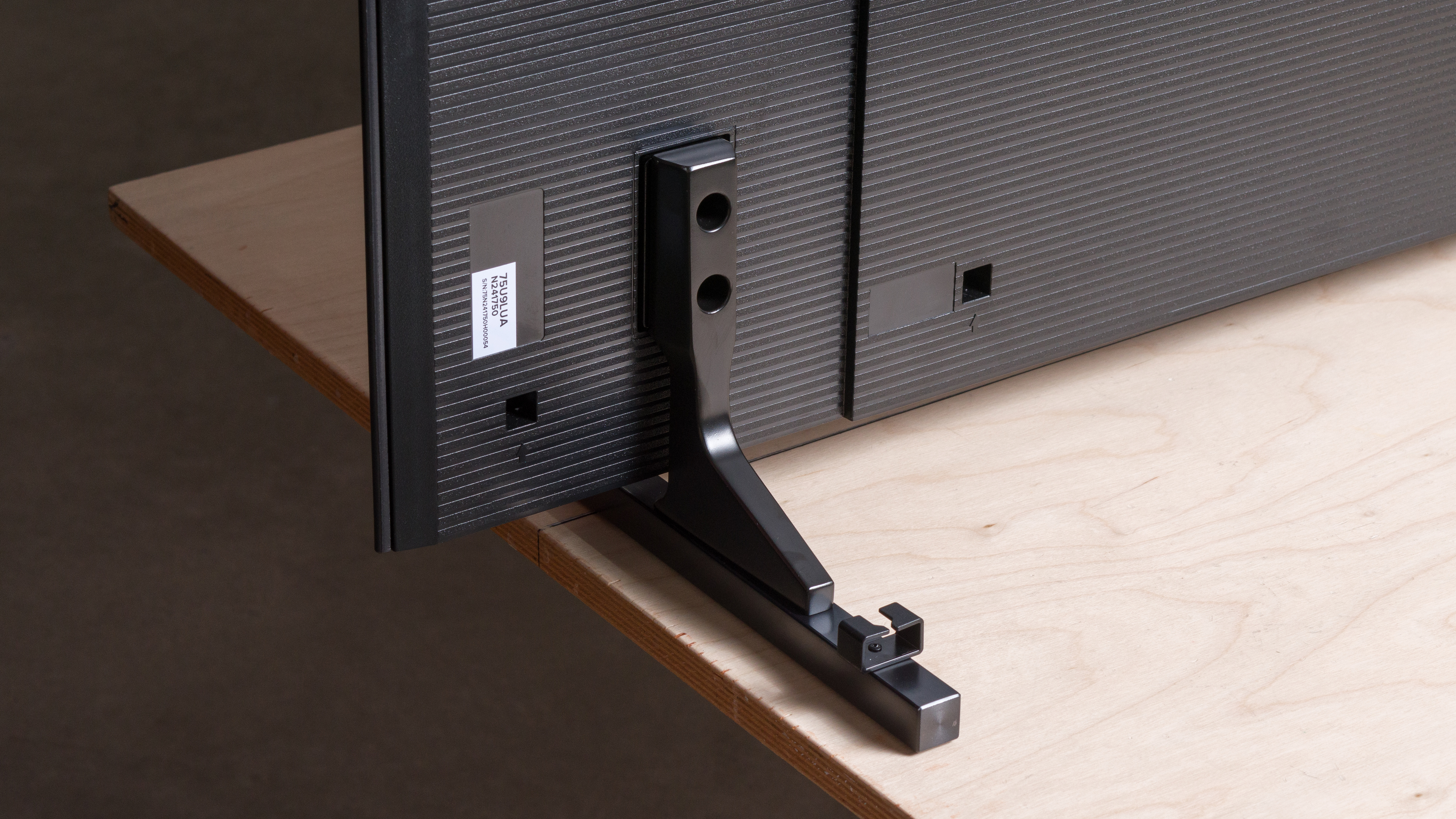 The TV comes with a pair of feet that support it well. Unlike the Hisense UX, this model's feet aren't adjustable, so make sure your table is wide enough to accommodate them. The feet only lift the TV about 2.2 inches, so many soundbars won't fit in front without blocking the lower portion of the screen.