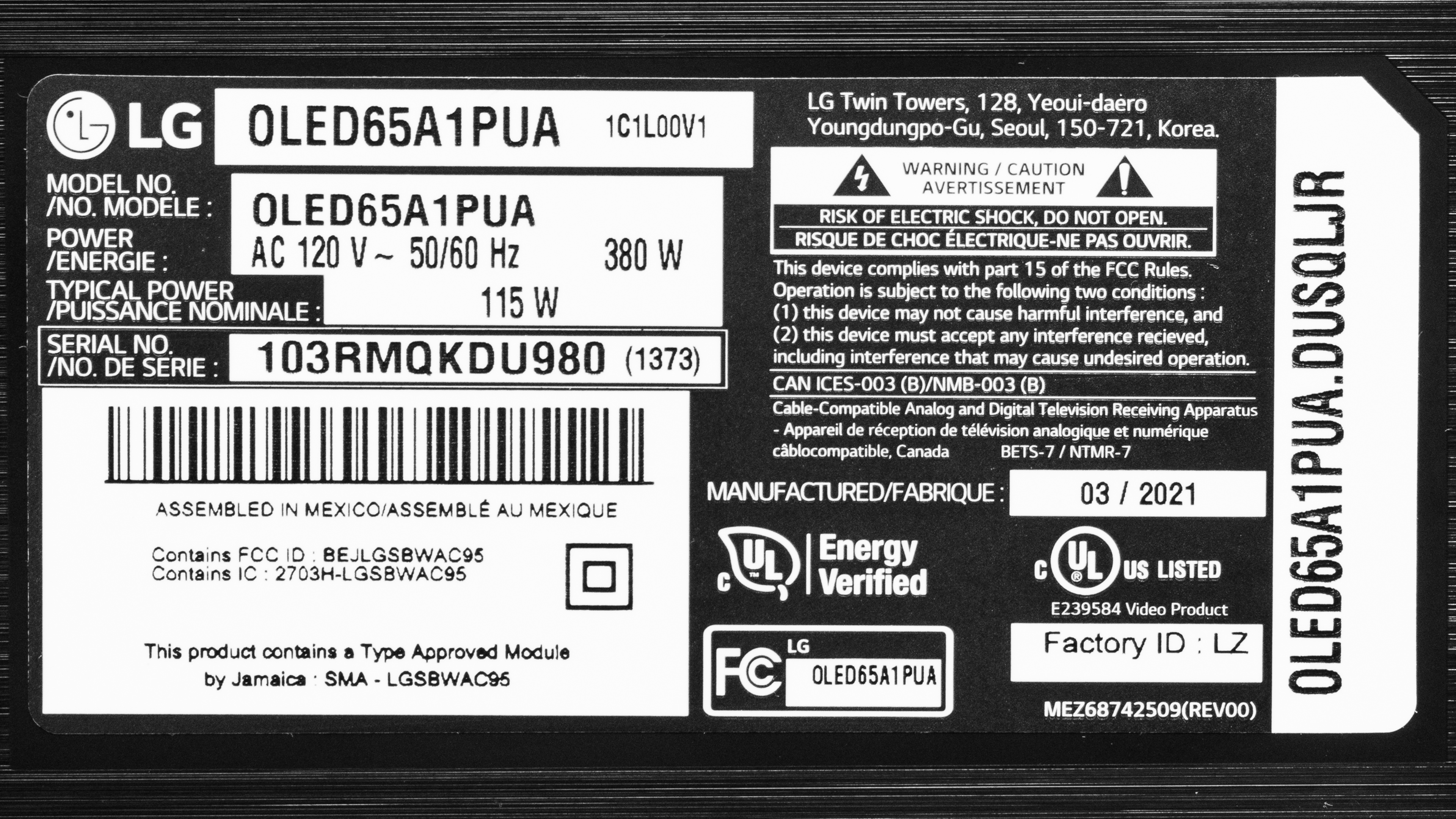 We tested the LG 65-inch A1 (OLED65A1PUA), which also comes in 48-inch, 55-inch, and 77-inch sizes. Note that the last three letters in the model number (PUA in this case) vary between retailers and individual regions, but there's no difference in performance.
