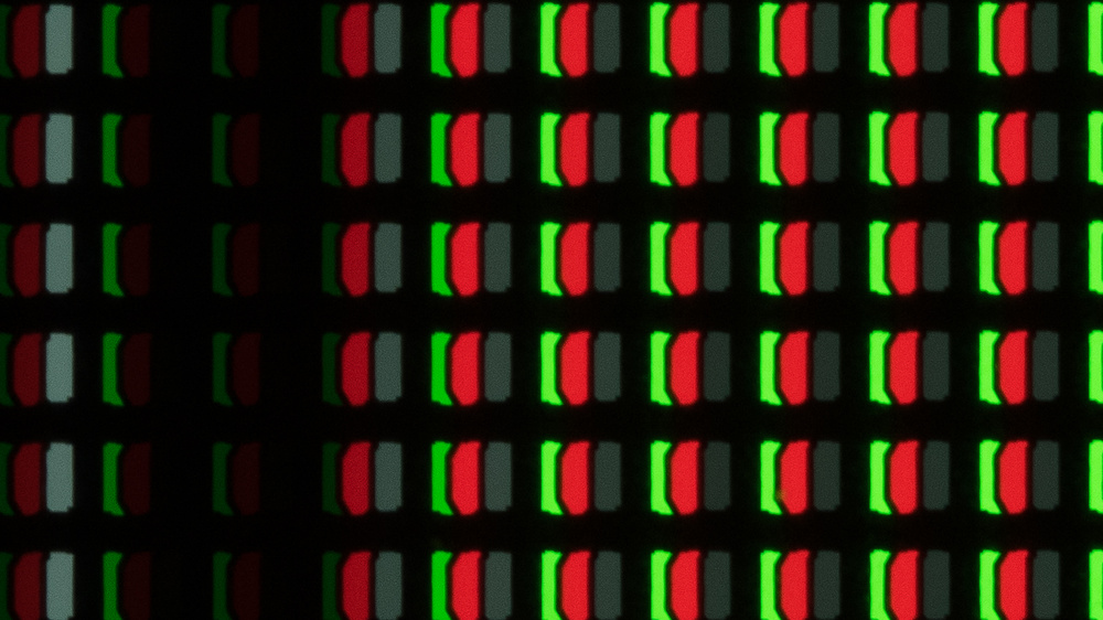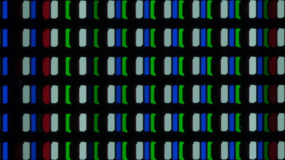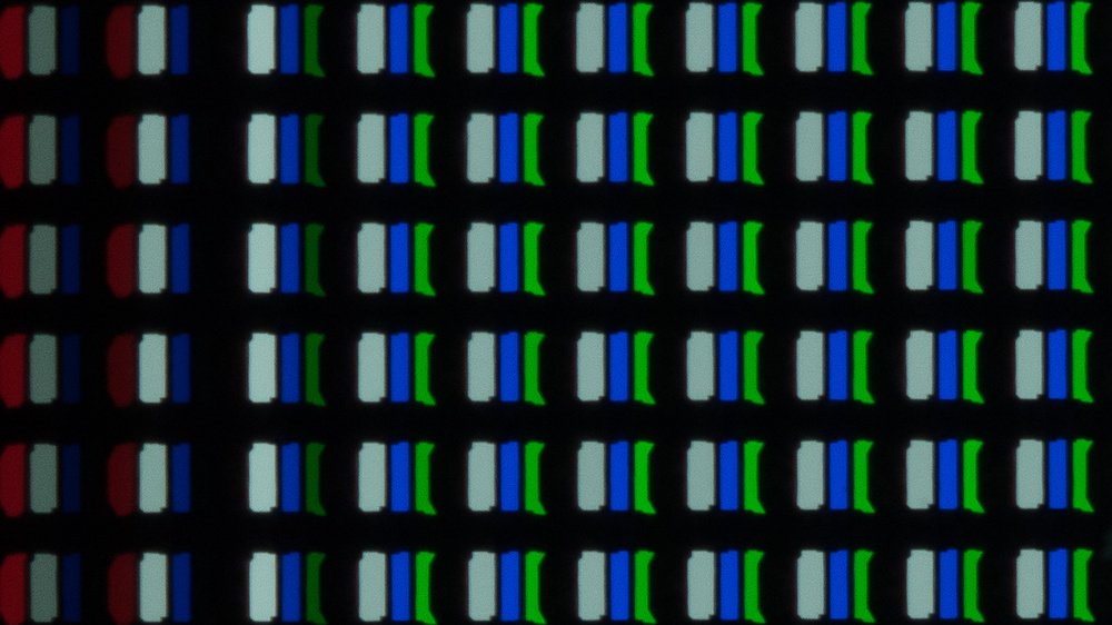 The LG A2 Series has an RWBG subpixel layout, and all four pixels are never on simultaneously. All four pixels are never on at the same time, and you can see alternate pixel photos below: