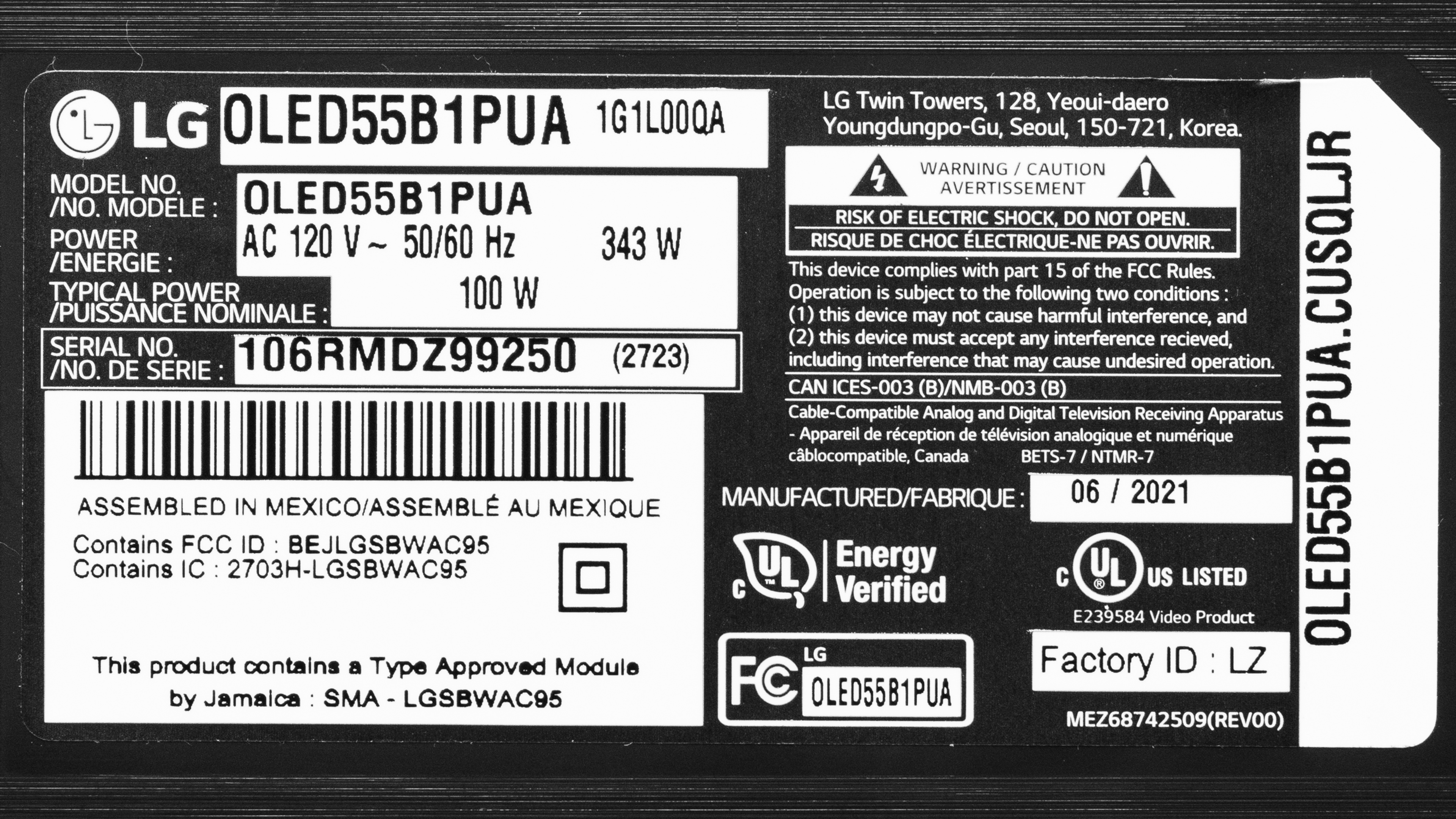 We tested the 55 inch LG B1 (OLED55B1PUB), which also comes in 65 inch and 77 inch models. For the most part, we expect our results to be valid for those models as well. It's only available through LG's website in the United States, but it seems to be available at retailers in Europe. Unfortunately, it's not available in Canada.