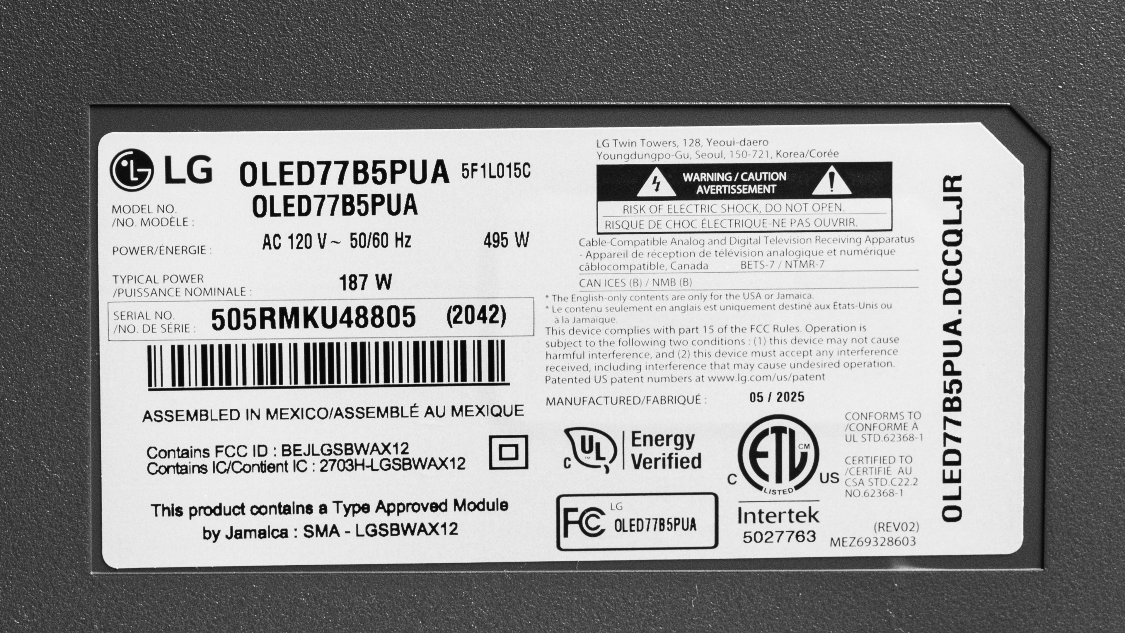 We tested the 77-inch LG B5 (OLED65B5PUA), and the results are also valid for the 48-inch, 55-inch, 65-inch, and 83-inch models. There's also a variant of this TV called the LG B5A that's sold primarily at club stores like Sam's Club and Costco. There's absolutely no difference between them, but the club version usually comes with a longer warranty. Unlike the B4, the 83-inch model is the same as the smaller sizes.