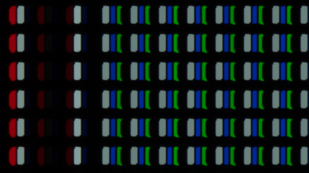 Like all LG OLED TVs, all four subpixels are never lit at the same time. You can see other subpixel photos here and here. Also note that as this TV uses an RWBG subpixel layout, this will cause issues with text display on Windows as ClearType isn't well adjusted to non-RGB subpixel layouts