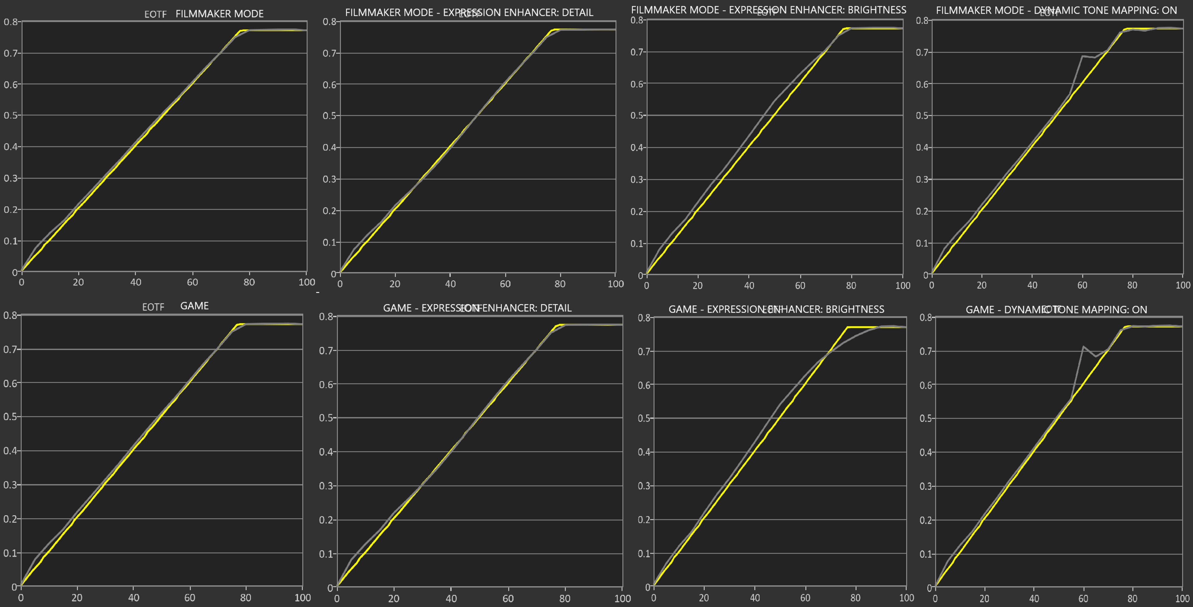 Our results above are with the TV set to Filmmaker Mode with 'Dynamic Tone Mapping' disabled. Below are the results with DTM turned on, which increases the brightness of some highlights at the expense of accuracy.