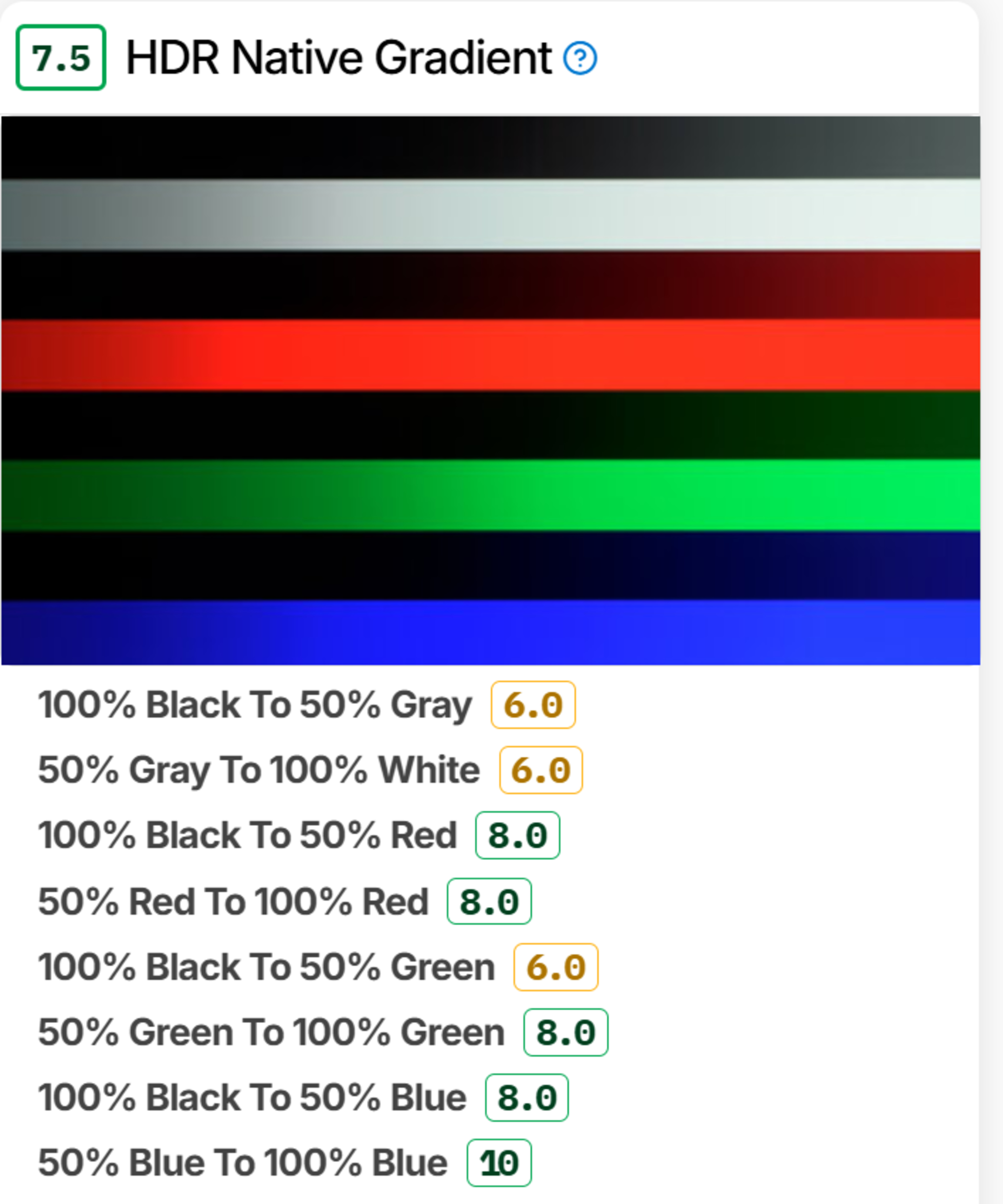 The LG C5 has excellent HDR native gradient handling in Filmmaker Mode. There's some very minor banding in some colors, but it's barely noticeable with real content.