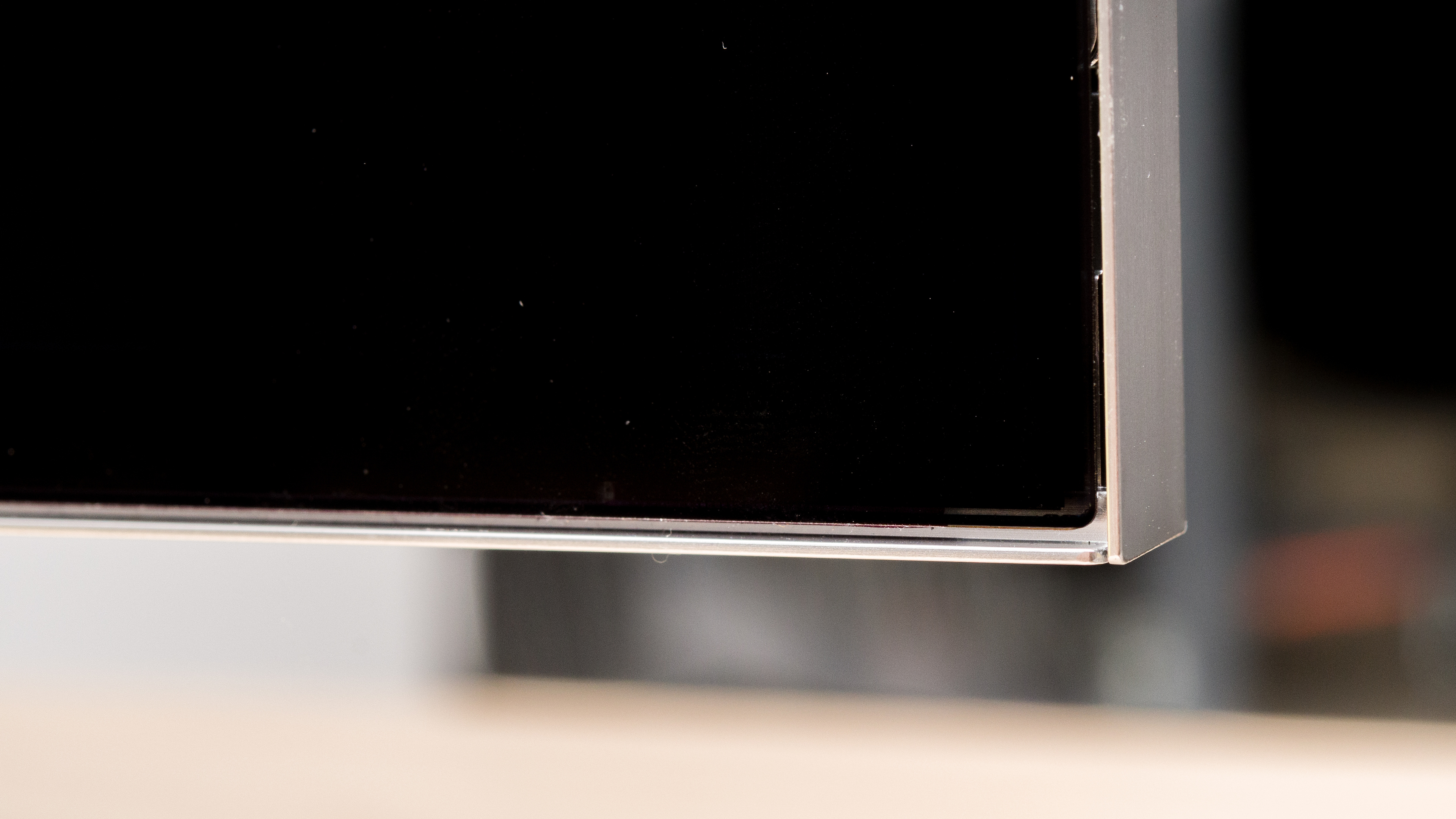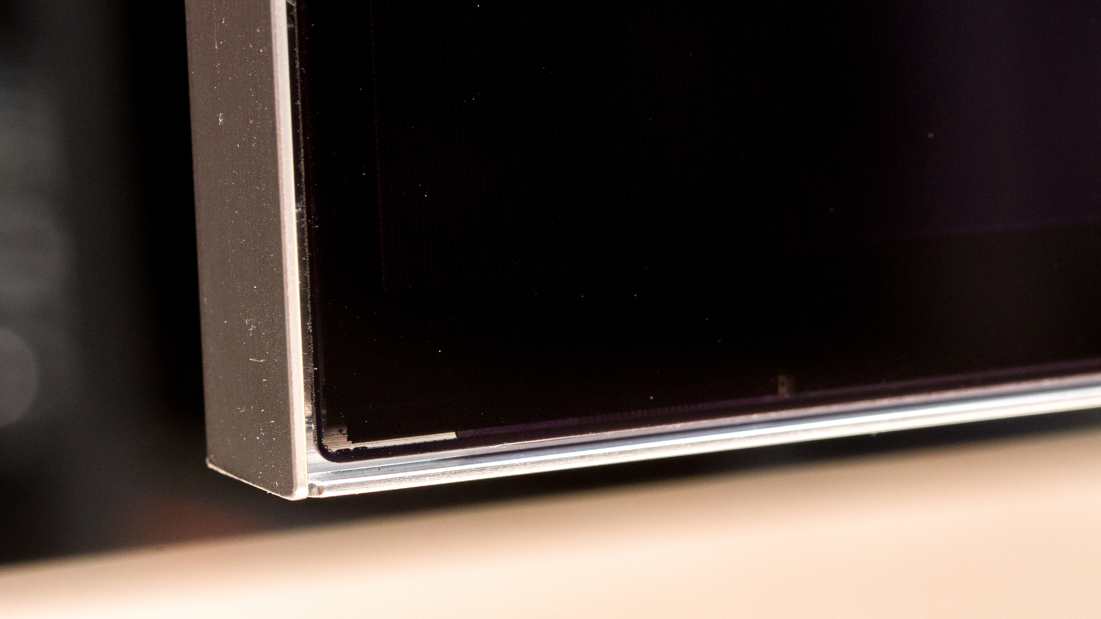 The LG G2 has fantastic build quality. The materials used feel premium, and although there's a bit of flex on the back panel near the inputs, it's not an issue. There are some slight gaps where the bottom corners connect to the TV, as shown here, and here. It gets a bit warm with extended use, but this isn't unusual and won't cause any issues.