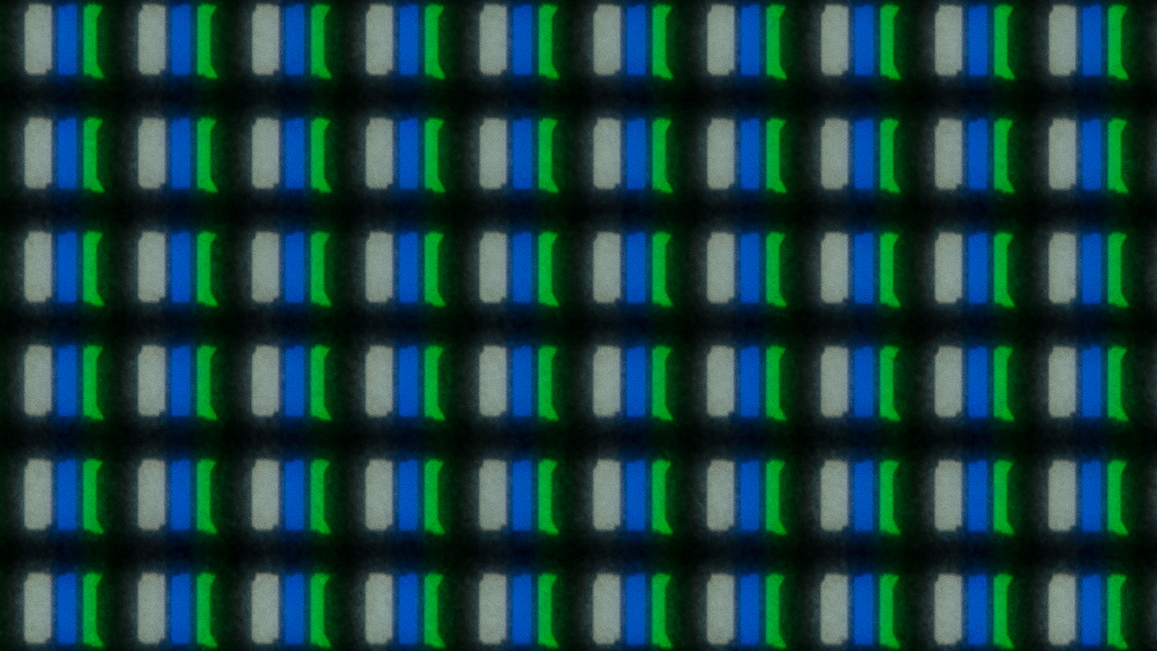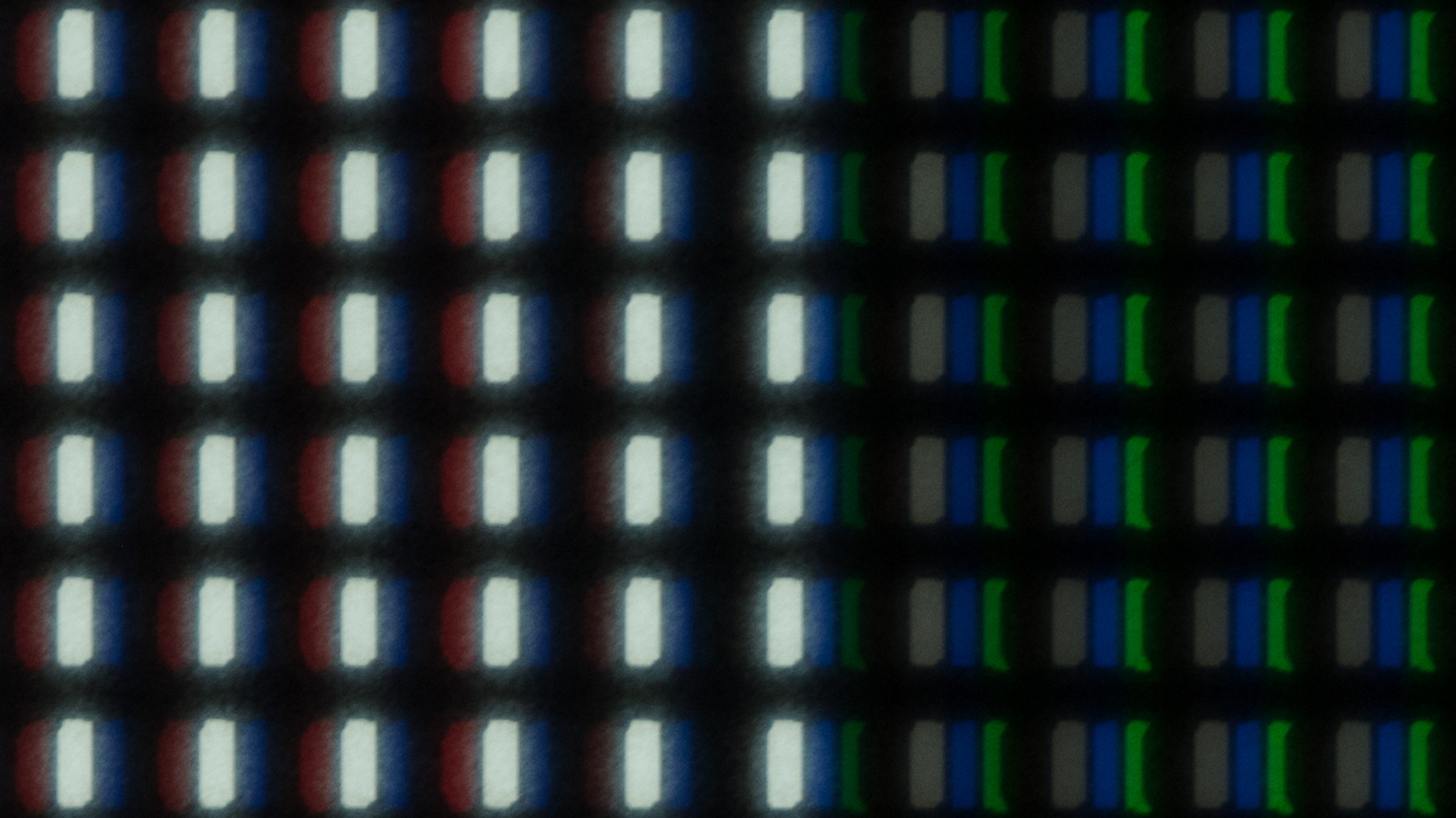 Like all LG OLED TVs, all four subpixels are never lit simultaneously. You can see other subpixel photos here and here.