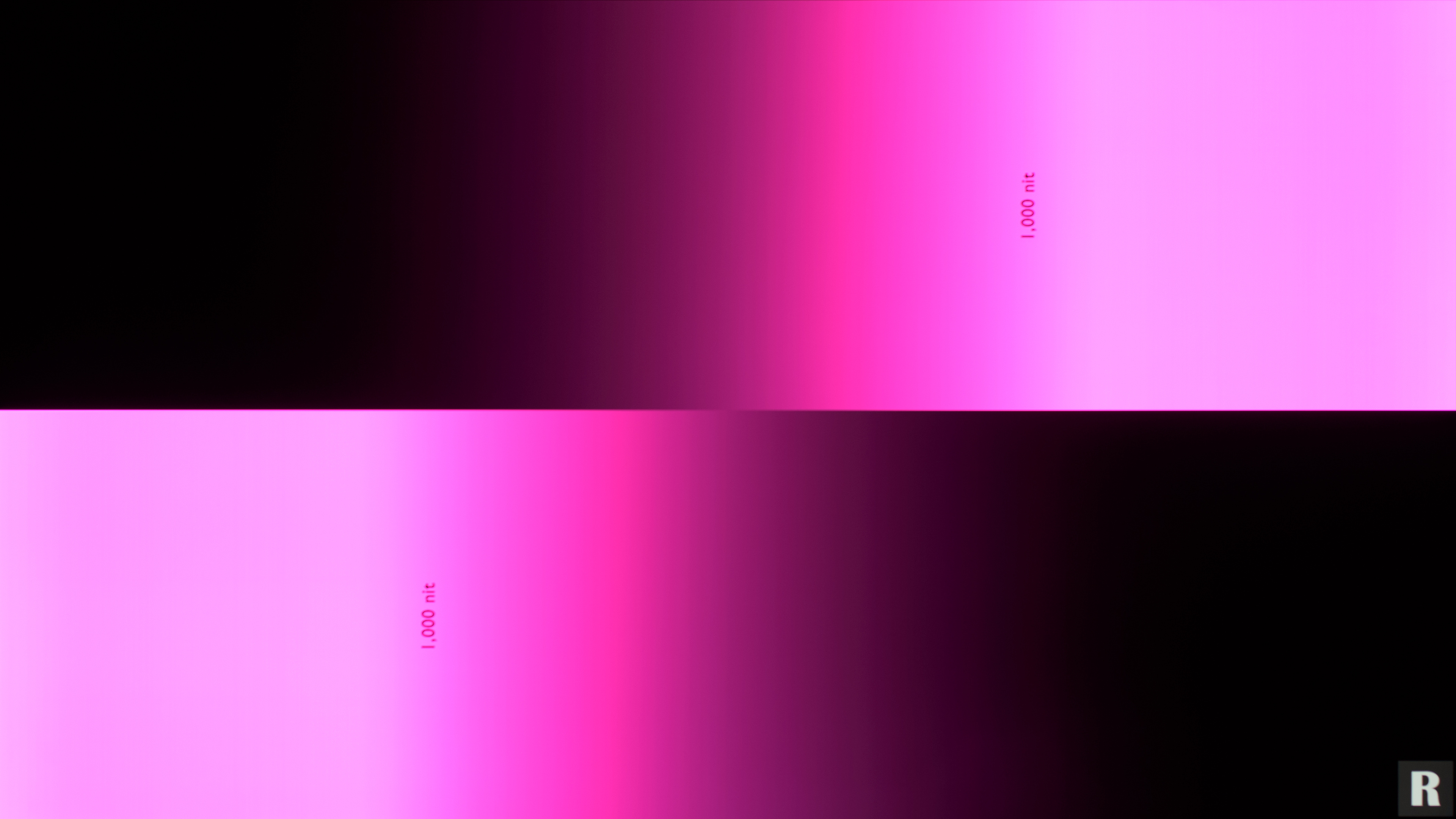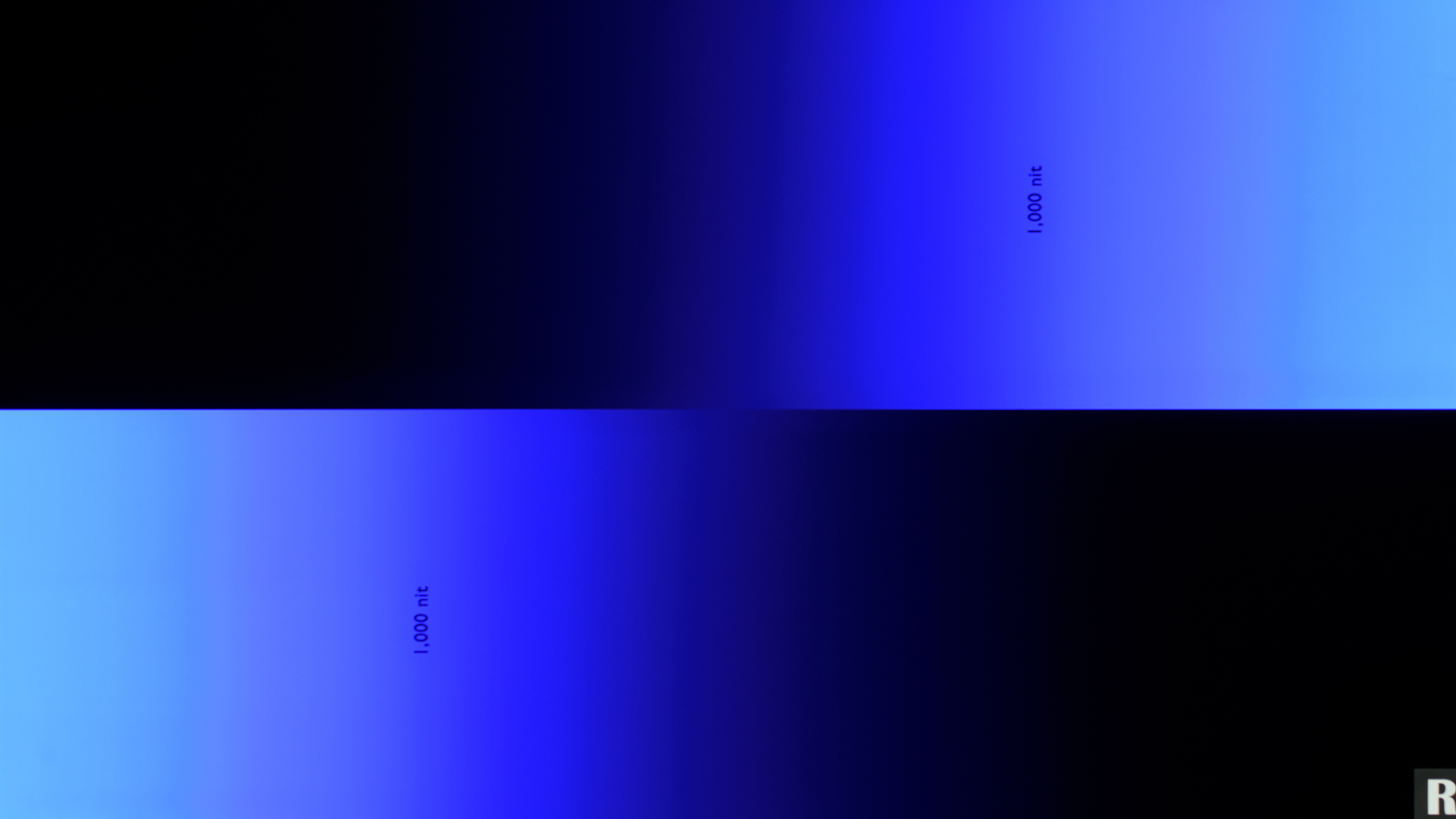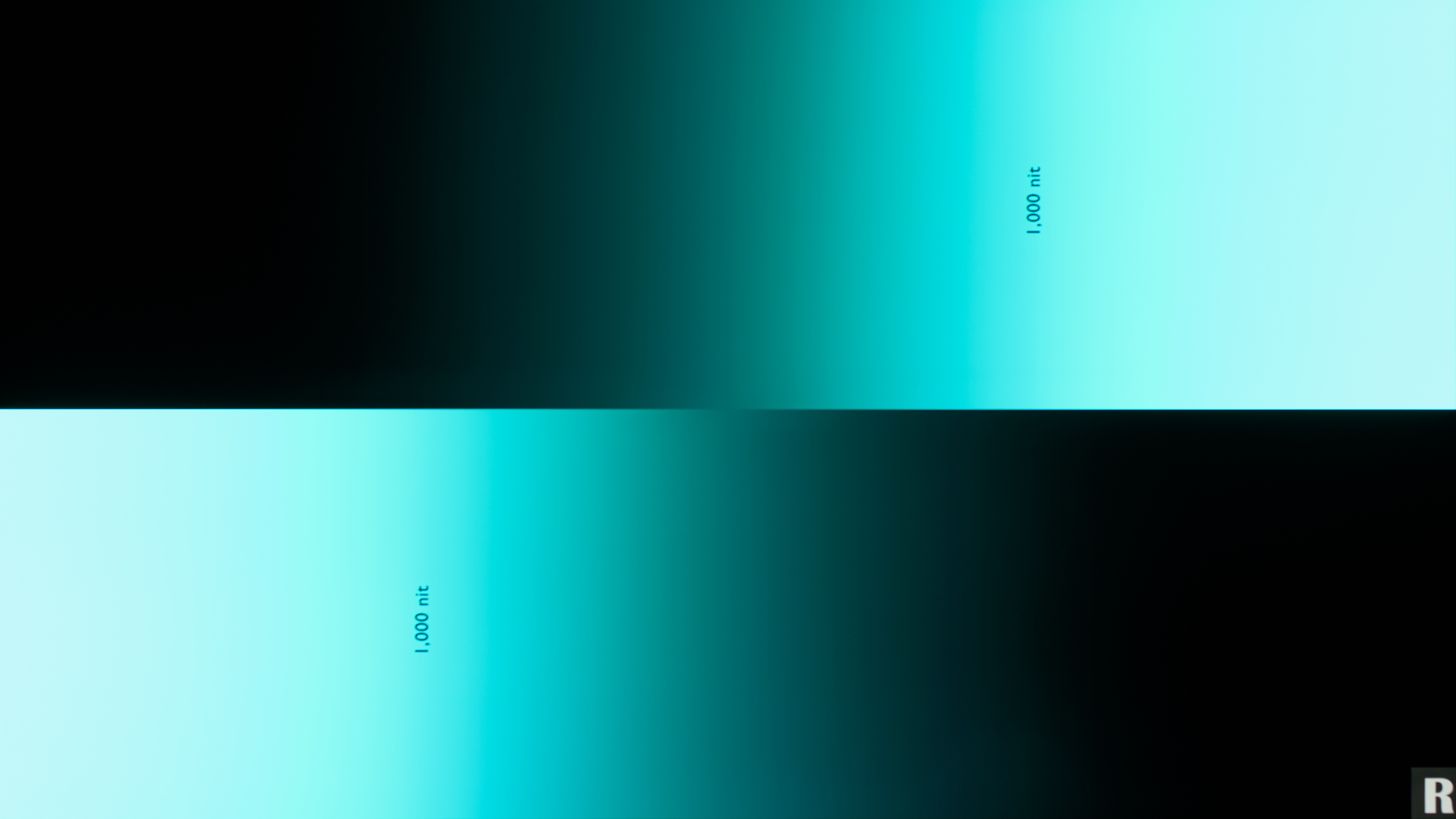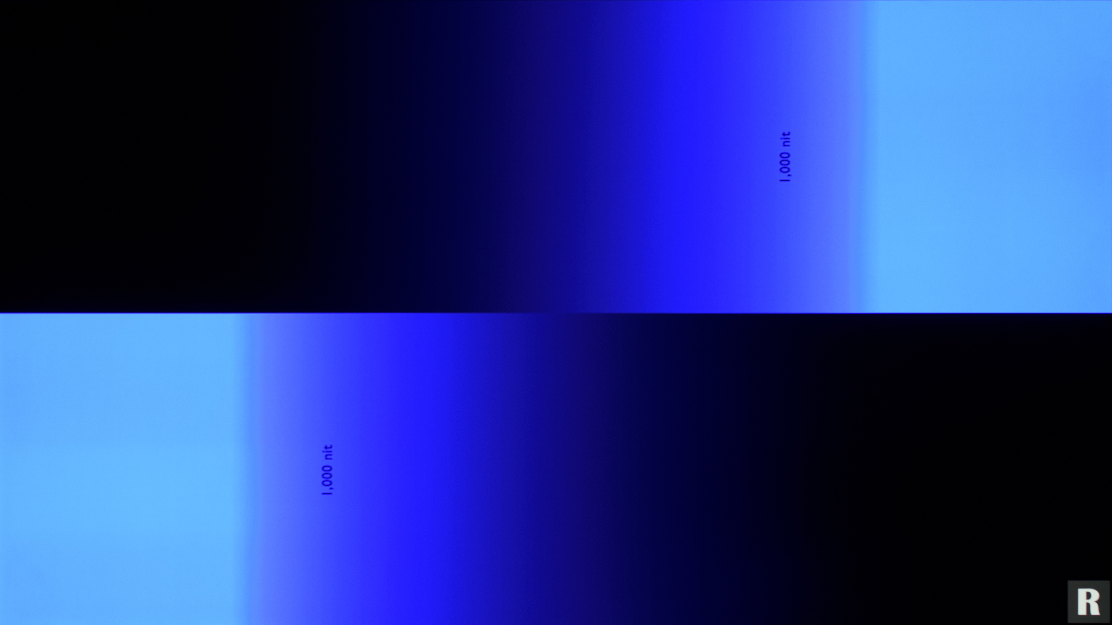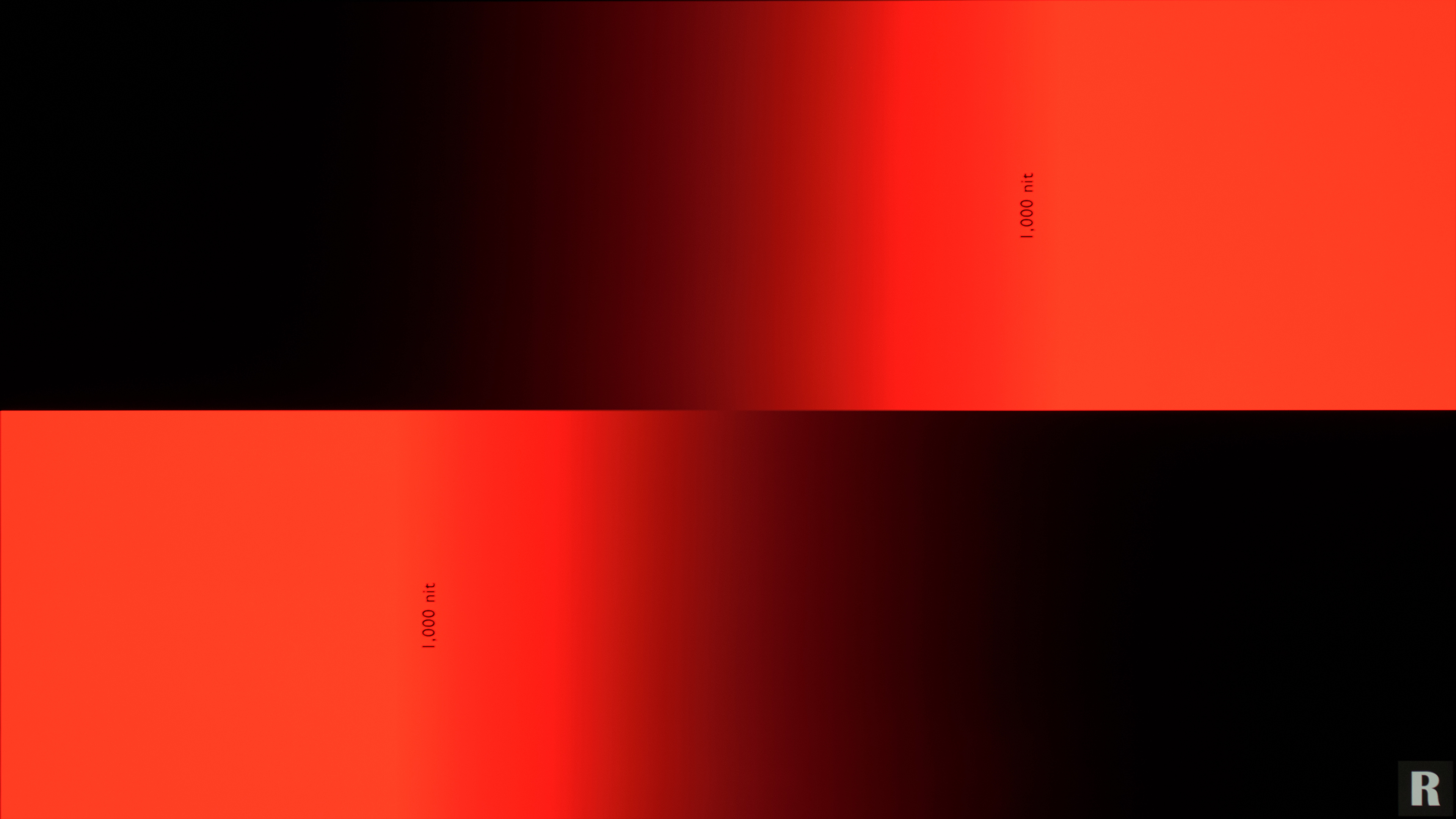 Unfortunately, there are diagonal lines that appear as a result of dithering. These lines are quite apparent when watching content or playing games if you're sitting close to the screen, but the lines aren't nearly as visible from a normal viewing distance. You can see these lines for yourself by watching this slow-motion video we captured. Keep in mind that this video was captured at 1000fps on our Chronos 2.1-HD High Speed Camera, so the video is almost 42 times slower than real content at 24fps, which makes the diagonal lines a lot more noticeable. You can also see an example of this dithering by alternating between this photo and this other photo. This dithering also adds some grain-like noise to some dark scenes. It's not very noticeable during all dark scenes, but the noisier the scene, the worse the additional grain is.