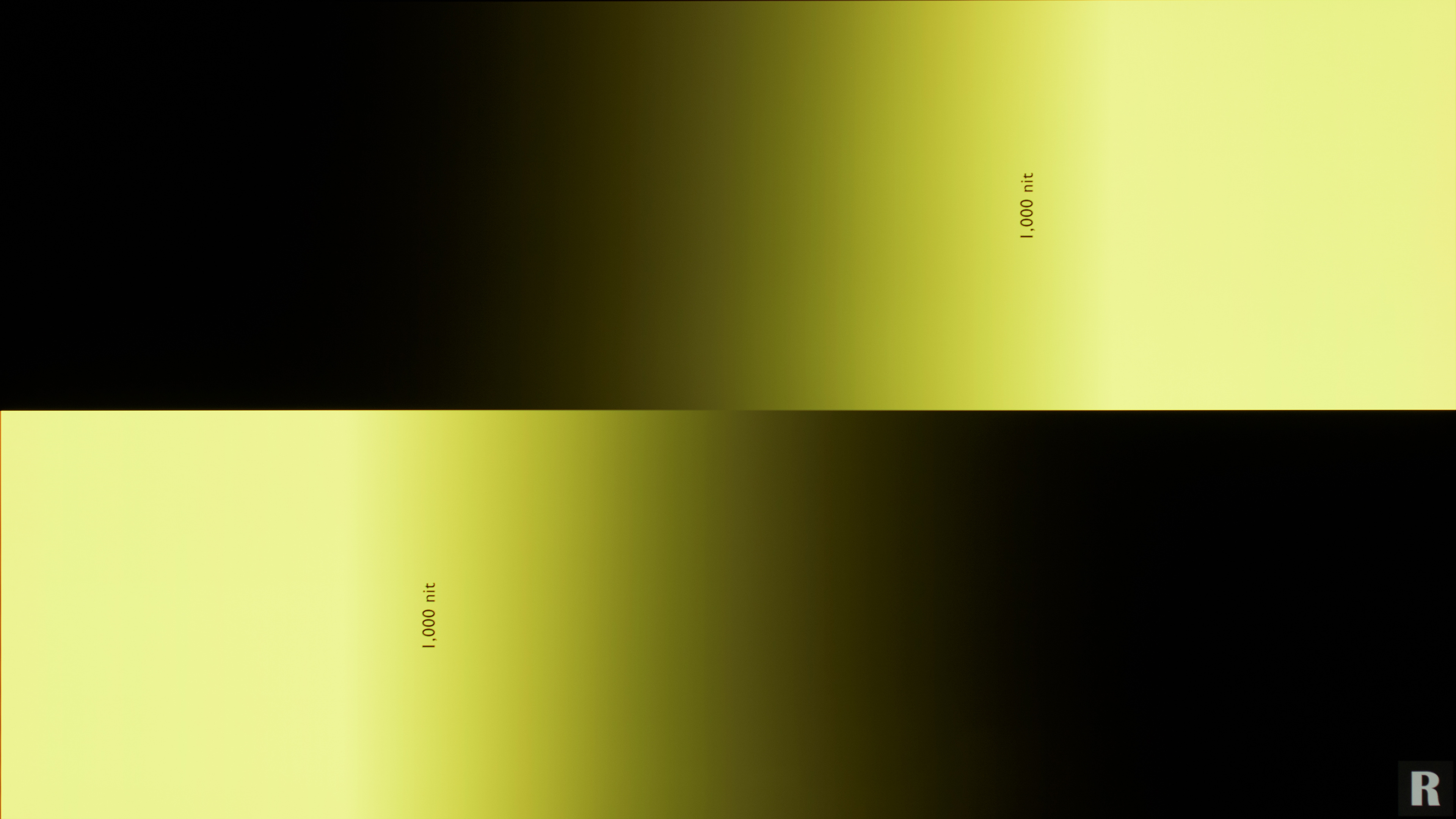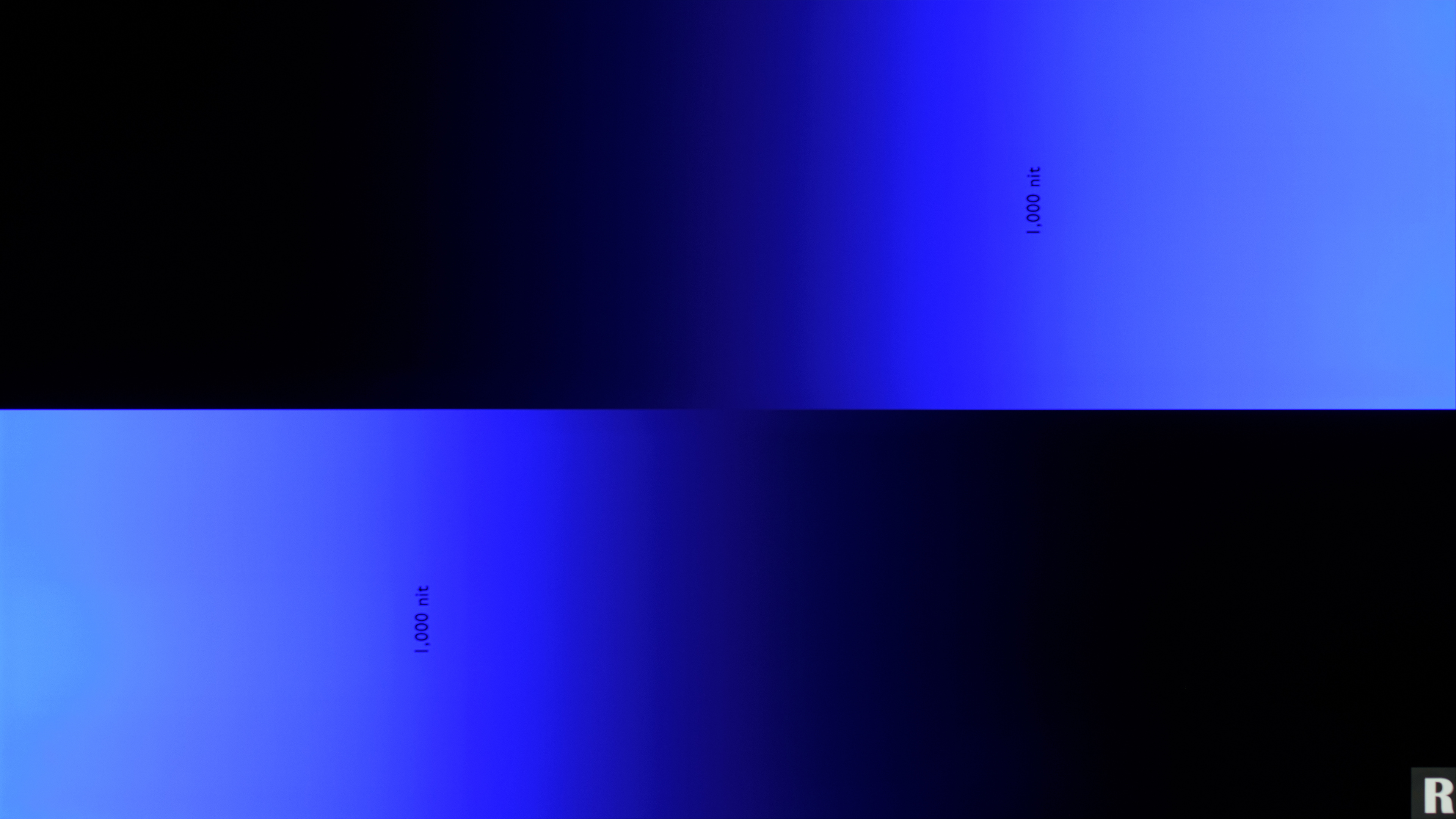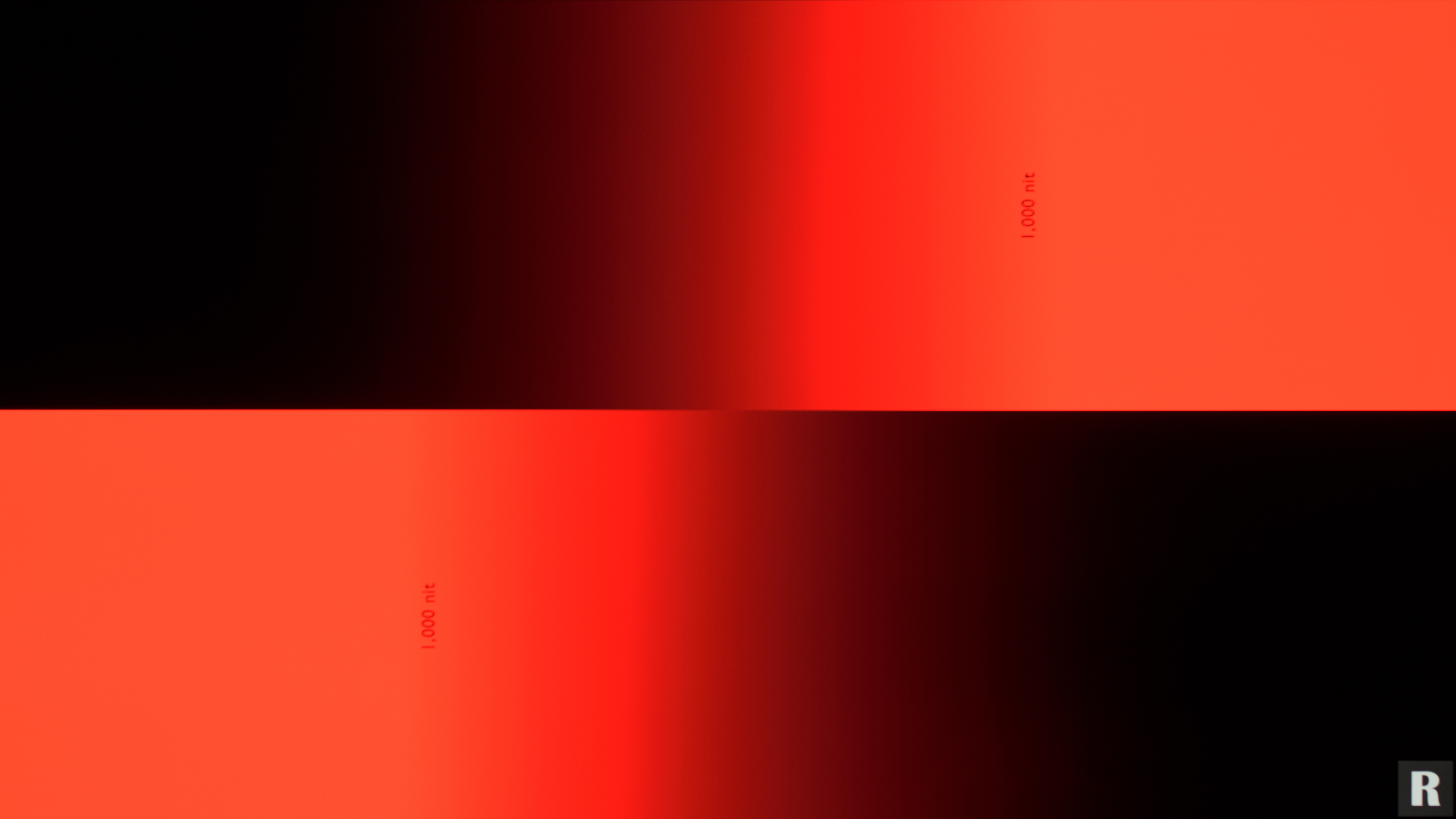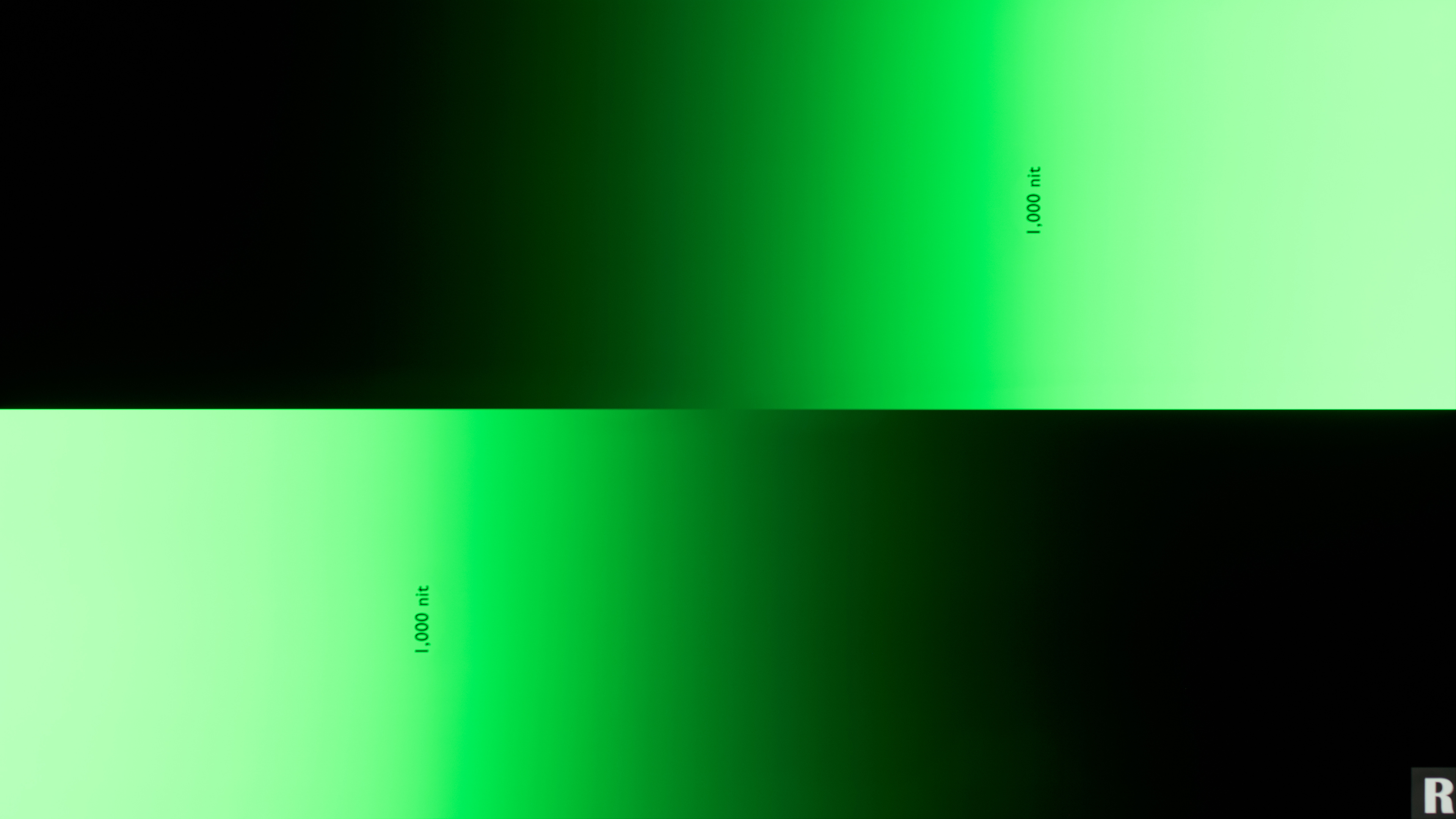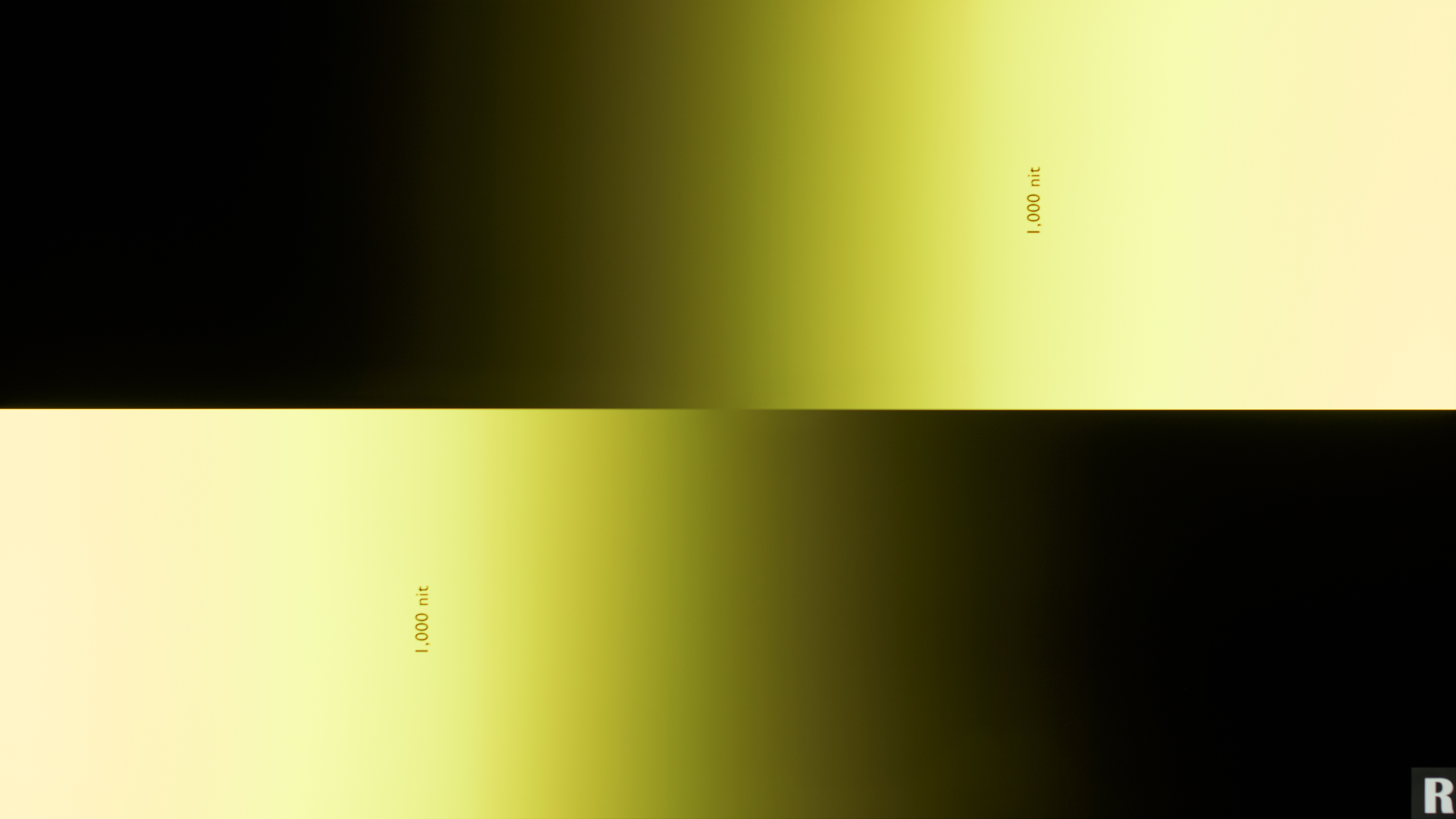 Unfortunately, there are diagonal lines that appear as a result of dithering. These lines are quite apparent when watching content or playing games if you're sitting close to the screen, but the lines aren't nearly as visible from a normal viewing distance. You can see these lines for yourself by watching this slow-motion video we captured. Keep in mind that this video was captured at 1000fps on our Chronos 2.1-HD High Speed Camera, so the video is almost 42 times slower than real content at 24fps, which makes the diagonal lines a lot more noticeable. You can also see an example of this dithering by alternating between this photo and this other photo. This dithering also adds some grain-like noise to some dark scenes. It's not very noticeable during all dark scenes, but the noisier the scene, the worse the additional grain is.