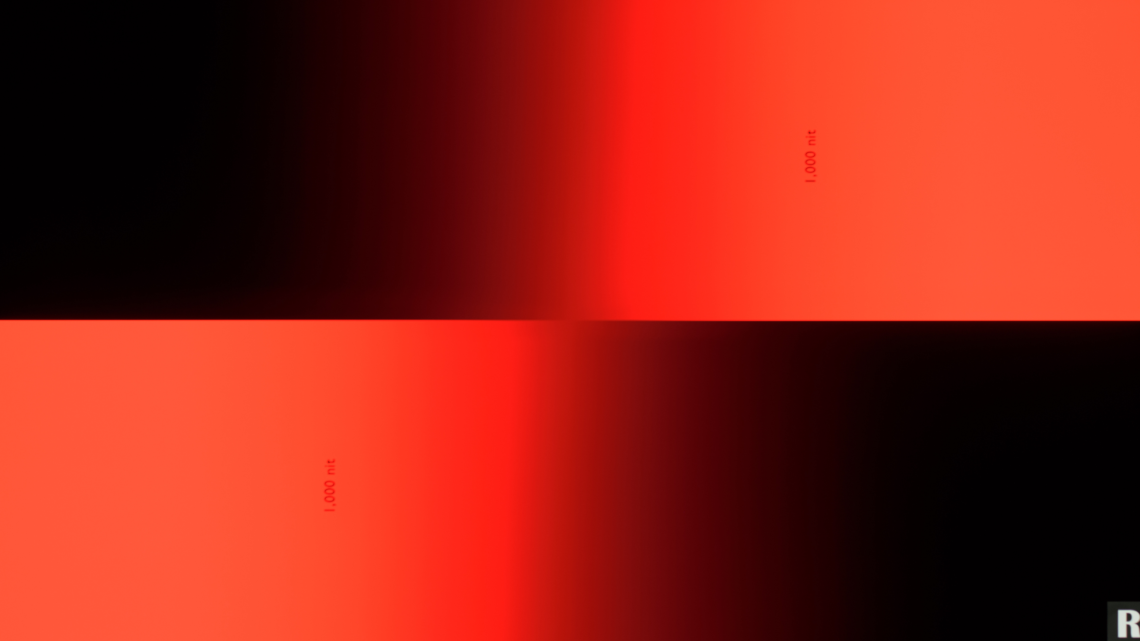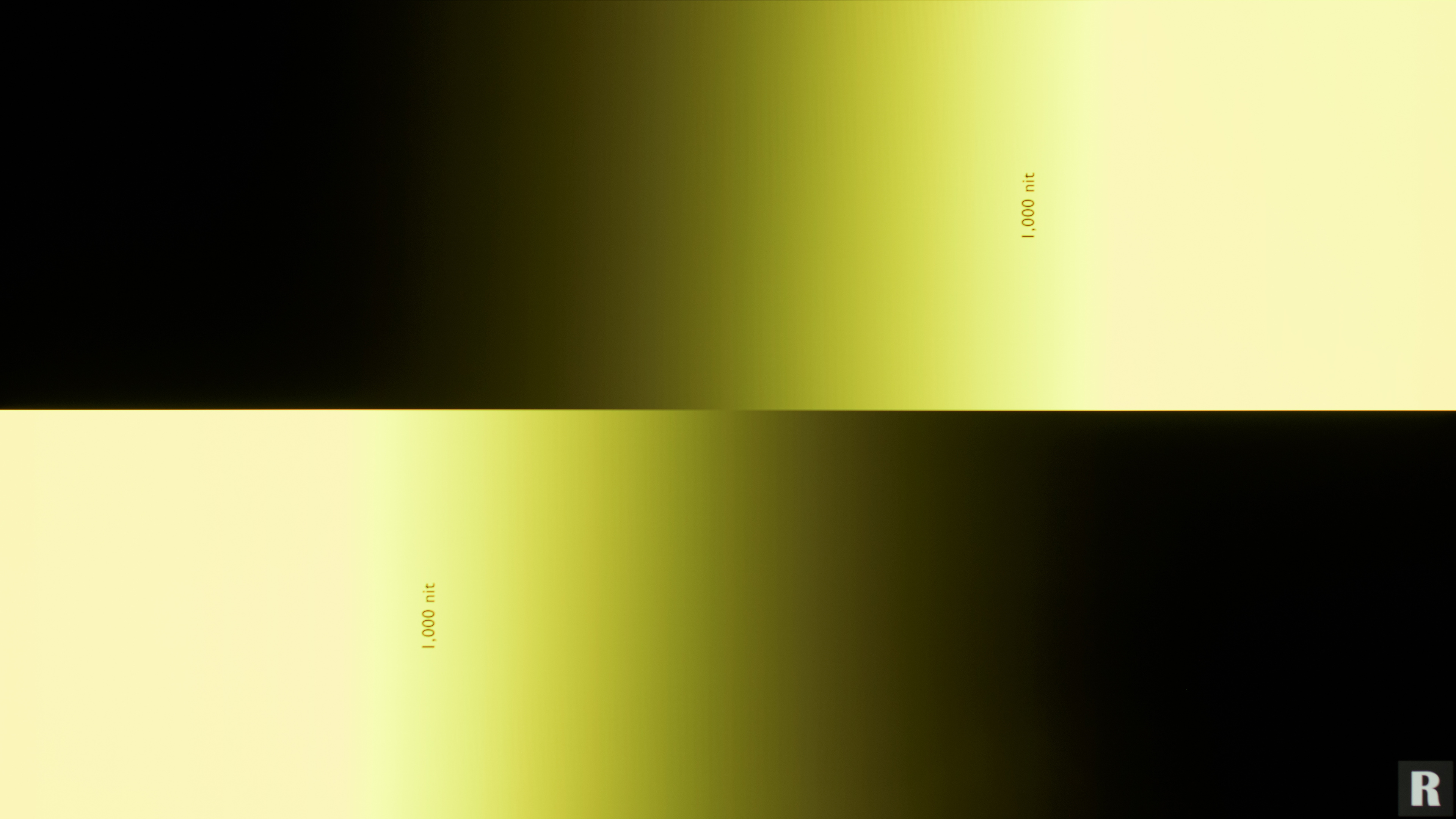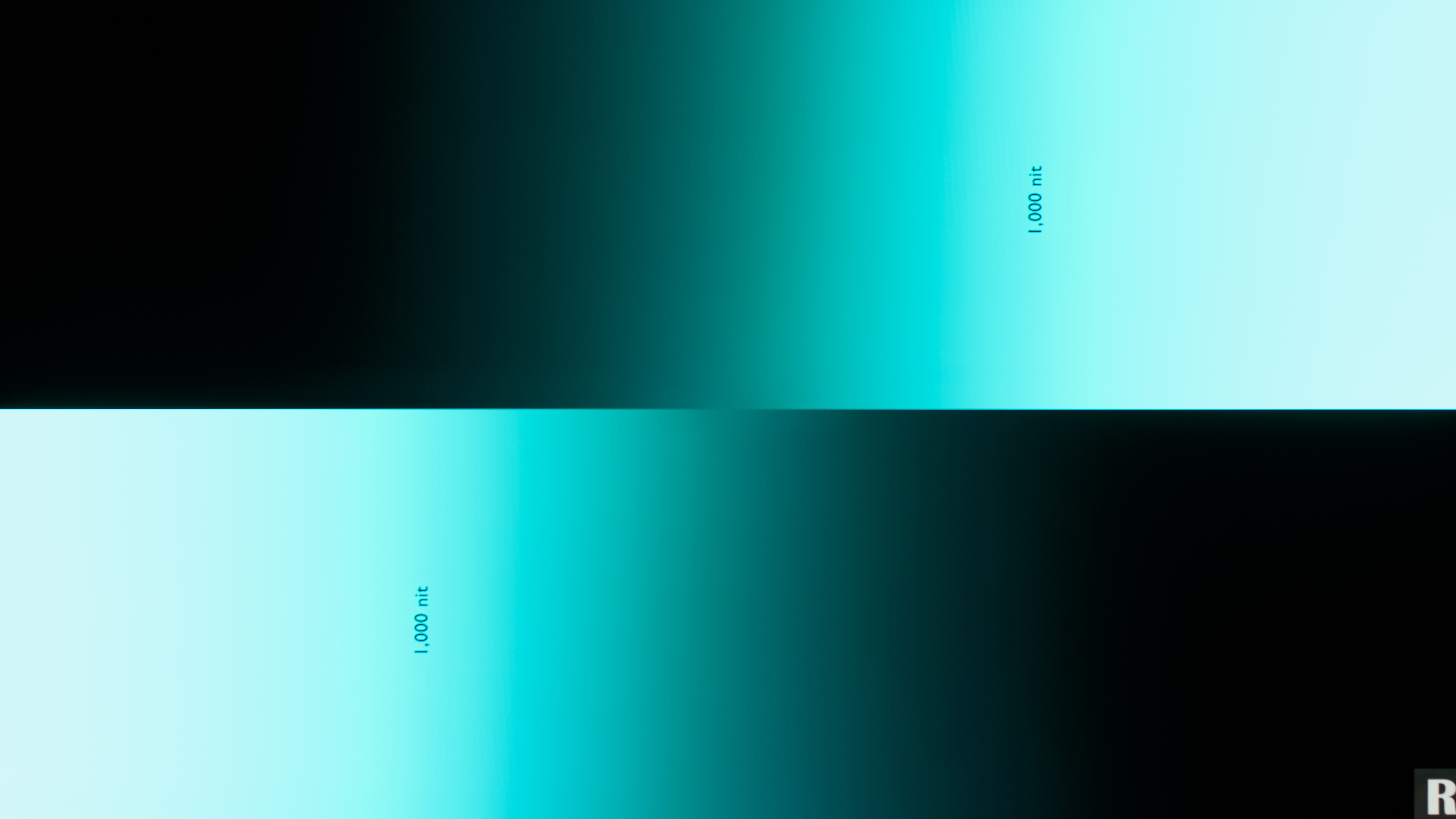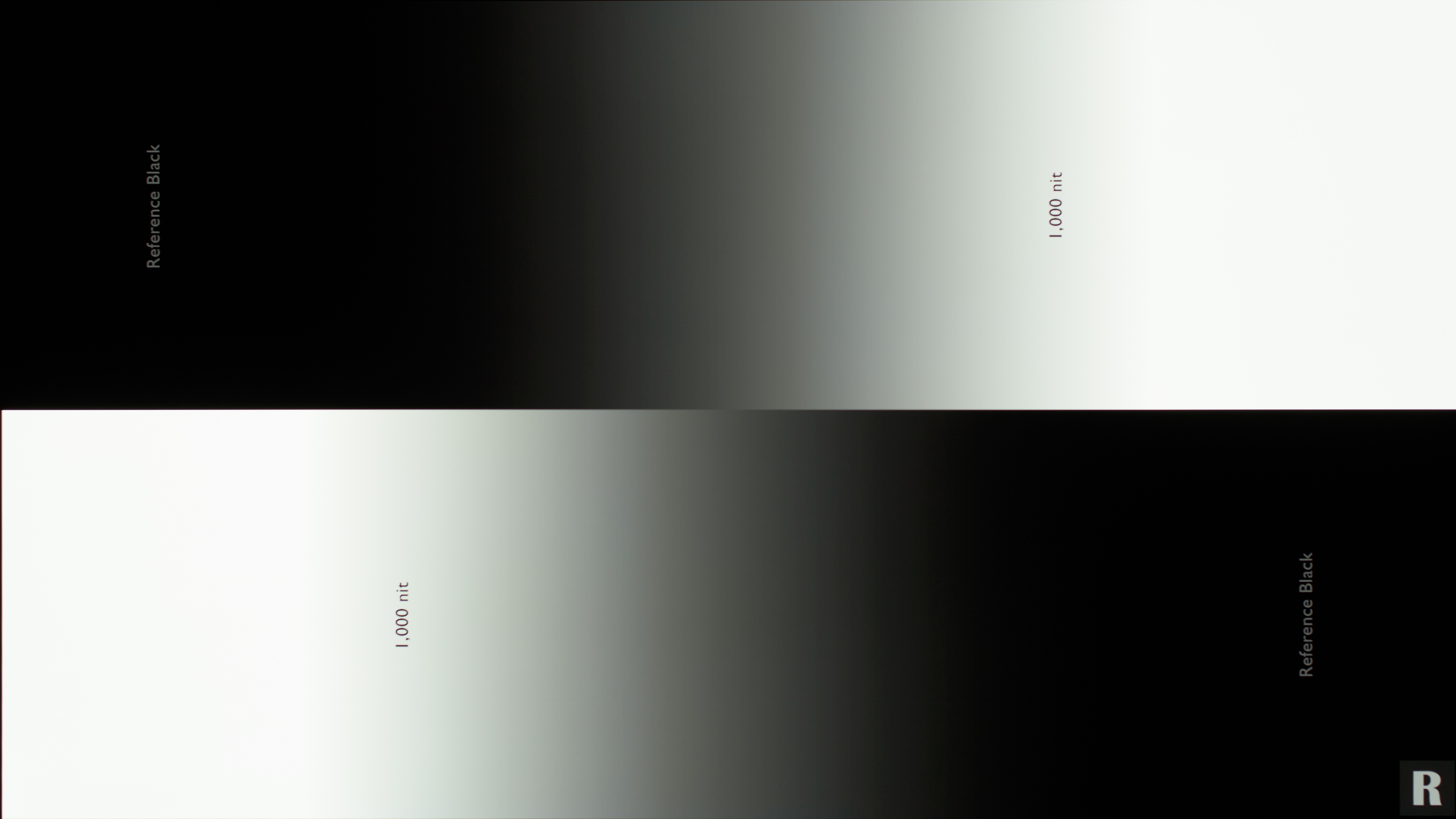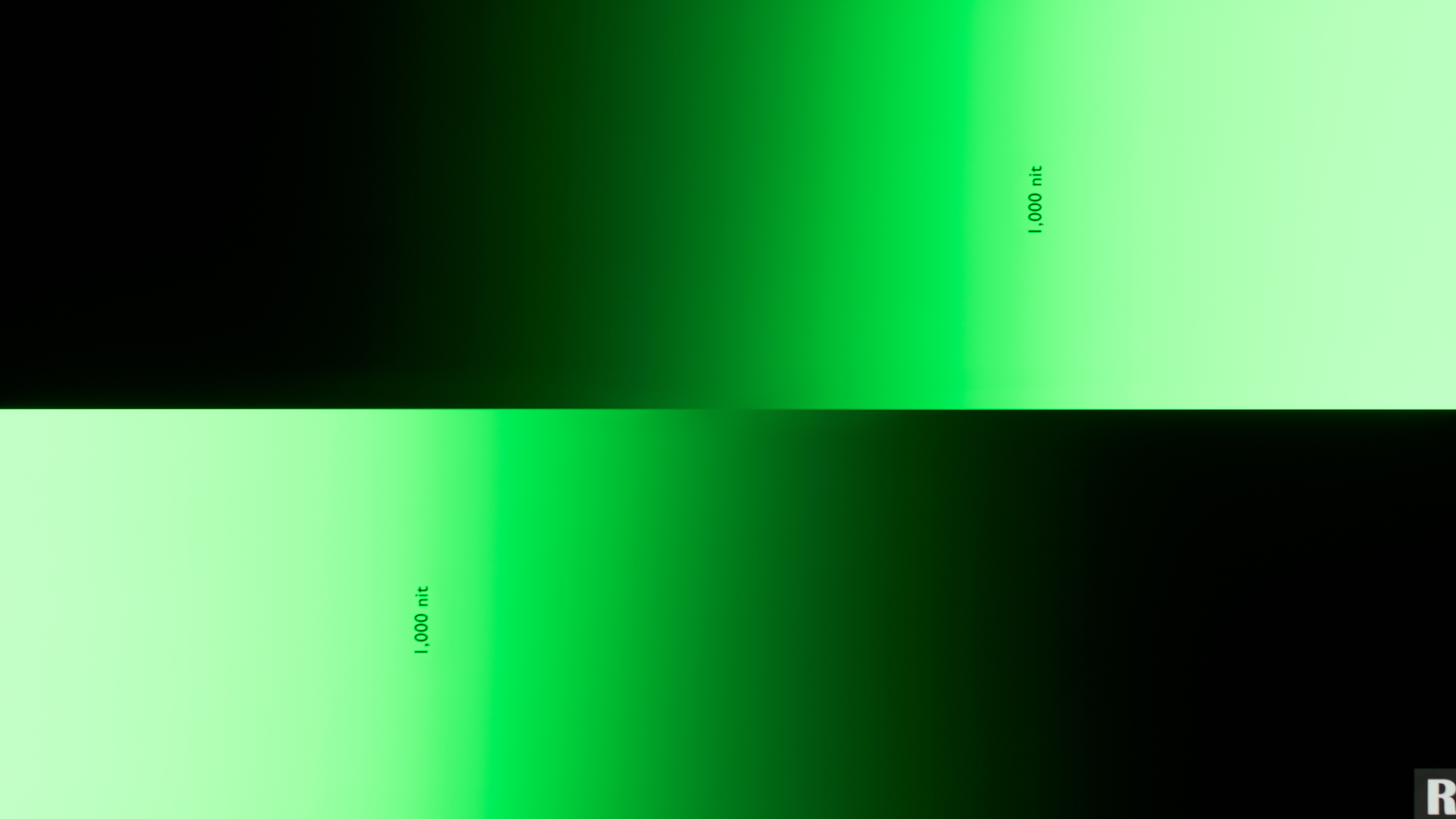 Unfortunately, there are diagonal lines that appear as a result of dithering. These lines are quite apparent when watching content or playing games if you're sitting close to the screen, but the lines aren't nearly as visible from a normal viewing distance. You can see these lines for yourself by watching this slow-motion video we captured. Keep in mind that this video was captured at 1000fps on our Chronos 2.1-HD High Speed Camera, so the video is almost 42 times slower than real content at 24fps, which makes the diagonal lines a lot more noticeable. You can also see an example of this dithering by alternating between this photo and this other photo. This dithering also adds some grain-like noise to some dark scenes. It's not very noticeable during all dark scenes, but the noisier the scene, the worse the additional grain is.