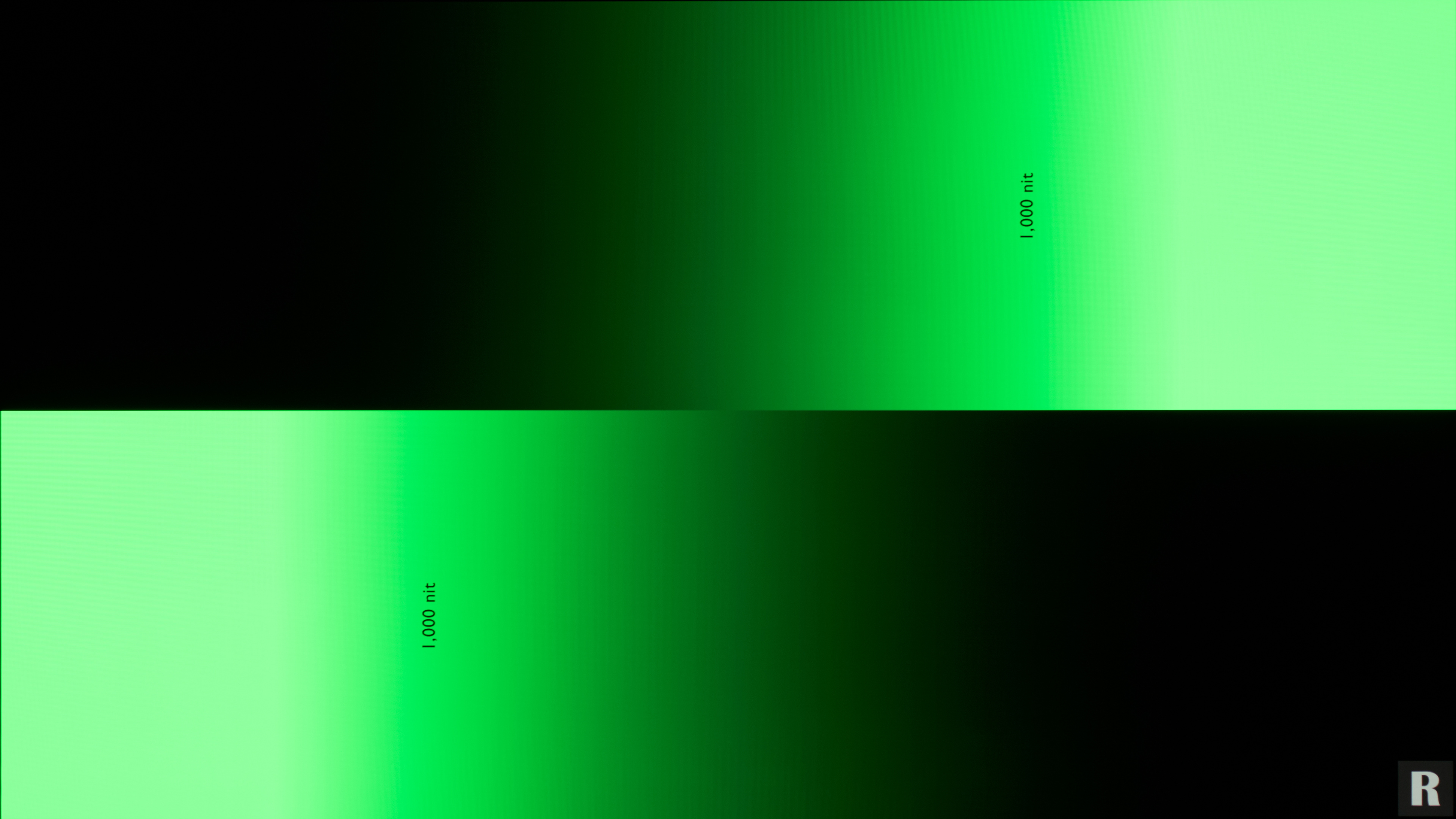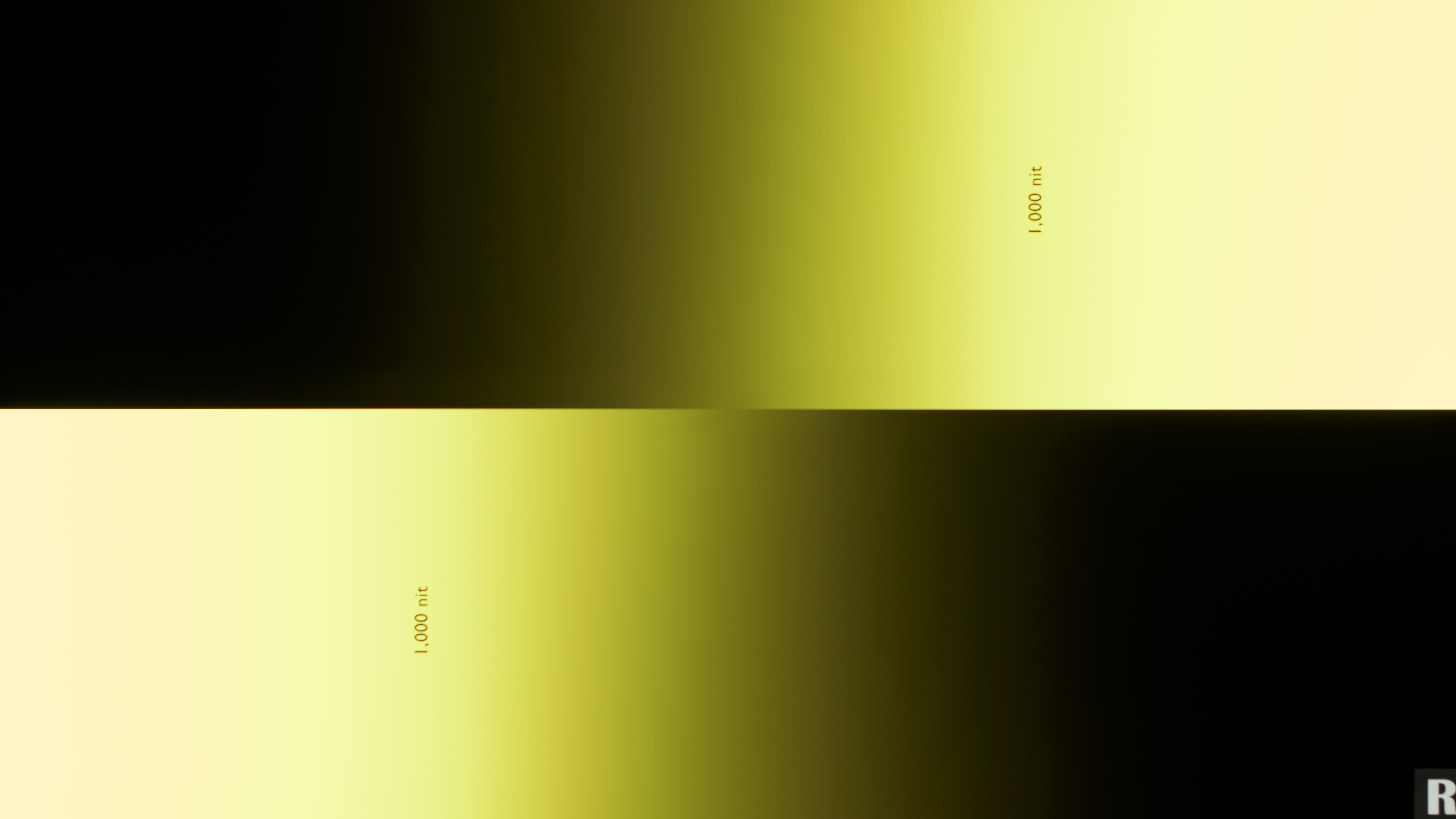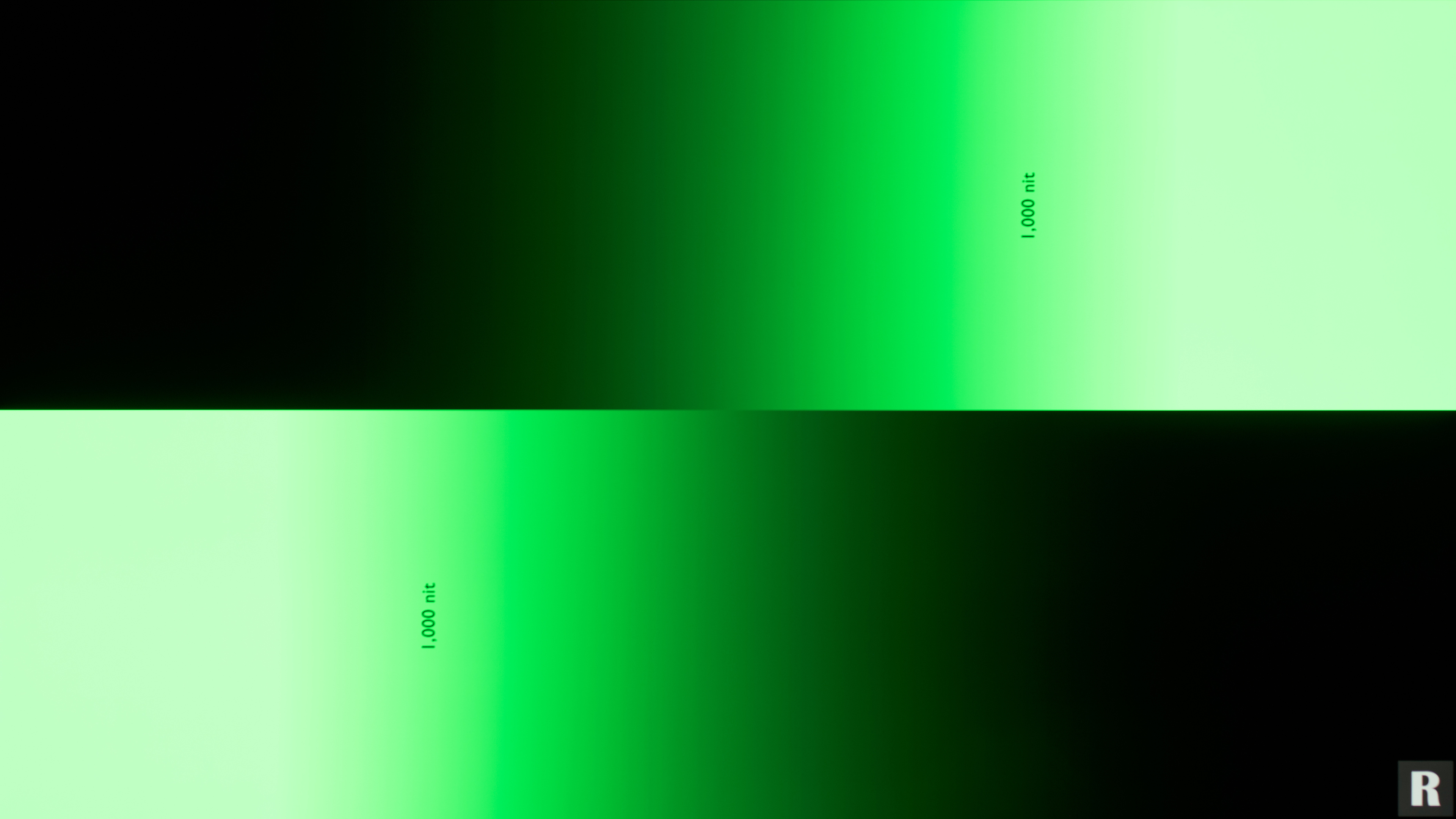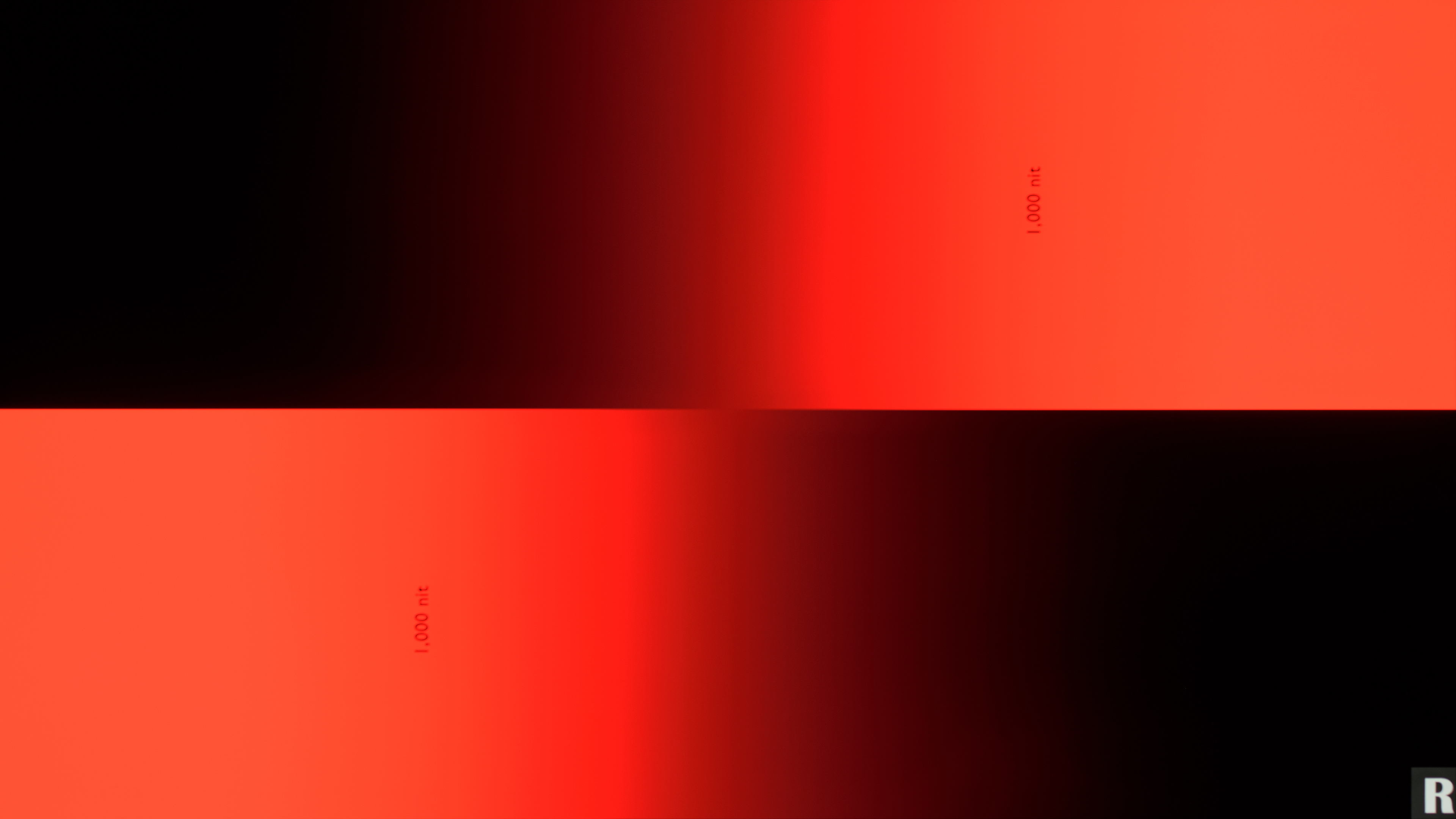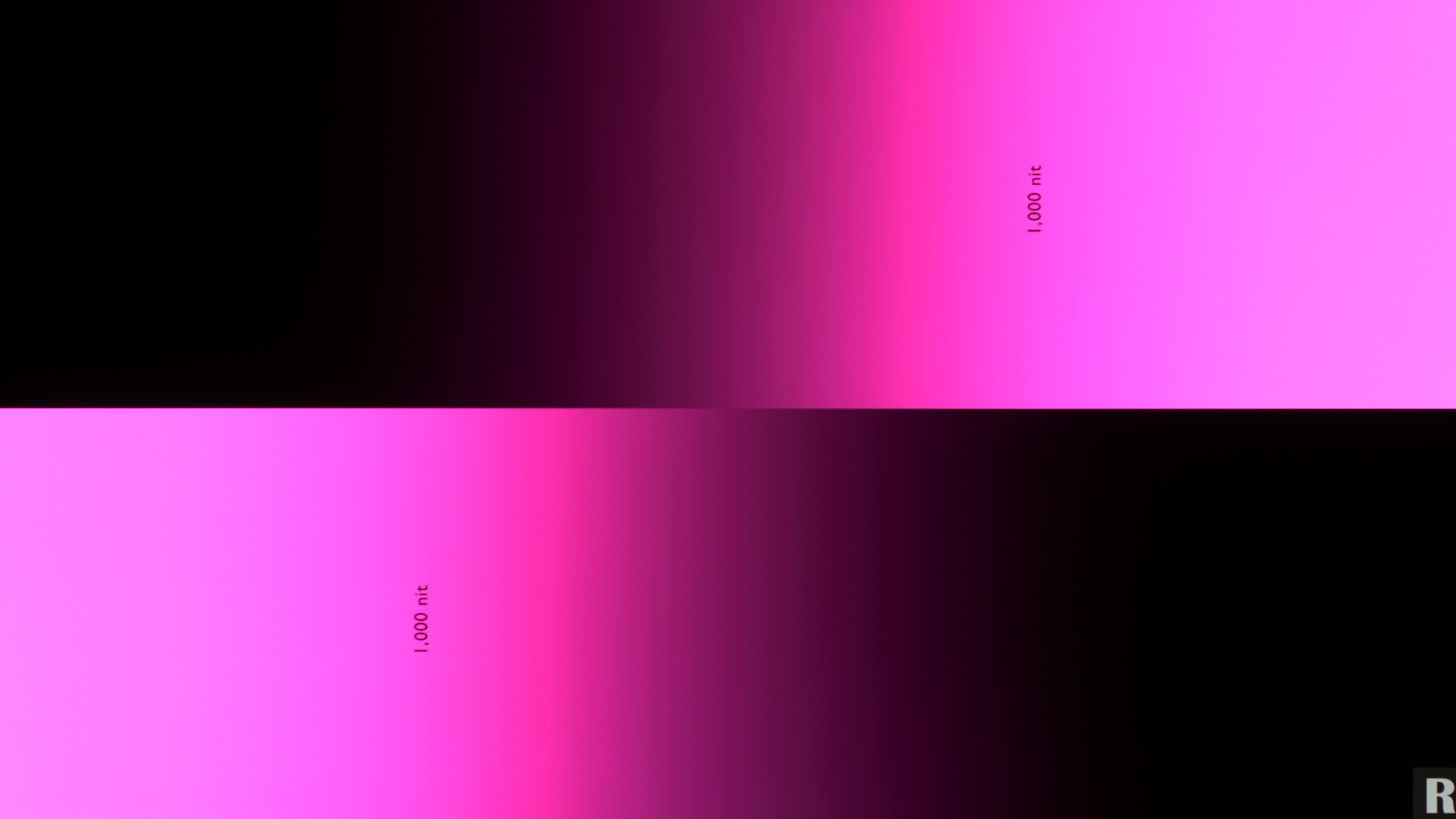 Unfortunately, there are diagonal lines that appear as a result of dithering. These lines are quite apparent when watching content or playing games if you're sitting close to the screen, but the lines aren't nearly as visible from a normal viewing distance. You can see these lines for yourself by watching this slow-motion video we captured. Keep in mind that this video was captured at 1000fps on our Chronos 2.1-HD High Speed Camera, so the video is almost 42 times slower than real content at 24fps, which makes the diagonal lines a lot more noticeable. You can also see an example of this dithering by alternating between this photo and this other photo. This dithering also adds some grain-like noise to some dark scenes. It's not very noticeable during all dark scenes, but the noisier the scene, the worse the additional grain is.