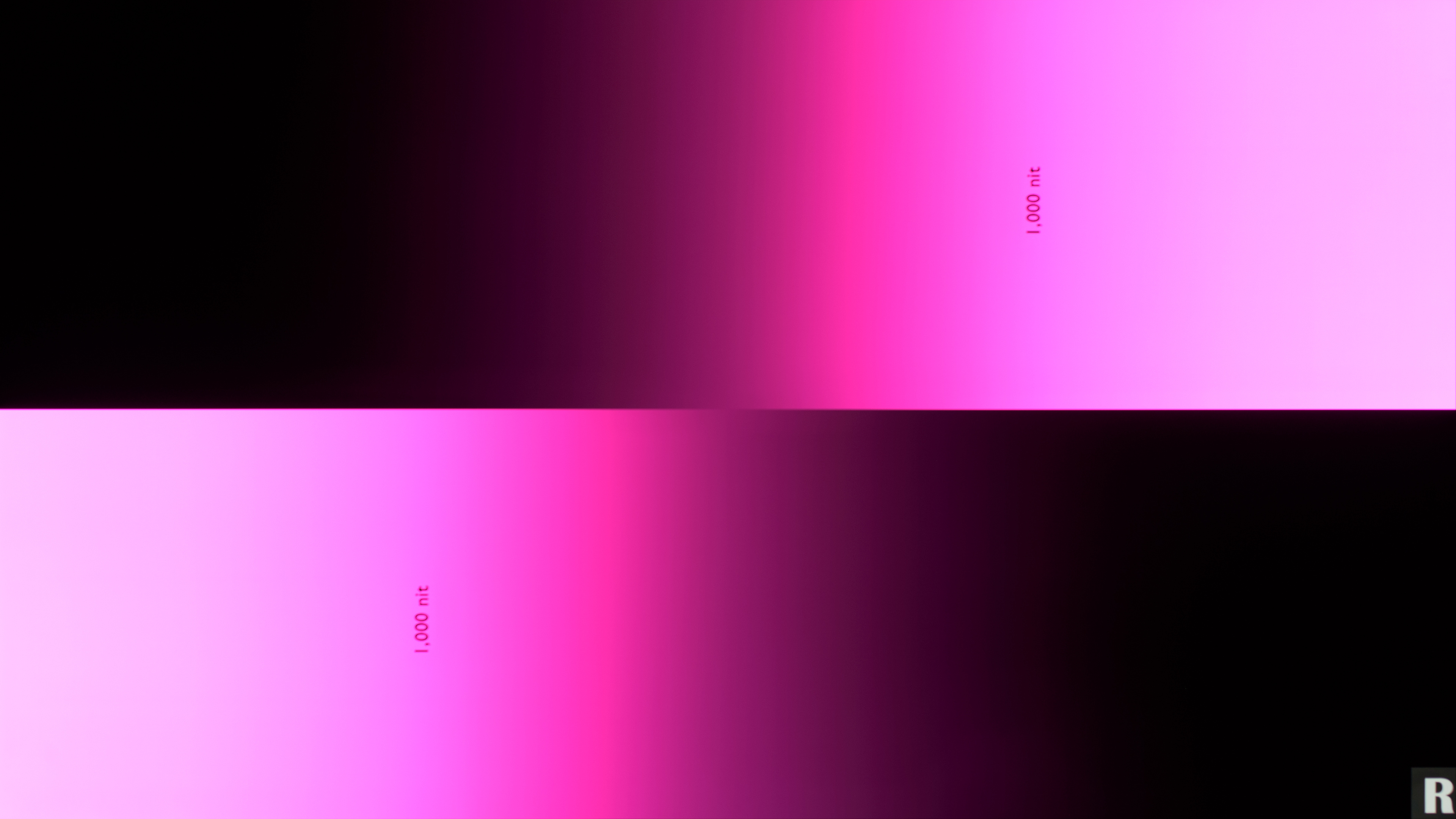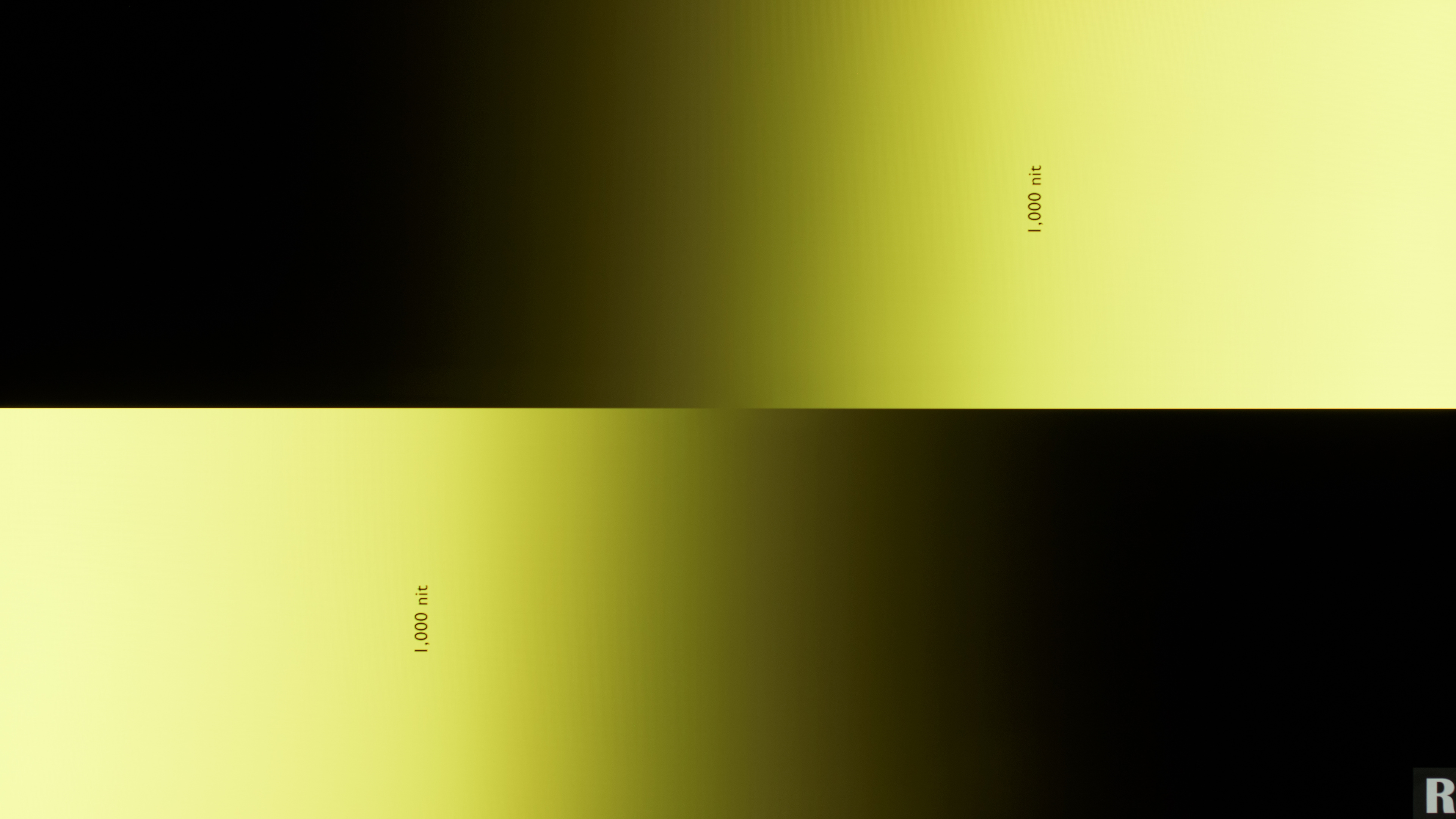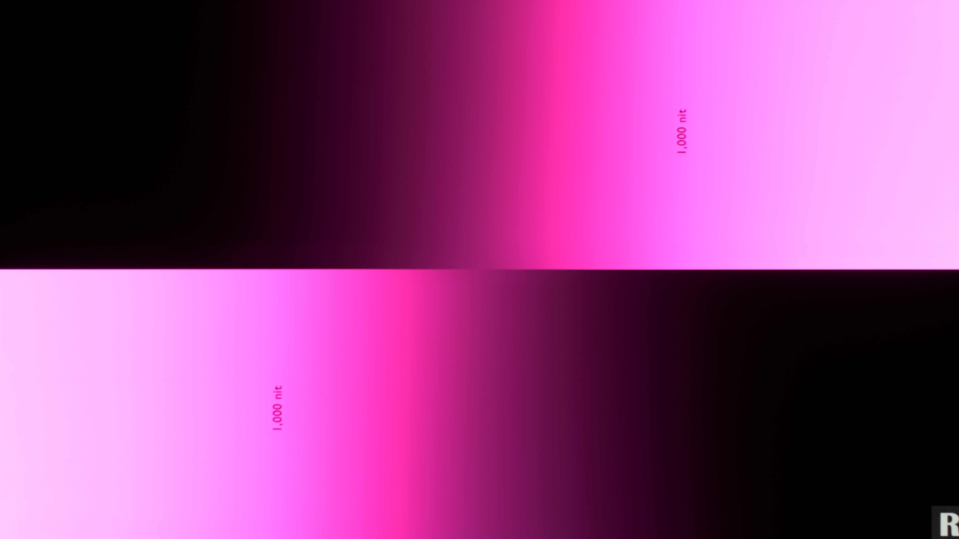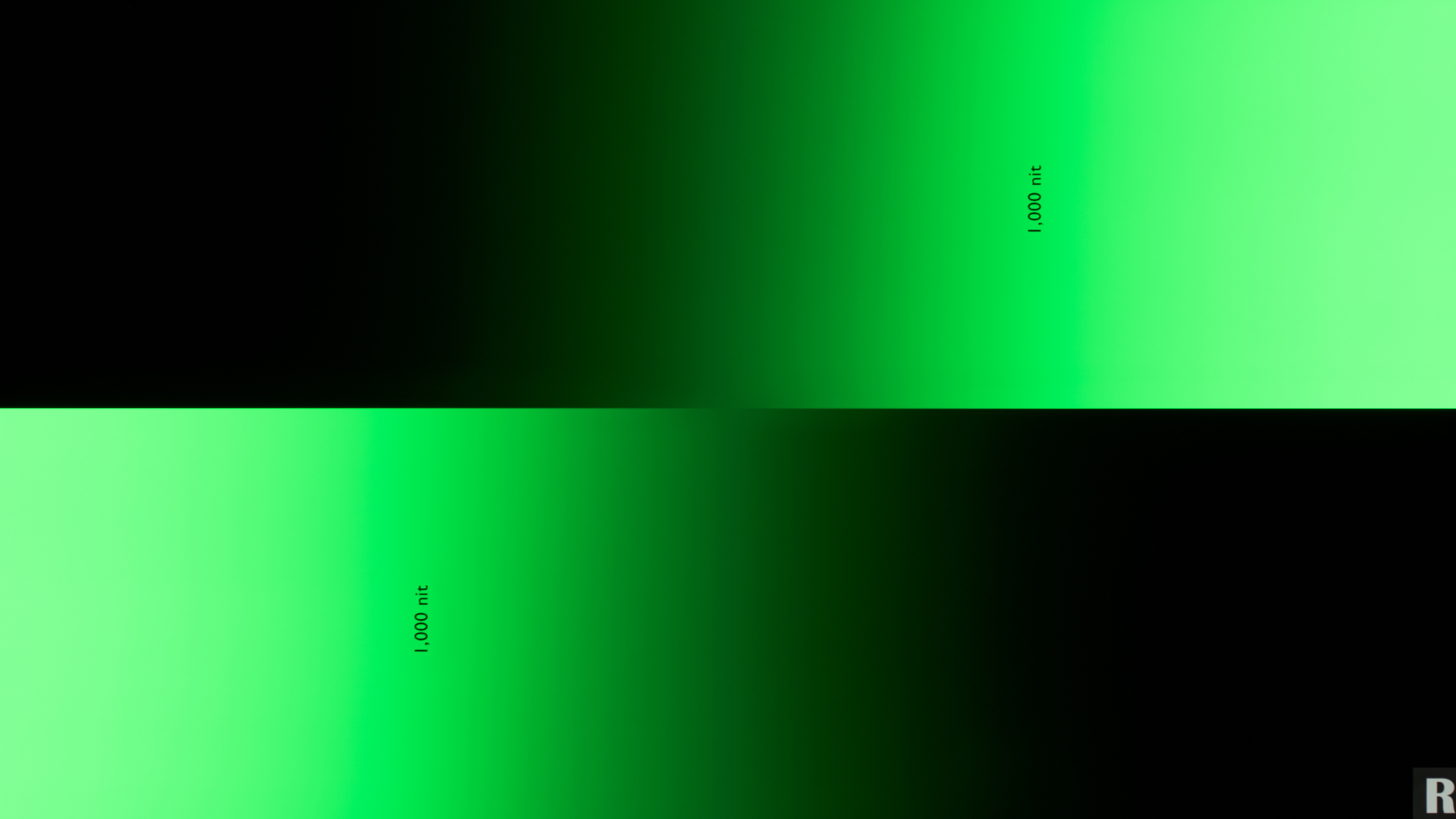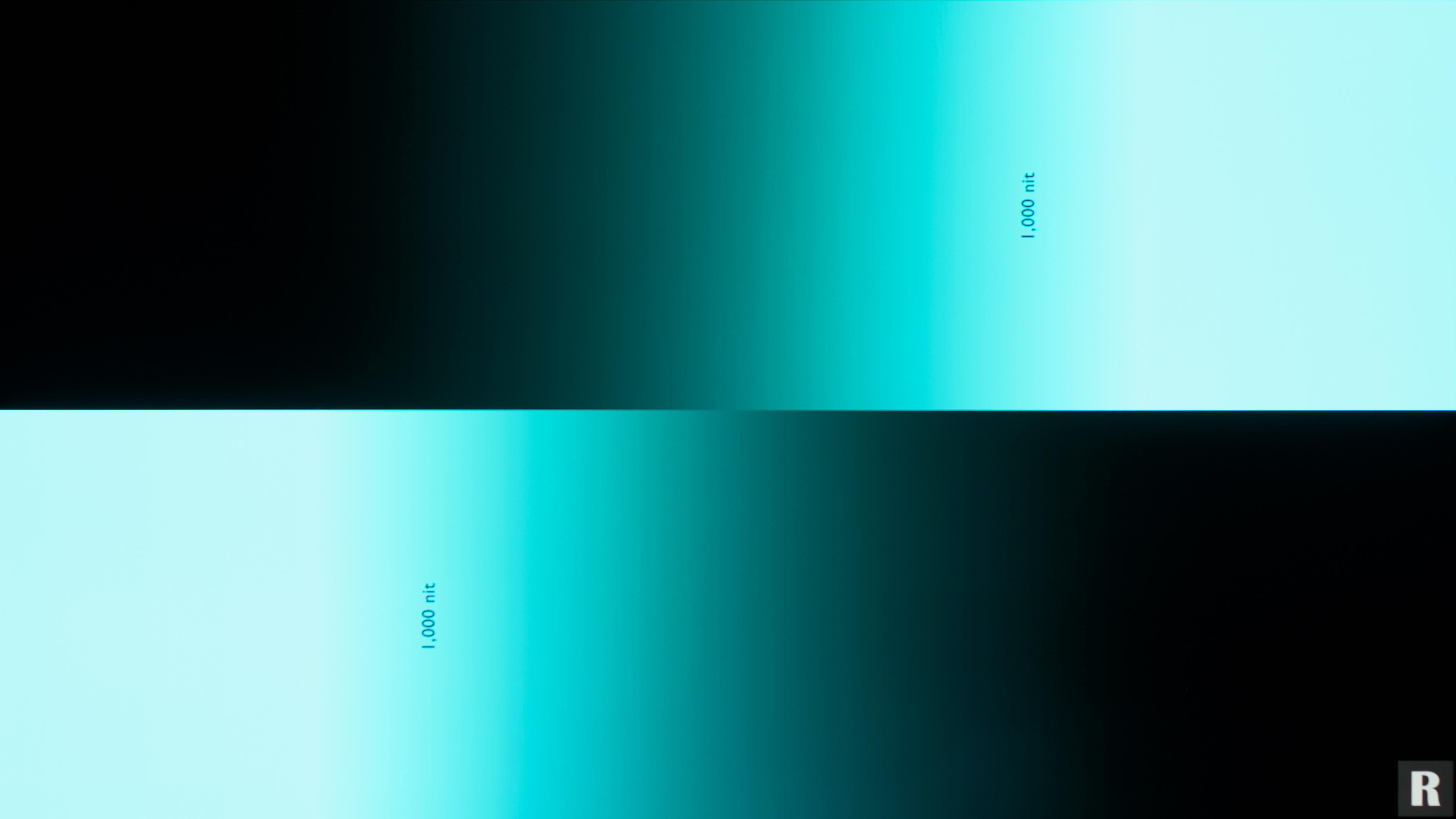 Unfortunately, there are diagonal lines that appear as a result of dithering. These lines are quite apparent when watching content or playing games if you're sitting close to the screen, but the lines aren't nearly as visible from a normal viewing distance. You can see these lines for yourself by watching this slow-motion video we captured. Keep in mind that this video was captured at 1000fps on our Chronos 2.1-HD High Speed Camera, so the video is almost 42 times slower than real content at 24fps, which makes the diagonal lines a lot more noticeable. You can also see an example of this dithering by alternating between this photo and this other photo. This dithering also adds some grain-like noise to some dark scenes. It's not very noticeable during all dark scenes, but the noisier the scene, the worse the additional grain is.