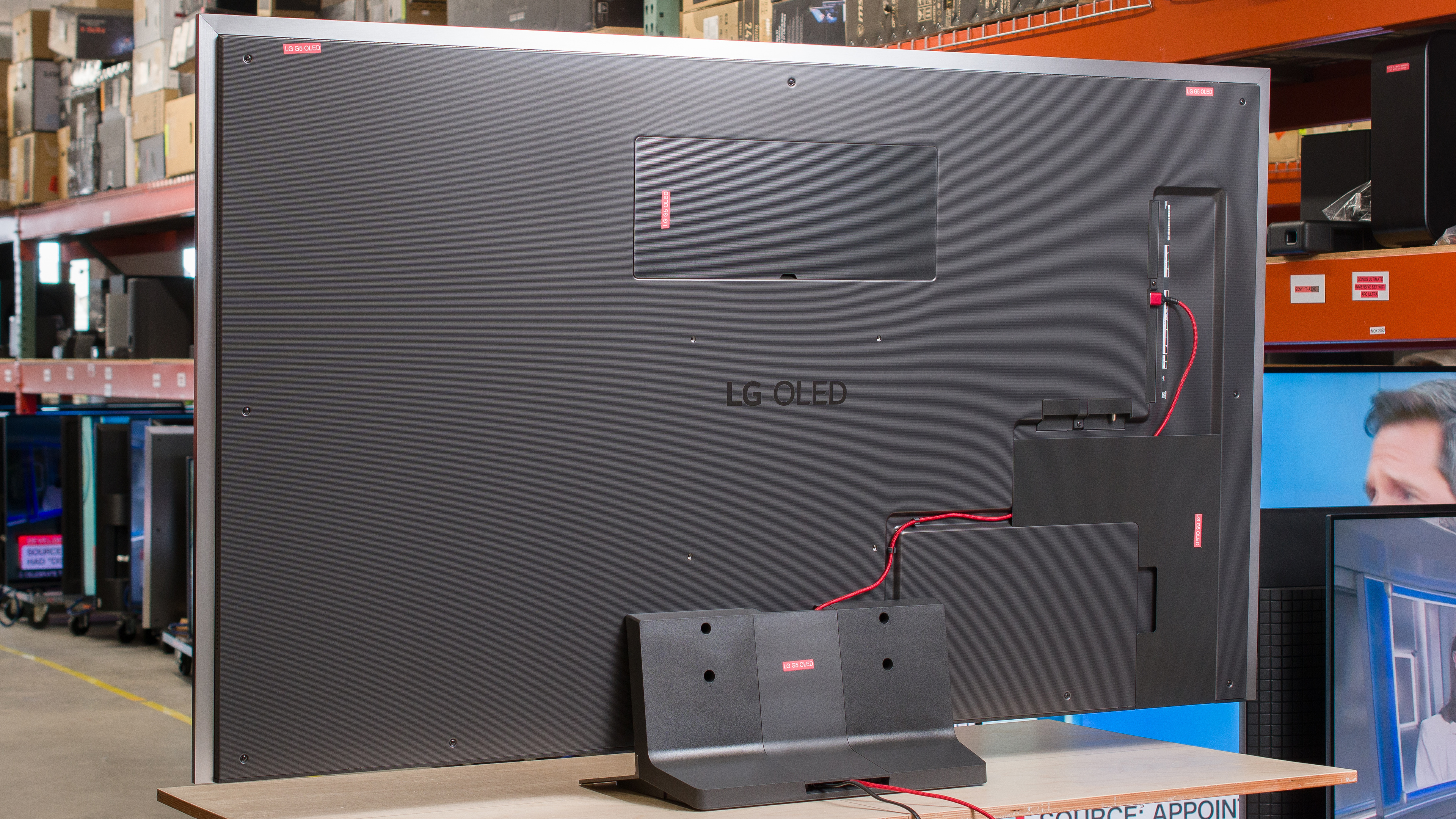 Although the TV's screen is thicker than most other OLEDs, its thickness is more uniform, since the input section doesn't stick out from the back. Our unit leans back about three degrees, but this is due to the unofficial stand we used. If you get a version of the TV that comes with a stand, you shouldn't see this tilt.