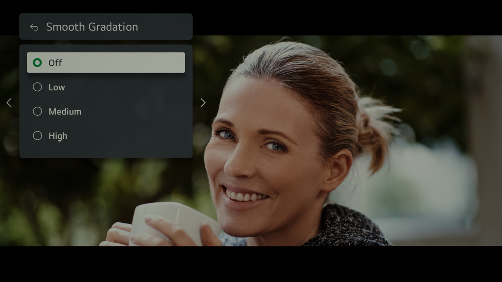 For our upscaling test, we set Sharpness to '12 and set Super Resolution to 'High'. Sharpness processing was calibrated with no over-sharpening for low-resolution content. Our low-quality content smoothing test was done with Smooth Gradation set to 'High'.