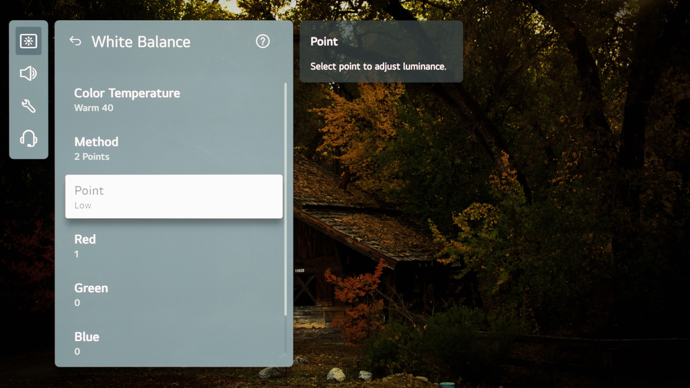 We used the following calibration settings to test the 77-inch LG G5 OLED (OLED77G5WUA), but they're also valid for the 55 (OLED55G5WUA), 65 (OLED65G5WUA), and 83-inch (OLED83G5WUA) models. The 97-inch model doesn't have the new primary RGB tandem panel, so although the general settings will be similar, our settings aren't completely valid for that size. Our settings apply to most types of content, except for gaming or use as a PC monitor, which requires a few additional changes, listed below.
