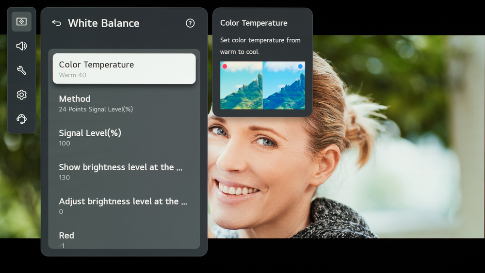 We used the following calibration settings to test the 65-inch LG G6 OLED, but they're also valid for the 55, 77, and 83-inch models. These settings are meant to provide a starting point; they're not meant to be copied 1:1. They provide the most accurate image in a moderately lit room, but you should adjust them to match your personal preferences and viewing conditions.