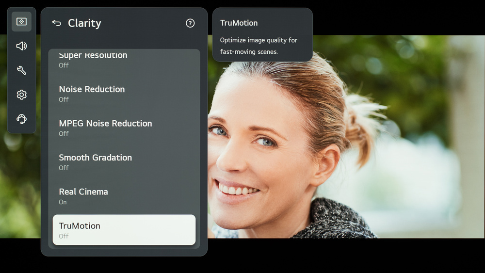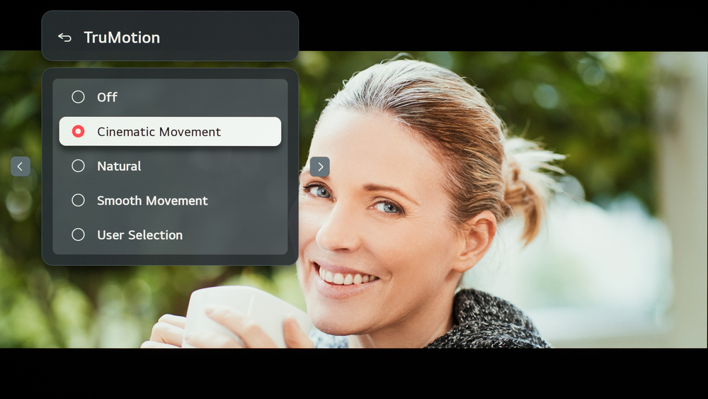 Setting TruMotion to 'Cinematic Movement' outputs a framerate equivalent to 30fps, which helps to reduce stutter in 24fps content.
