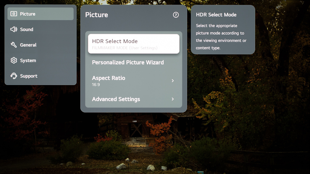 HDR is automatically enabled for native apps. Once you start playing HDR content, some of the settings change automatically. All other picture quality settings were left at their defaults.