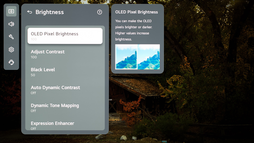 If you prefer a brighter image, set Peak Brightness to 'High', and adjust the OLED Pixel Brightness setting as needed.