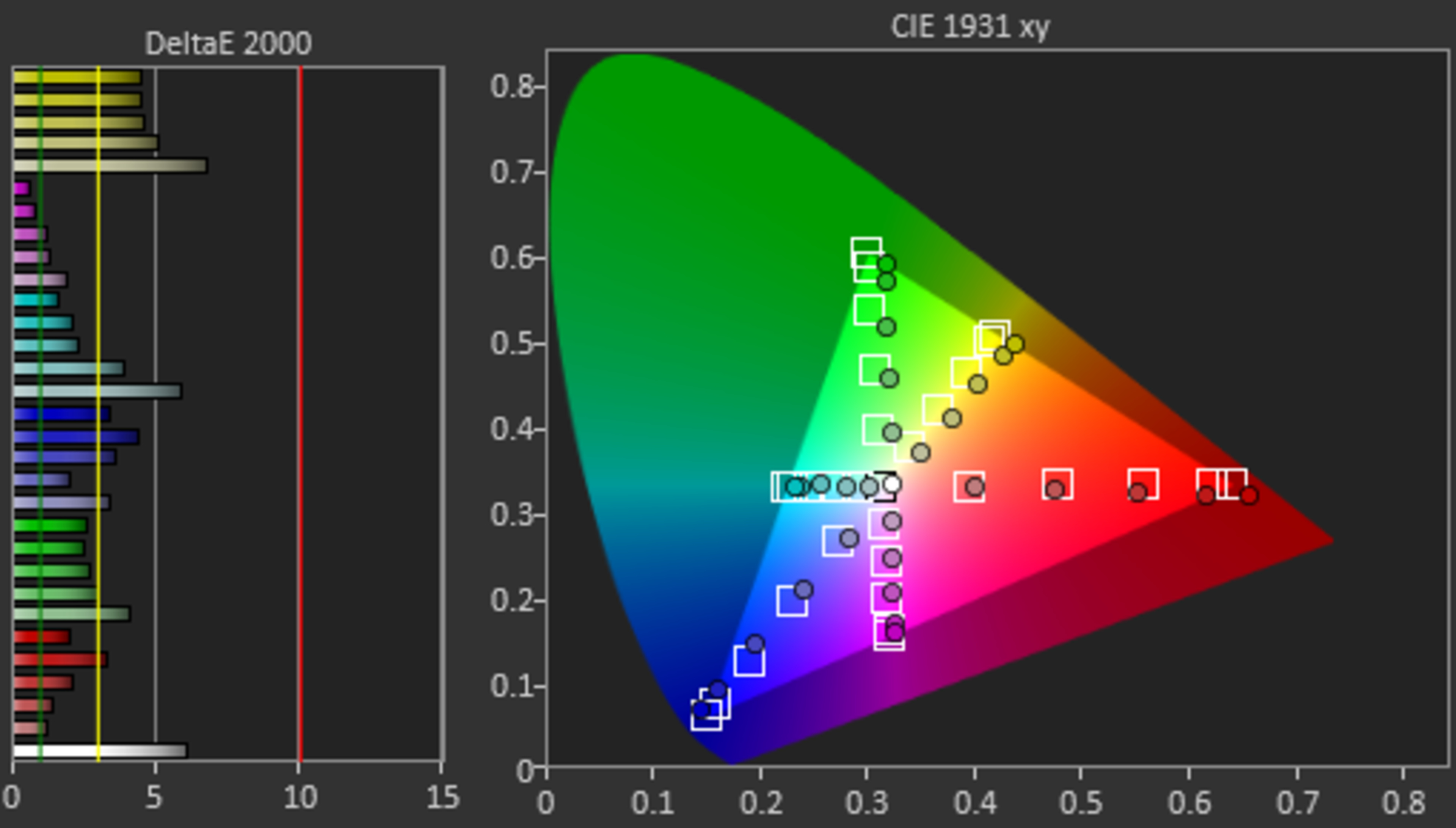 After calibration, color accuracy is almost perfect. Any remaining inaccuracies are almost impossible to spot with the naked eye and the color temperature is extremely close to the 6500K target.