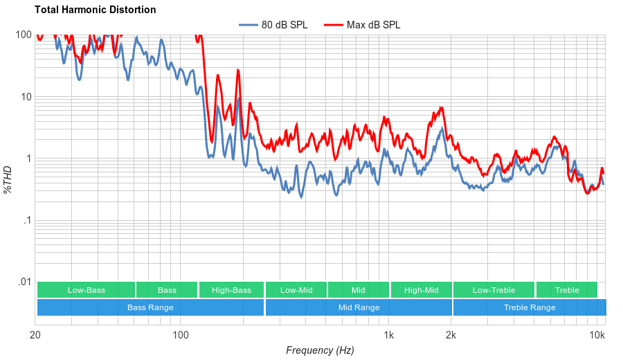 Disappointing frequency response. While the LJ5500 follows the target very well, its limited low-frequency extension makes it sound quite thin. It also has a fair amount of dynamic range compression at higher volumes, and it doesn't get very loud at all.