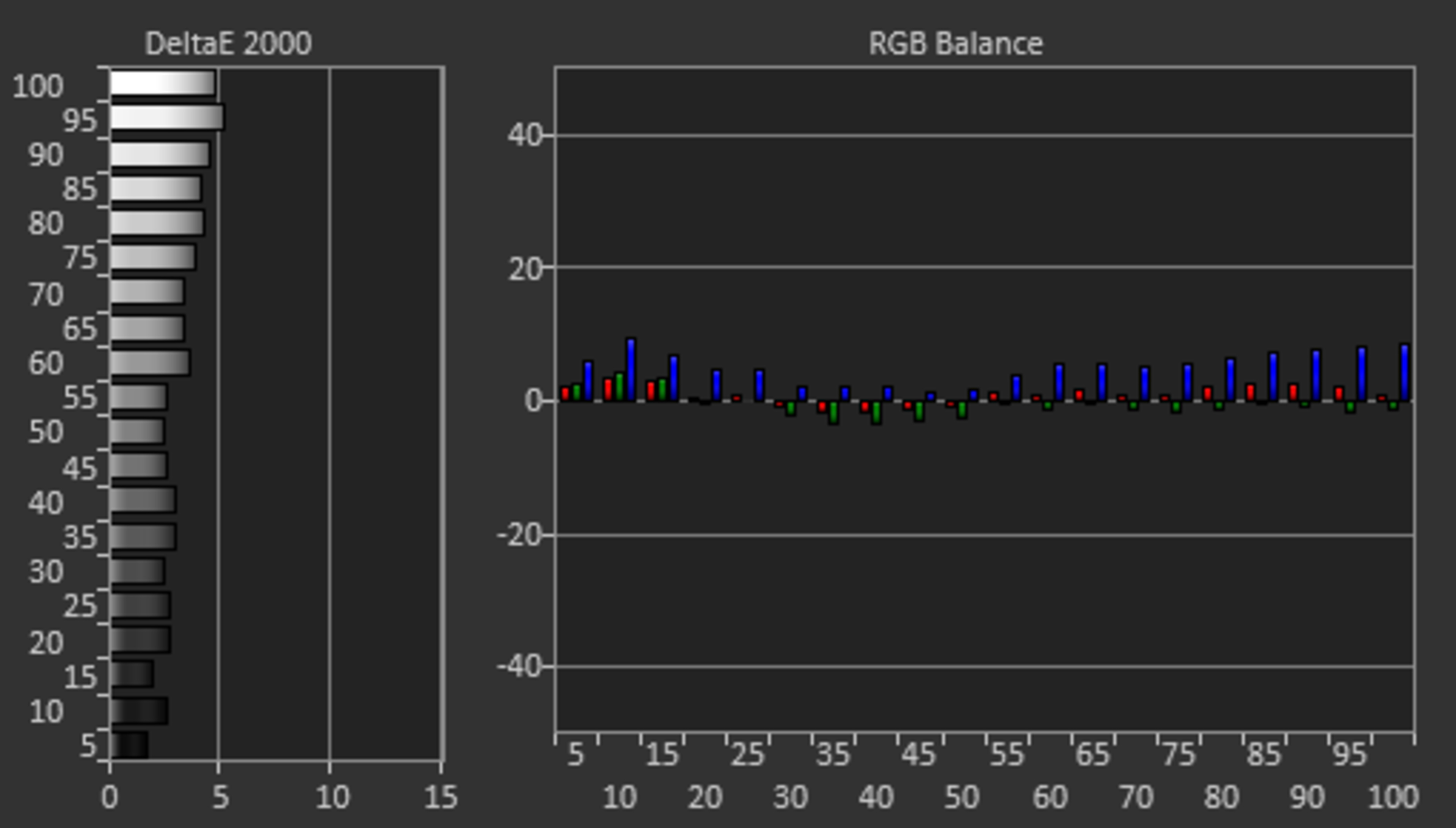 After calibration, the color accuracy is nearly perfect. There are almost no inaccuracies with most colors or shades of gray, and the color temperature is extremely close to the 6500K target. The gamma follows the curve well, but some dark scenes are still a bit too bright.