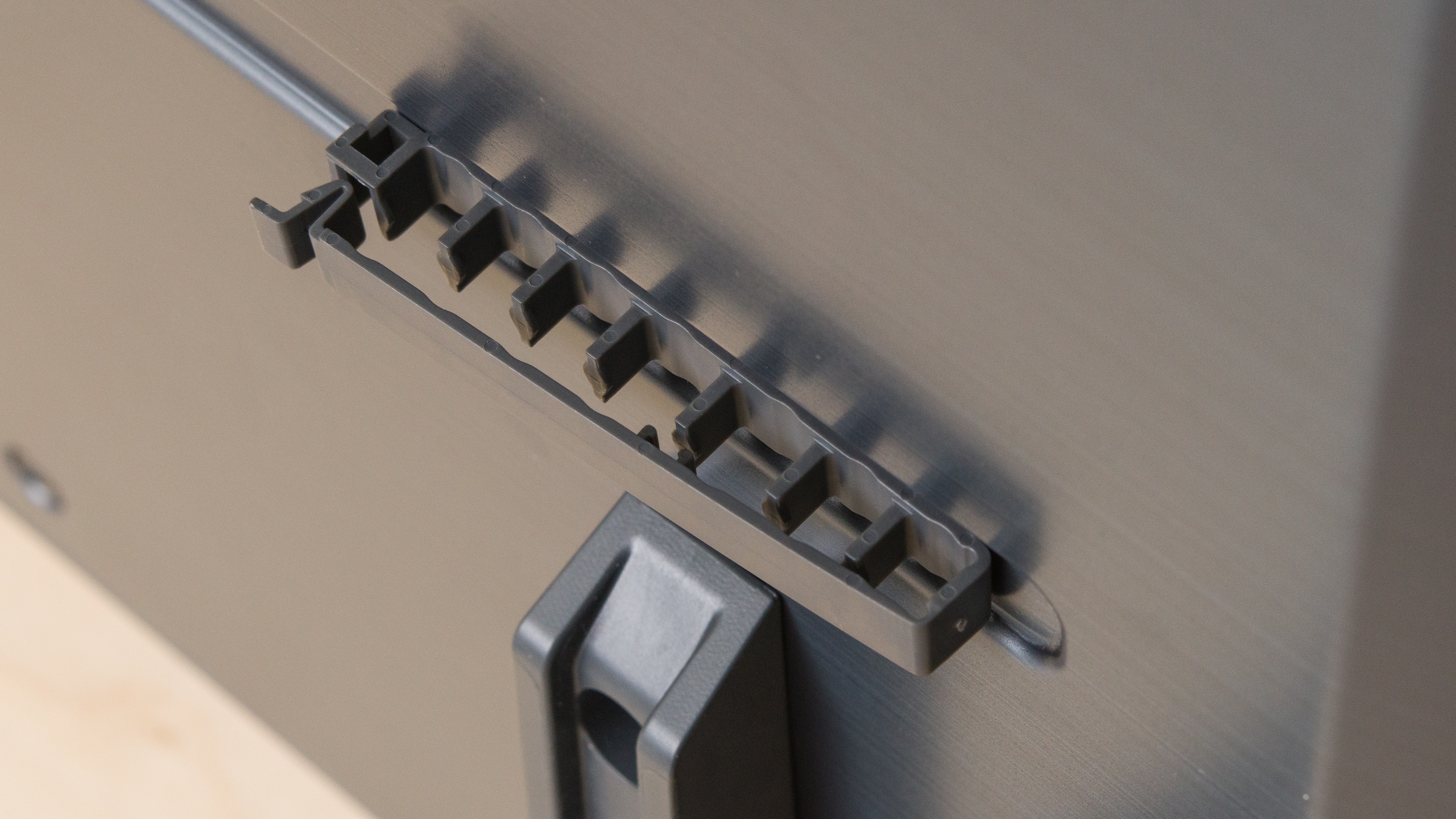 The back of the LG 65NANO85APA is made of brushed aluminum, and there are vents for airflow. Most of the inputs are side-facing, making them easy to access if you wall-mount the TV. There are detachable clips and grooves in the feet that you can use for cable management.